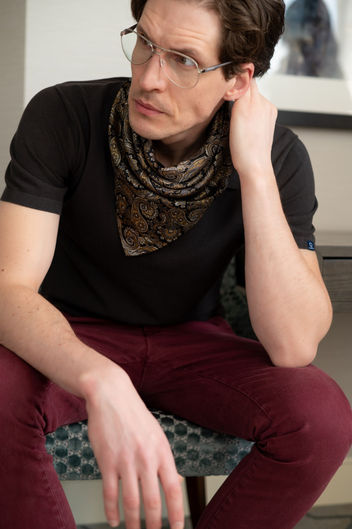CM6-007 Jedwabna apaszka męska pod szyję morelowa, 67x67cm