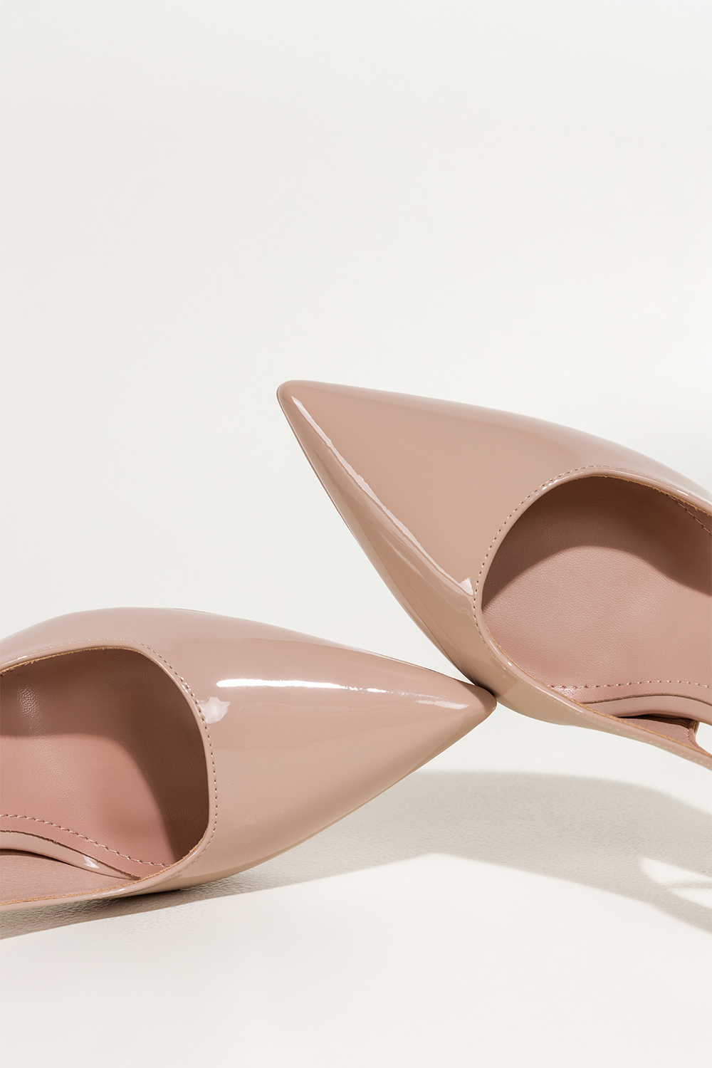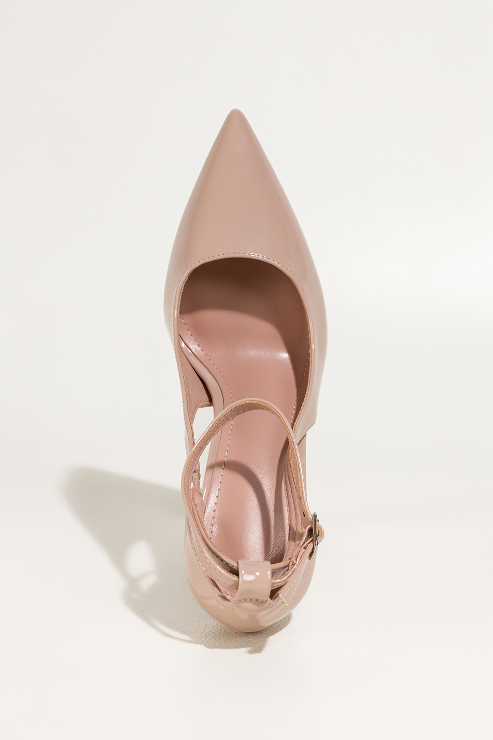 Beżowe czółenka damskie szpilki lakierowane wycięcia na cholewce pasek wokół kostki Carla OV853K