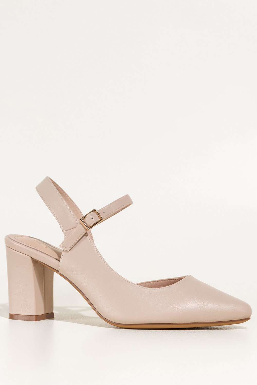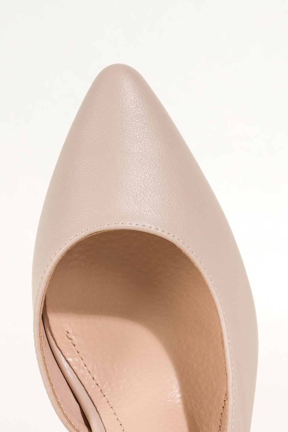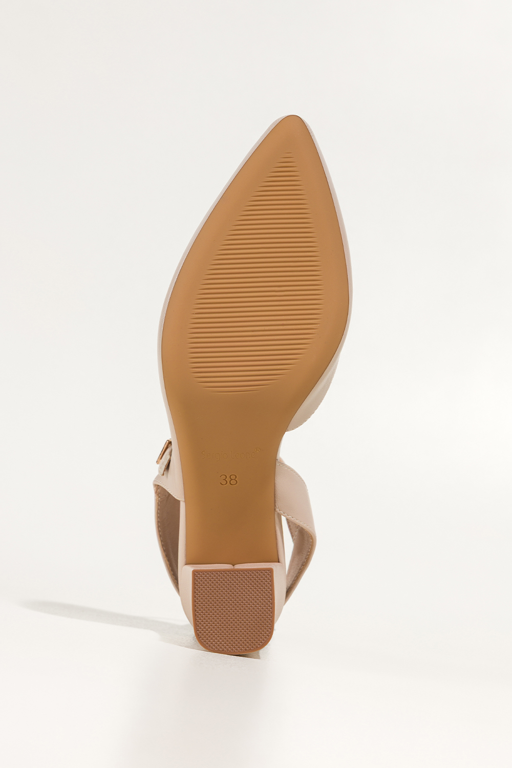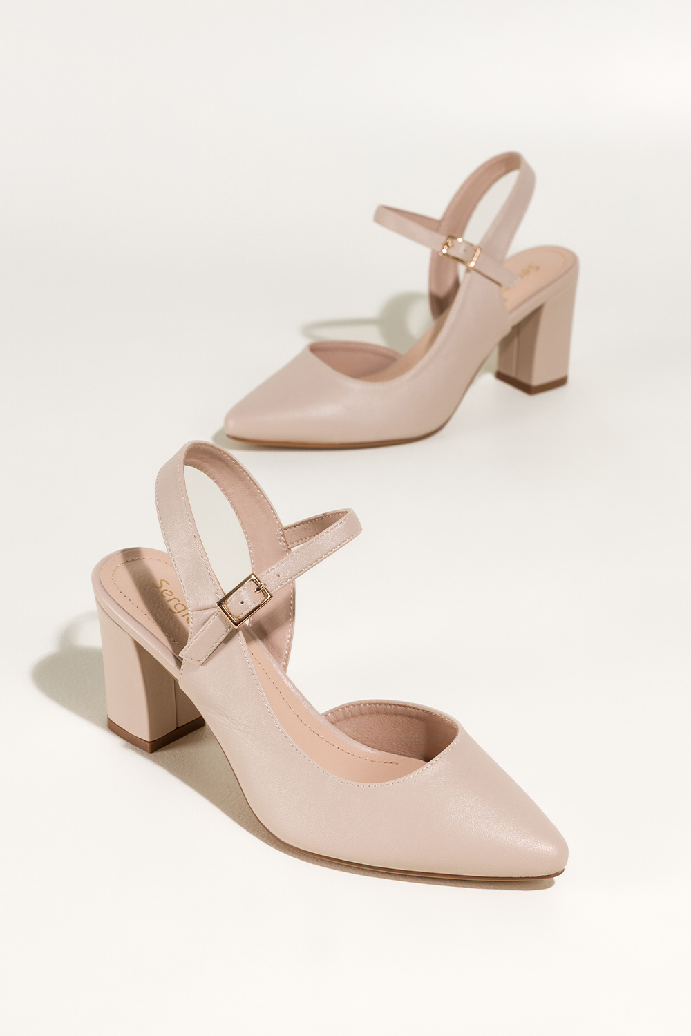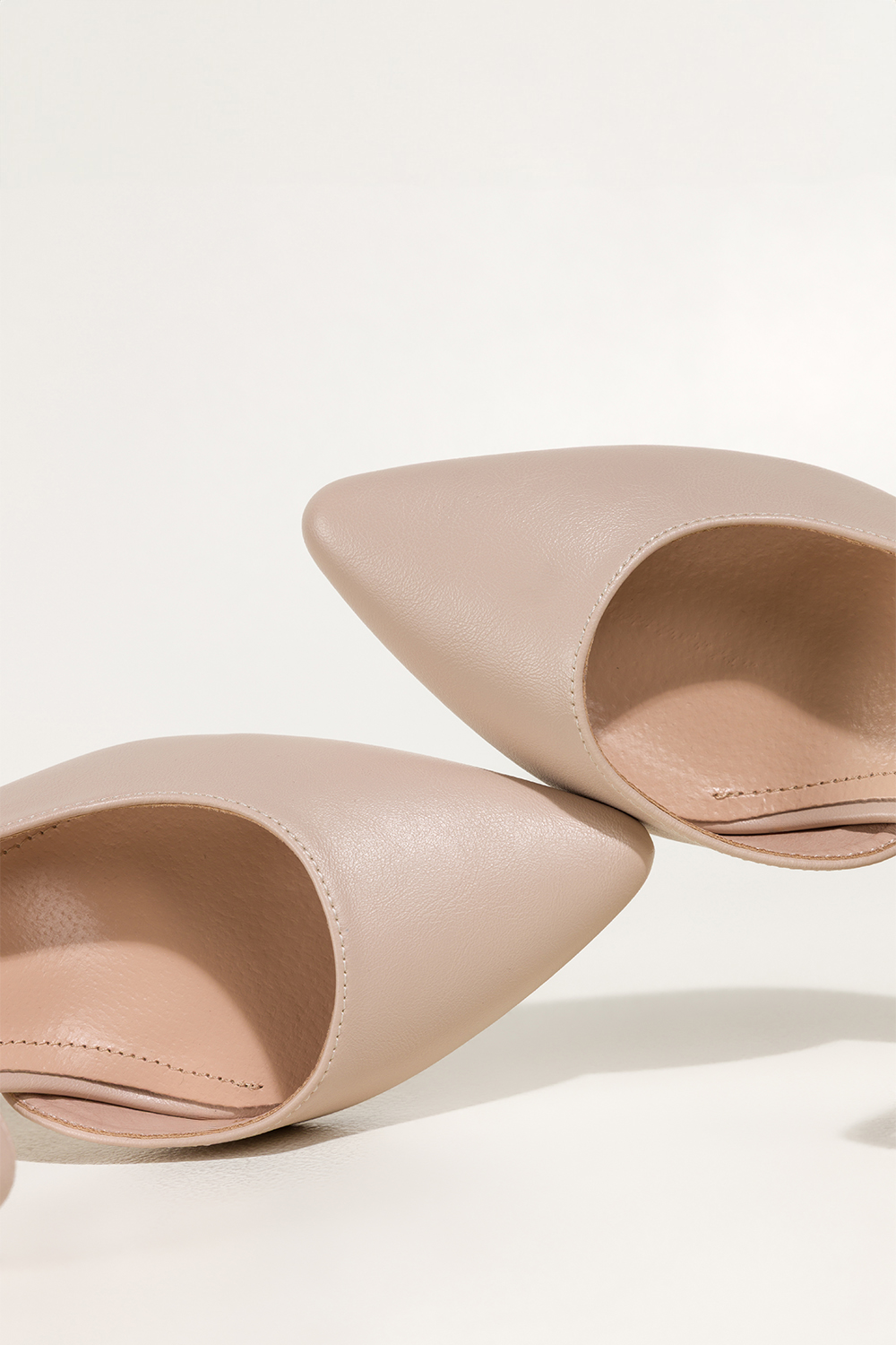 Beżowe czółenka Sergio Leone na słupku z odkrytą piętą skórzana wkładka HP553