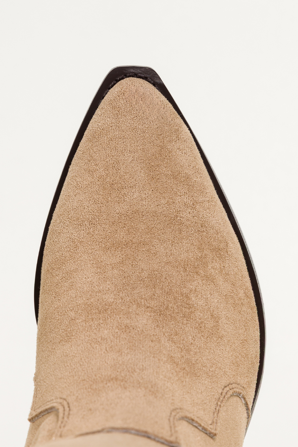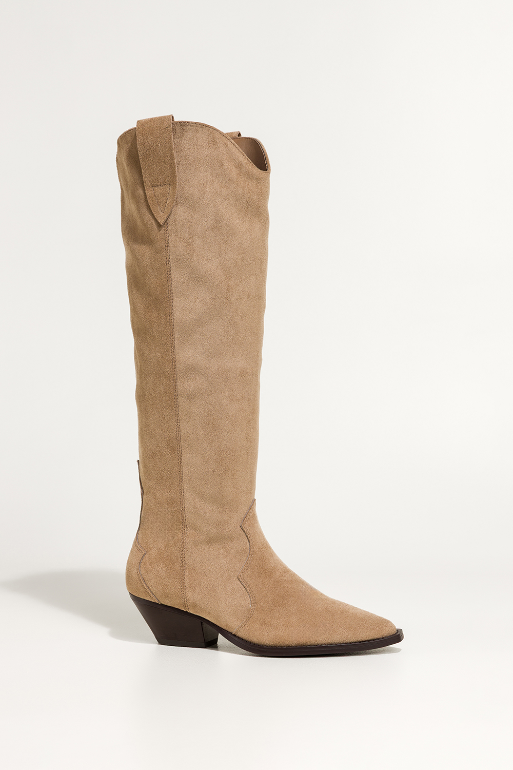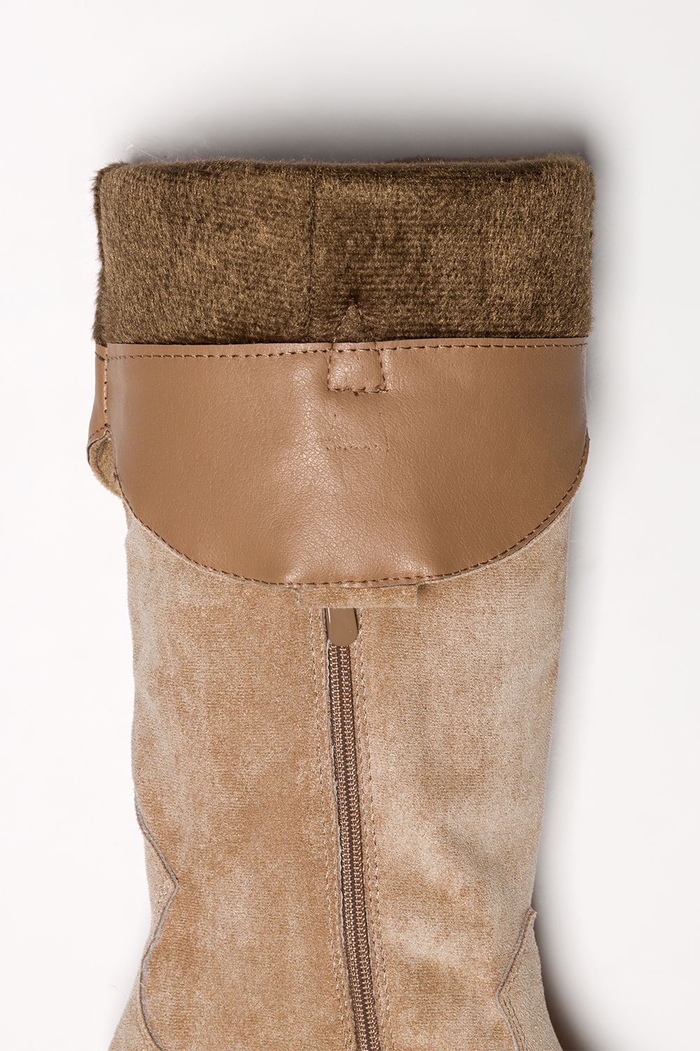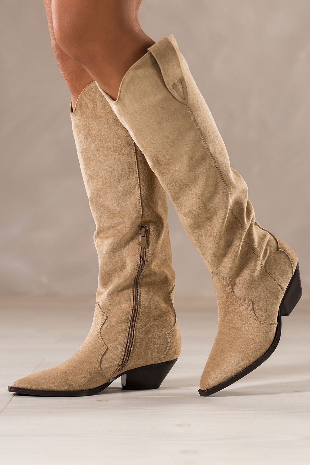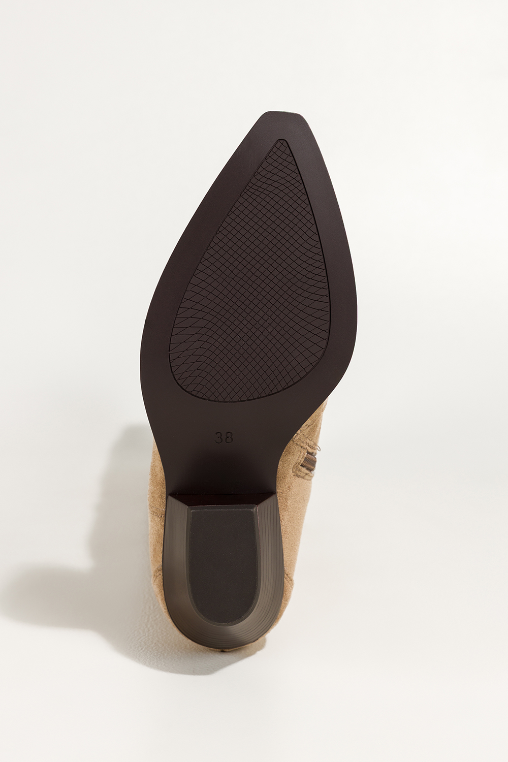 Beżowe kozaki damskie kowbojki z szeroką cholewką na ściętym klocku Casu model 0361, połączenie wysokogatunkowej skóry ekologicznej o zamszowym wykończeniu z niezwykle komfortowym wnętrzem ocieplonym miękkim futerkiem. Precyzyjne wykończenie oraz solidna konstrukcja sprawiają, że buty doskonale sprawdzają się w chłodniejsze dni, zapewniając ciepło i wygodę. Model został stworzony z dbałością o każdy detal, oferując styl i jakość, które przewyższają swoją cenę. Zainspirowane klasyką westernu, kozaki to idealna propozycja dla kobiet, które lubią łączyć modę z charakterem. Ich szeroka cholewka oraz szpiczasty nosek subtelnie wydłużają nogi, nadając sylwetce smukłości i lekkości. Ścięty obcas w formie klocka dodaje nowoczesności i zapewnia stabilność, co czyni ten model idealnym do codziennych i wieczorowych stylizacji. Beżowy kolor idealnie wpisuje się w jesienno-zimowe trendy, a przy tym łatwo komponuje się zarówno z sukienkami, jak i jeansami. Zamek boczny ułatwia szybkie zakładanie, a szeroka cholewka pozwala nosić kozaki także na spodnie czy grubsze rajstopy. To buty, które łączą styl z funkcjonalnością, sprawdzając się w pracy, na spacerze czy podczas weekendowych wyjść. Dzięki uniwersalnemu fasonowi będą Twoim modowym wsparciem przez całą jesień i zimę. Ich unikalne wzornictwo i wygoda sprawiają, że to nie tylko modny dodatek, ale i praktyczny wybór dla każdej kobiety ceniącej wygodę i klasę. Cechy wyróżniające Wysokogatunkowa zamszowa skóra ekologiczna Wnętrze ocieplane miękkim futerkiem Szeroka cholewka, idealna do różnych stylizacji Ścięty stabilny obcas typu klocek Szpiczasty nosek wydłużający optycznie nogi Uniwersalny beżowy kolor pasujący do wszystkiego Zamek ułatwiający zakładanie Idealne na każdą okazję, świetnie uzupełnią Twoją garderobę. Zamów je już teraz na stronie Casu i podkreśl swoją wyjątkowość! Obuwie ma zaniżoną rozmiarówkę, dlatego przed zakupem prosimy o dokładne zapoznanie się z tabelą rozmiarów, aby dobrać idealny rozmiar.