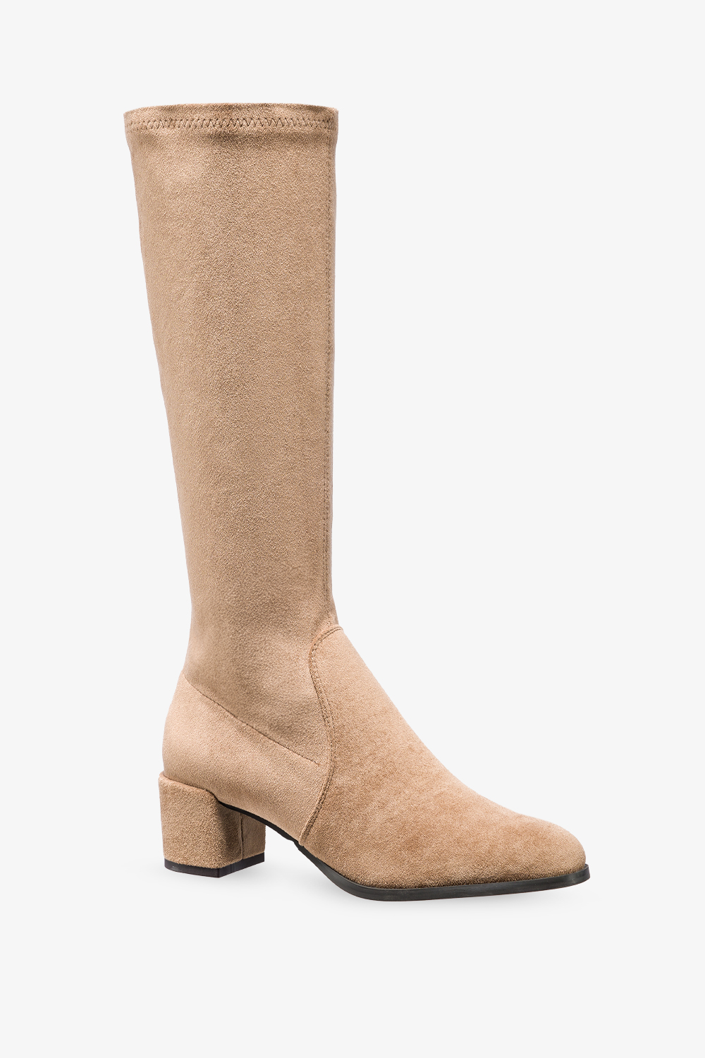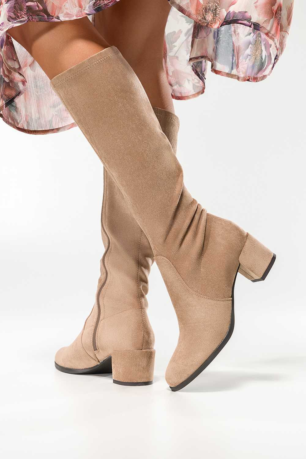 Beżowe kozaki damskie Sergio Leone na niskim obcasie z elastyczną cholewką KZ205-CA