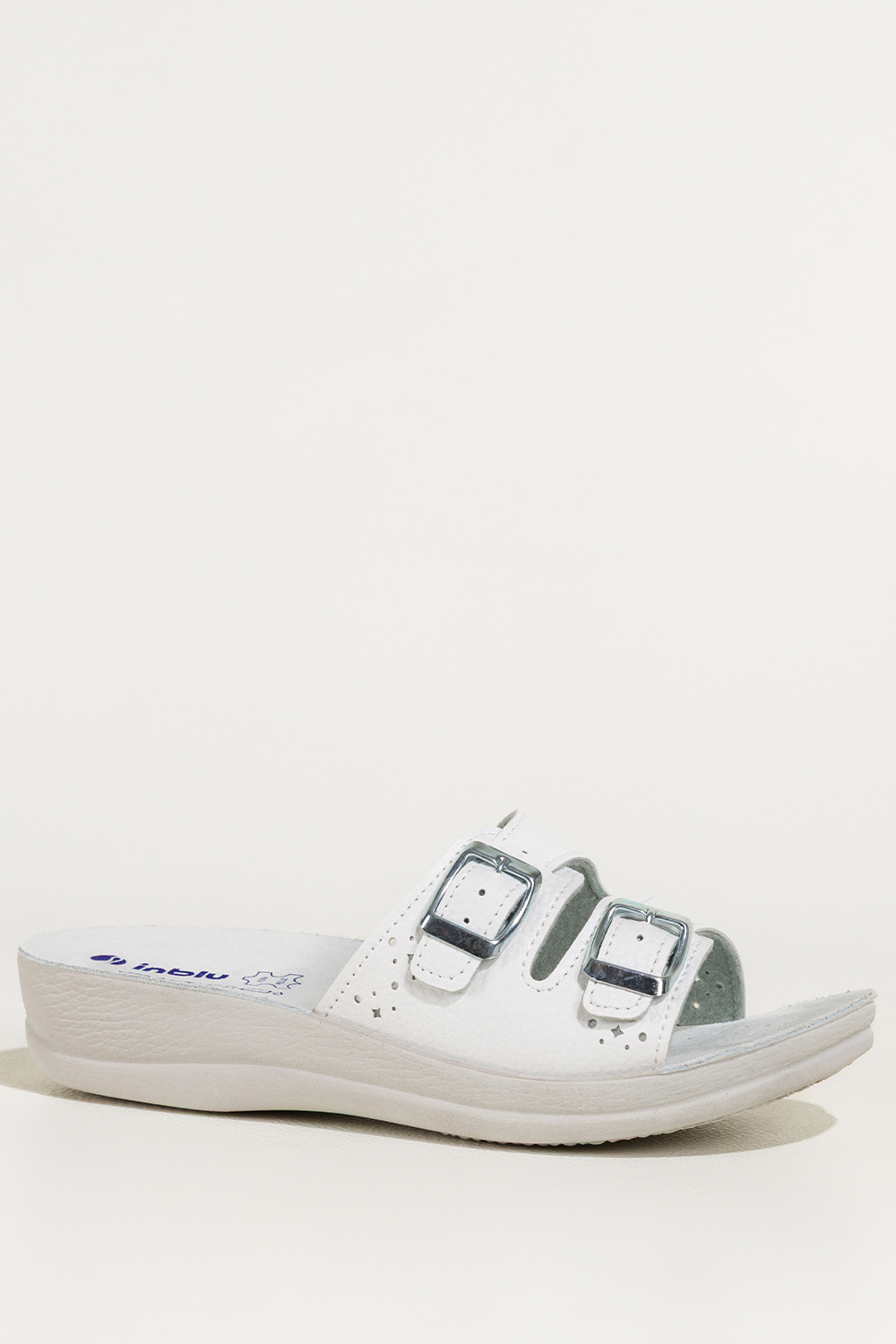 Białe klapki damskie Inblu sanitarne medyczne skórzana wkładka paski z klamrami EI99991Y