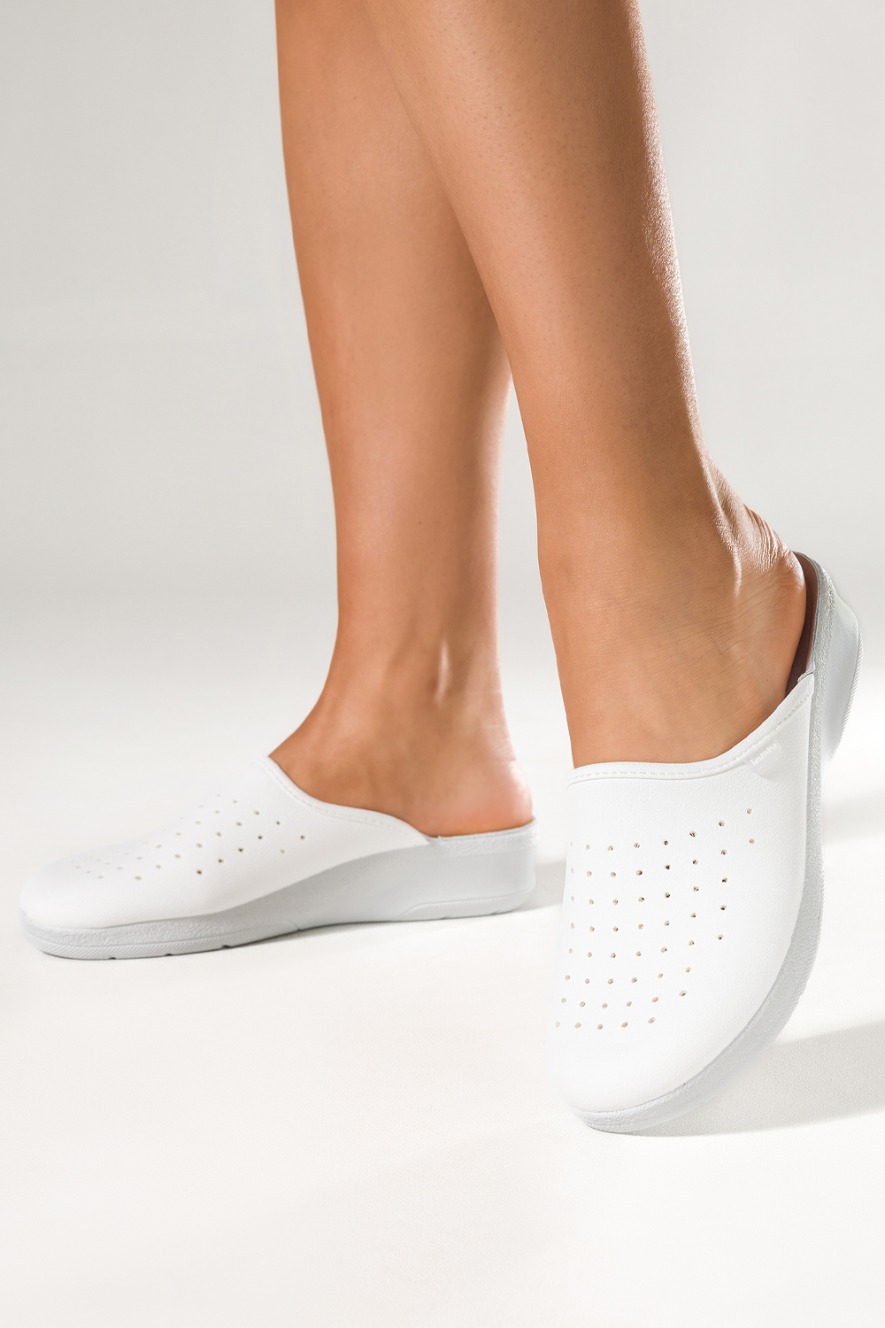 Białe klapki damskie Inblu sanitarne medyczne skórzana wkładka soft 50000033-CA