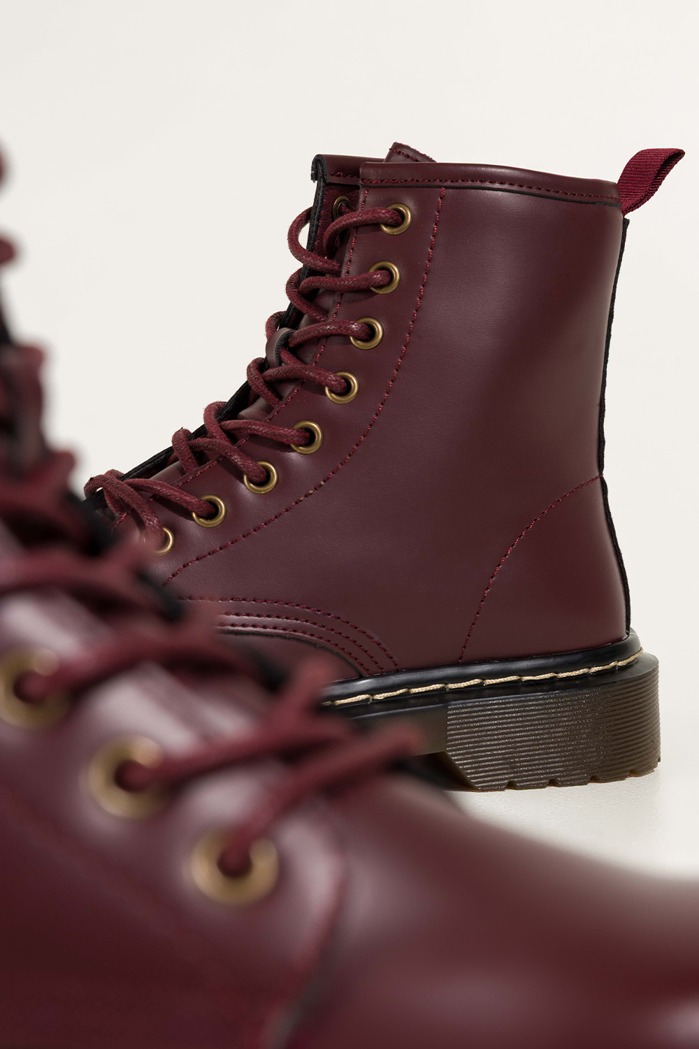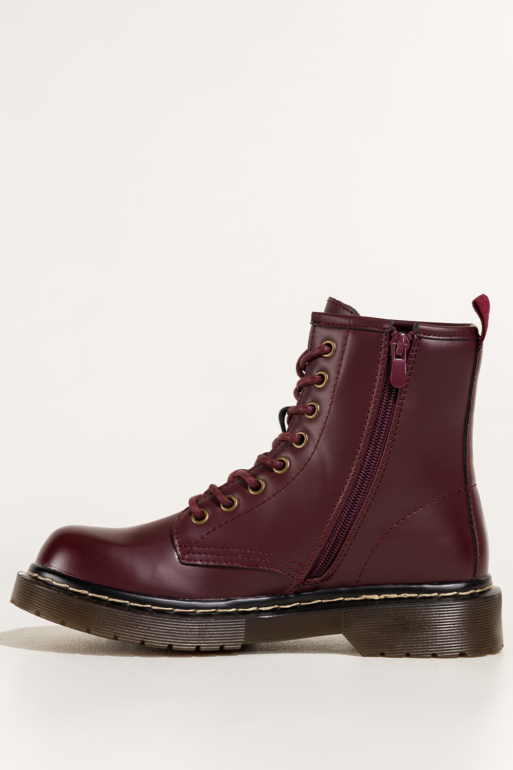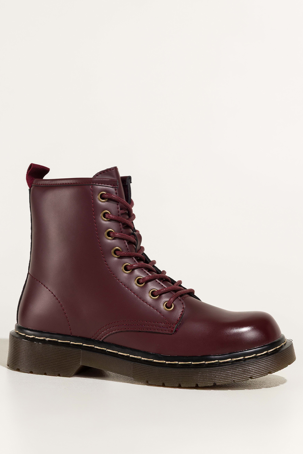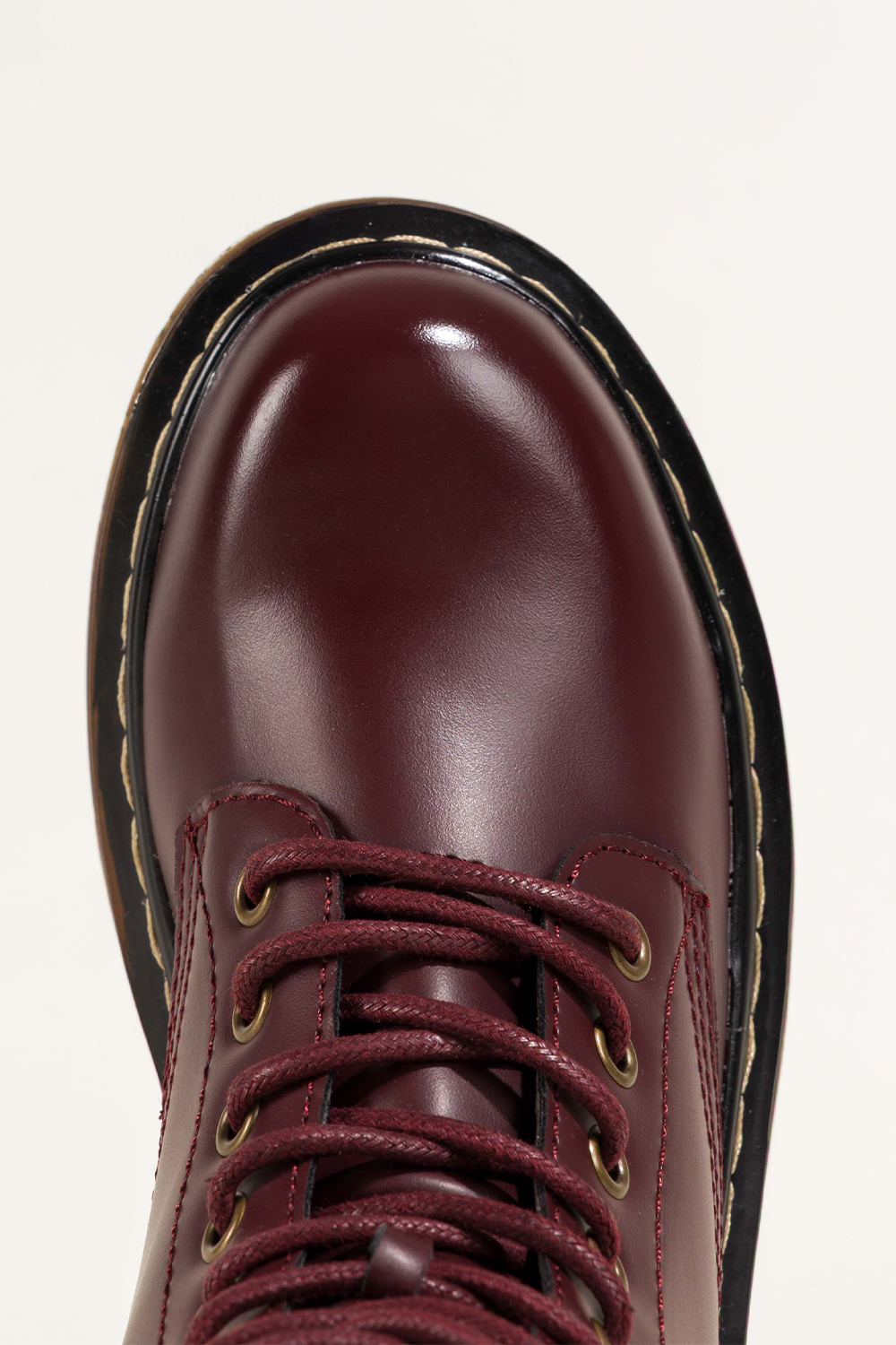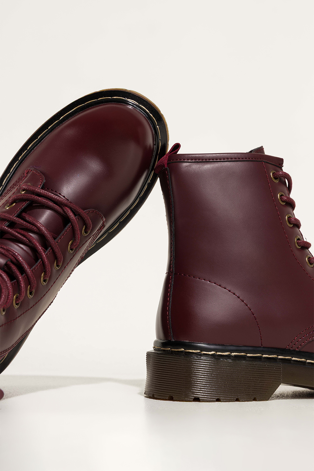 Bordowe botki damskie glany na bieżnikowanej platformie z przeszyciami sznurowane Casu D794-57