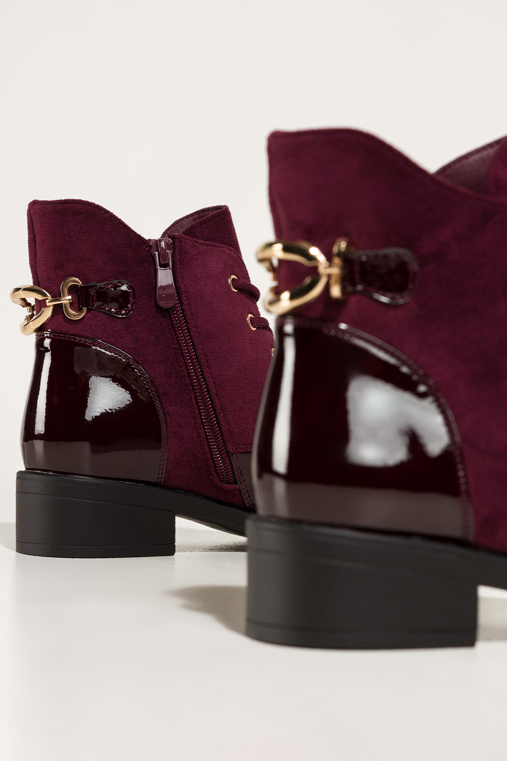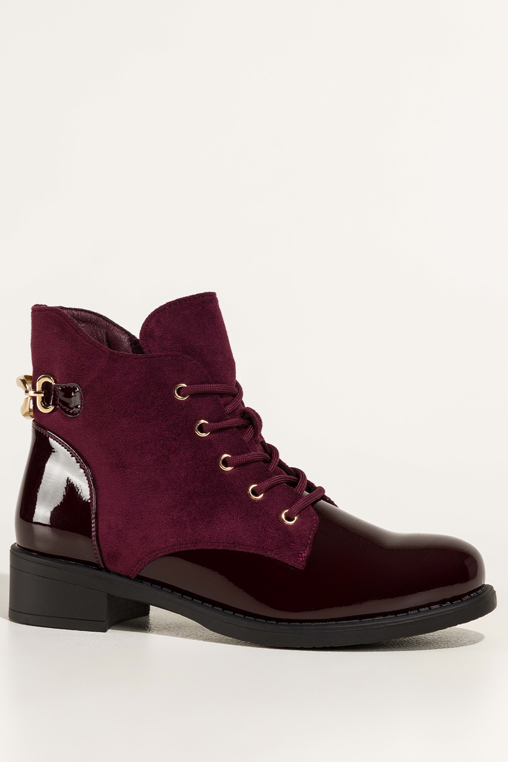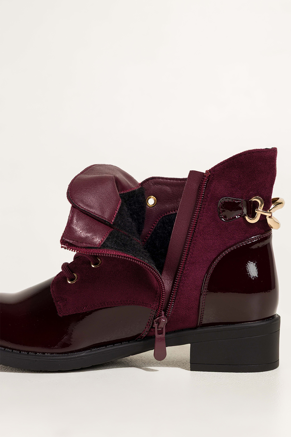 Bordowe botki damskie lakierowane na niskim klocku zamszowe wstawki złota ozdoba sznurowane Casu model NW2397-6, to kwintesencja elegancji i komfortu w jesienno-zimowym wydaniu. Wykonane z wysokogatunkowej lakierowanej skóry ekologicznej, zachwycają nie tylko intensywnym kolorem, ale i perfekcyjnym wykonaniem. Delikatne futerko wewnątrz zapewnia przyjemne ciepło, a szeroki, stabilny obcas typu klocek gwarantuje komfort nawet podczas całodziennego noszenia. Każdy detal został dopracowany z myślą o kobietach ceniących jakość i styl. Model łączy klasyczną formę z wyrazistym, nowoczesnym akcentem. Zamszowe wstawki subtelnie kontrastują z połyskującym lakierem, tworząc intrygujące połączenie tekstur. Złota ozdoba nadaje botkom wyjątkowego charakteru, dodając im nuty luksusu. Zaokrąglony nosek sprawia, że buty są nie tylko stylowe, ale i wygodne, a dodatkowe bordowe sznurówki i praktyczny zamek pozwalają na szybkie i łatwe zakładanie. To doskonały wybór do stylizacji casualowych i eleganckich. Sprawdzą się doskonale w chłodniejsze dni, zarówno do pracy, na zakupy, jak i na wieczorne wyjścia. Dzięki połączeniu klasyki i nowoczesności, pasują do jeansów, sukienek, spódnic i eleganckich płaszczy. To inwestycja w komfort i styl, który zostanie z Tobą na dłużej. Cechy wyróżniające Wysokogatunkowa lakierowana skóra ekologiczna Miękkie, ocieplane wnętrze z delikatnym futerkiem Złota ozdoba i zamszowe wstawki dla wyjątkowego wyglądu Szeroki, niski obcas typu klocek Praktyczne sznurowanie i zamek boczny Stylowy bordowy kolor idealny na sezon jesień-zima Ten model to perfekcyjna propozycja dla kobiet, które chcą wyglądać olśniewająco każdego dnia. Zamów online na stronie Casu i poczuj różnicę w jakości oraz stylu już od pierwszego założenia!