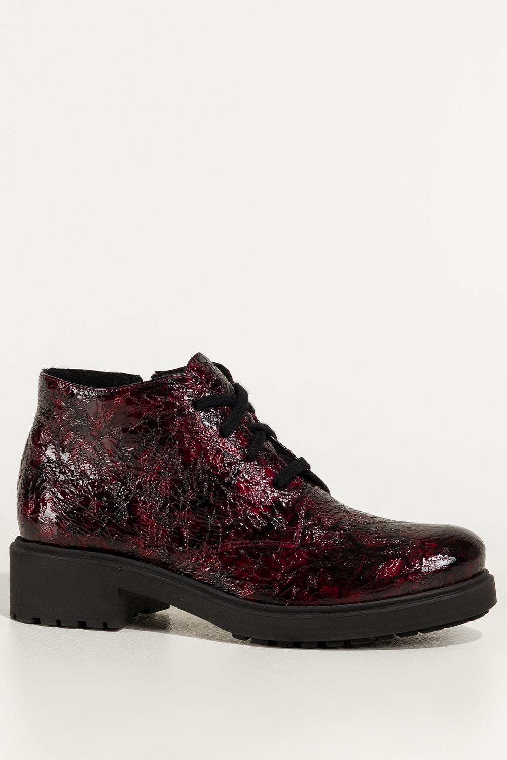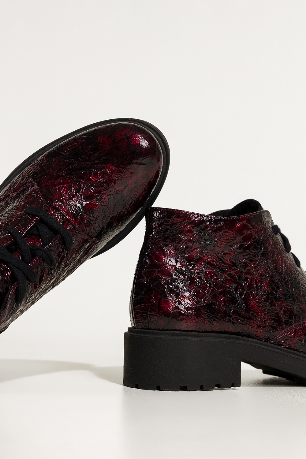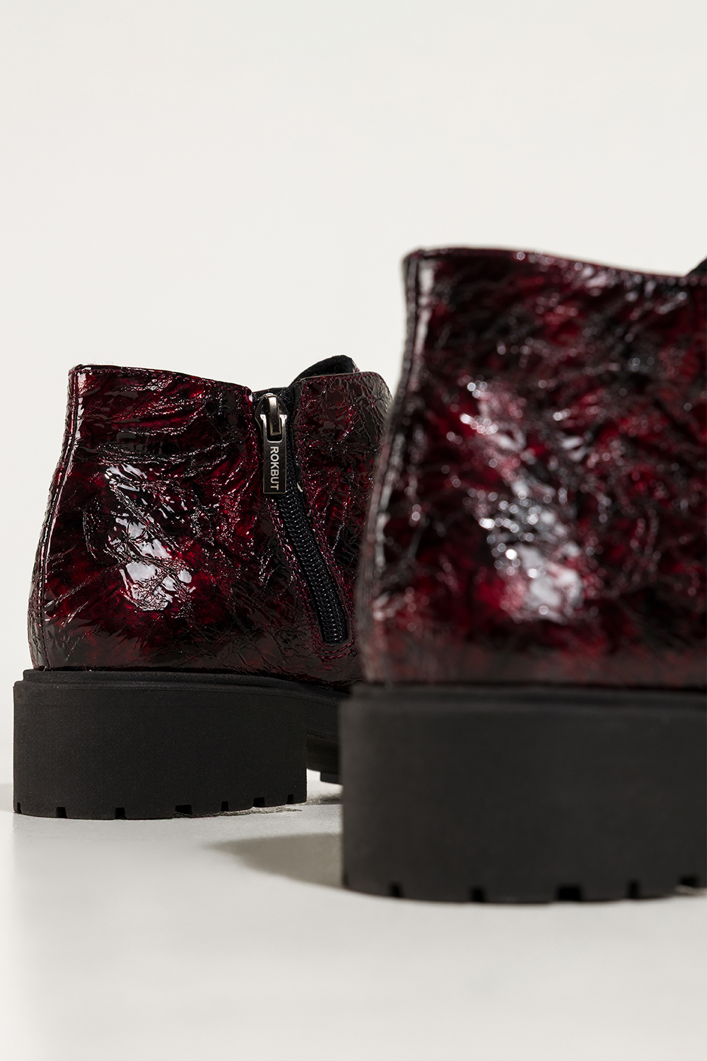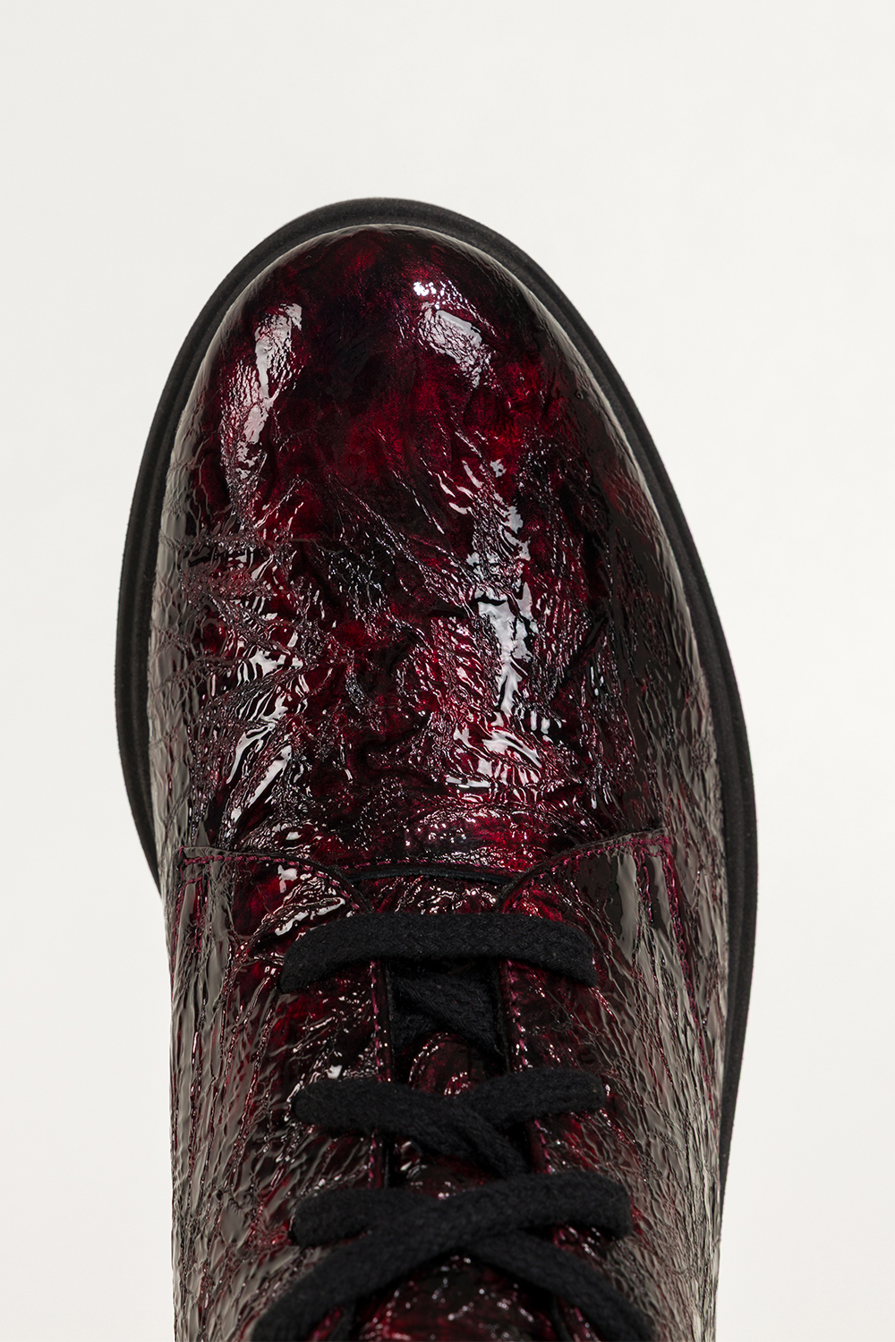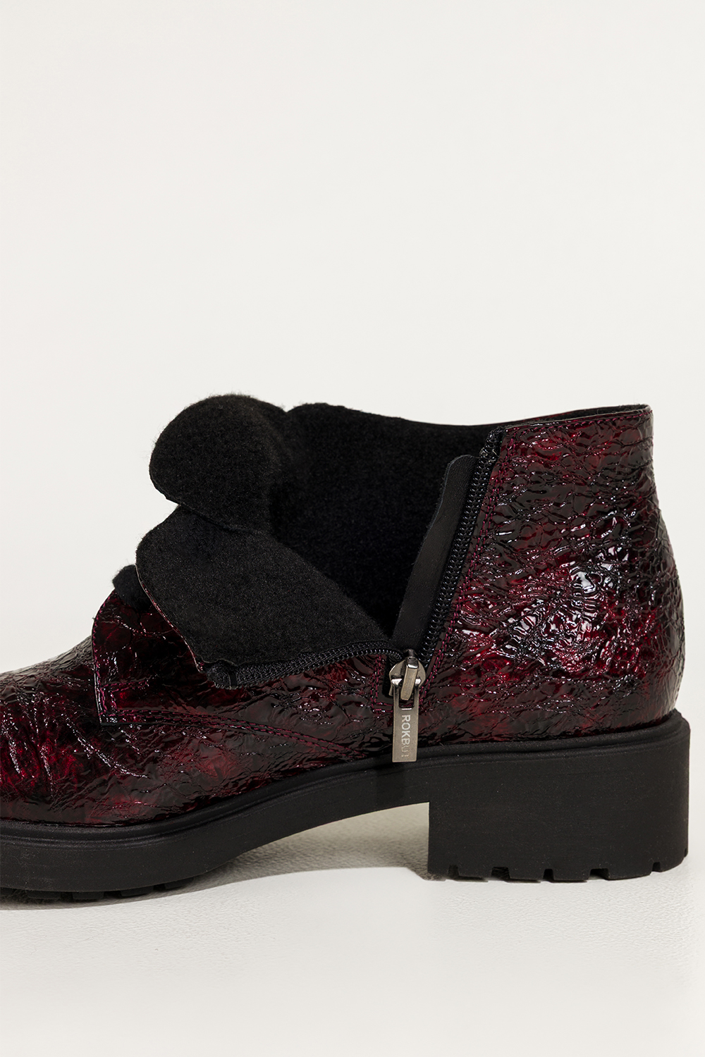 Bordowe botki skórzane damskie lakierowane z wzorem sznurowane PRODUKT POLSKI Casu model 444, to połączenie precyzji rzemiosła z wyrazistym stylem. Wykonane z wysokogatunkowej skóry lakierowanej, zachwycają głębokim połyskiem i unikalnym tłoczonym wzorem, który dodaje im charakteru. Solidna konstrukcja, dbałość o detale oraz ocieplenie kocem obuwniczym sprawiają, że są to buty idealne na chłodniejsze dni. Unikalna barwa doskonale komponuje się z jesienno-zimowymi stylizacjami, podkreślając indywidualny charakter właścicielki. Zaokrąglony nosek i niski obcas typu klocek gwarantują komfort nawet podczas całodniowego noszenia, a klasyczne sznurowanie połączone z bocznym zamkiem ułatwia zakładanie. To idealne uzupełnienie zarówno miejskich, jak i bardziej eleganckich outfitów. Dzięki swojej uniwersalności, świetnie sprawdzą się zarówno do pracy, jak i na wieczorne wyjście czy weekendowy spacer. Polski producent zadbał o to, by obuwie nie tylko pięknie się prezentowało, ale też służyło na co dzień, niezawodnie, modnie i wygodnie. Cechy wyróżniające Wysokogatunkowa lakierowana skóra naturalna z tłoczonym wzorem Ocieplenie miękkim kocem obuwniczym Niski, stabilny obcas typu klocek Podwójne zapięcie: sznurówki i zamek Produkcja polska, gwarancja jakości Uniwersalna, głęboka bordowa kolorystyka Nie pozwól, aby ten wyjątkowy model Cię ominął. Postaw na modne, trwałe i wygodne obuwie dostępne już teraz na stronie Casu i dodaj swojej garderobie nutę eleganckiej oryginalności! Obuwie ma zawyżoną rozmiarówkę, dlatego przed zakupem prosimy o dokładne zapoznanie się z tabelą rozmiarów, aby dobrać idealny rozmiar.