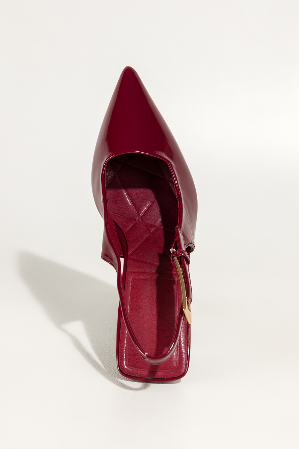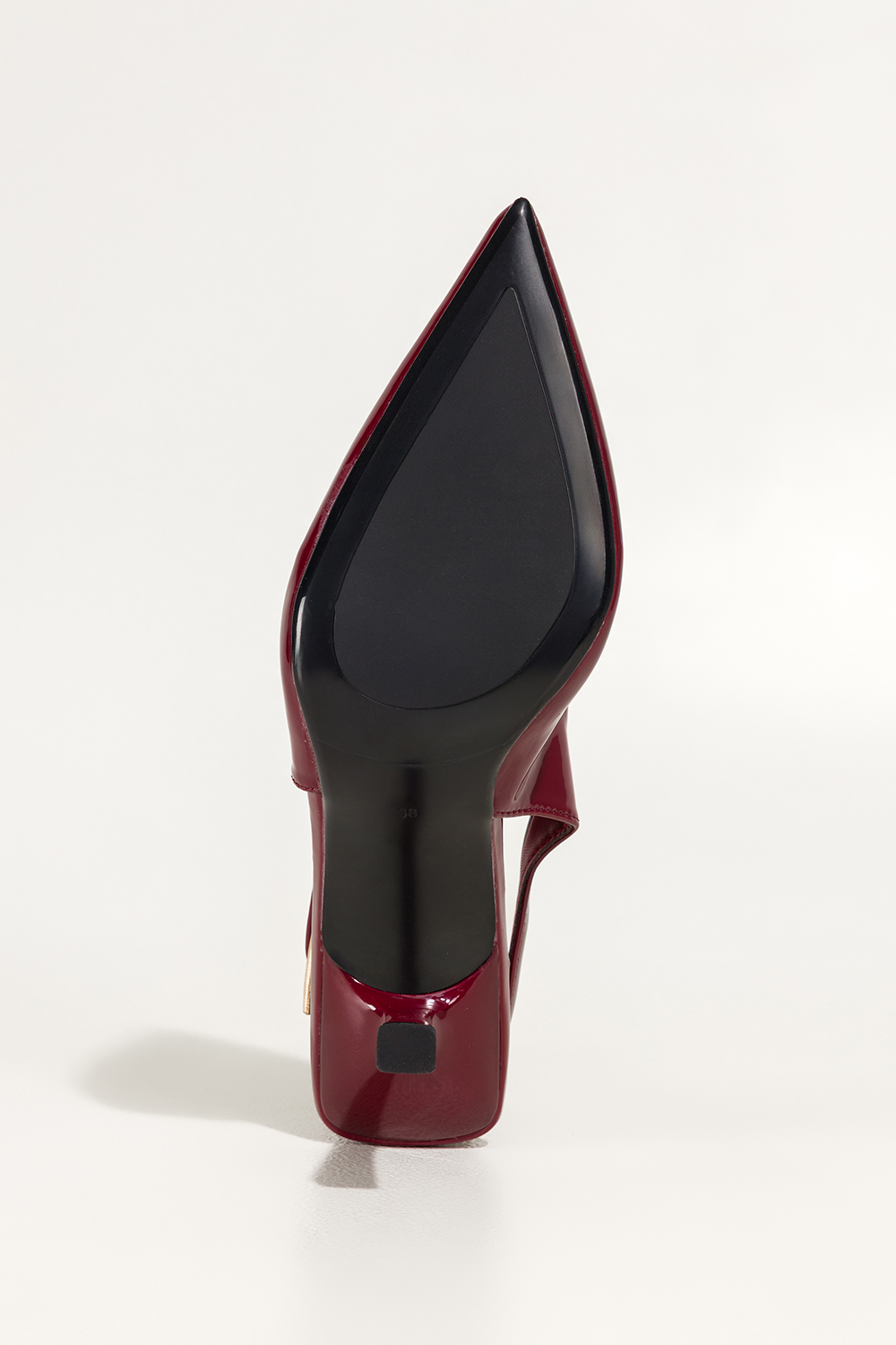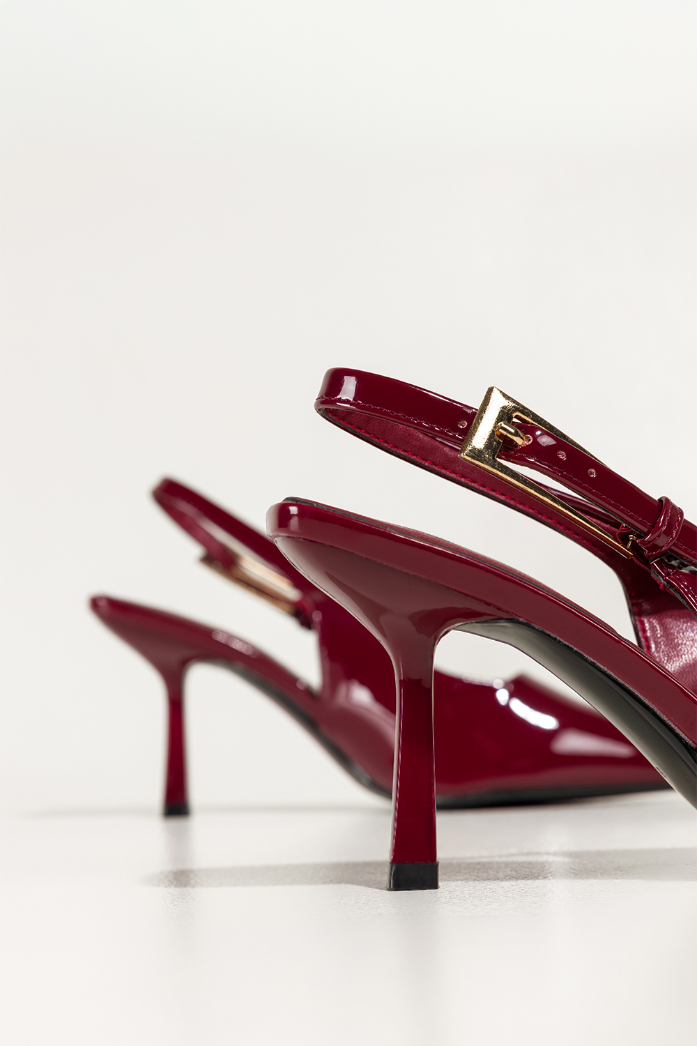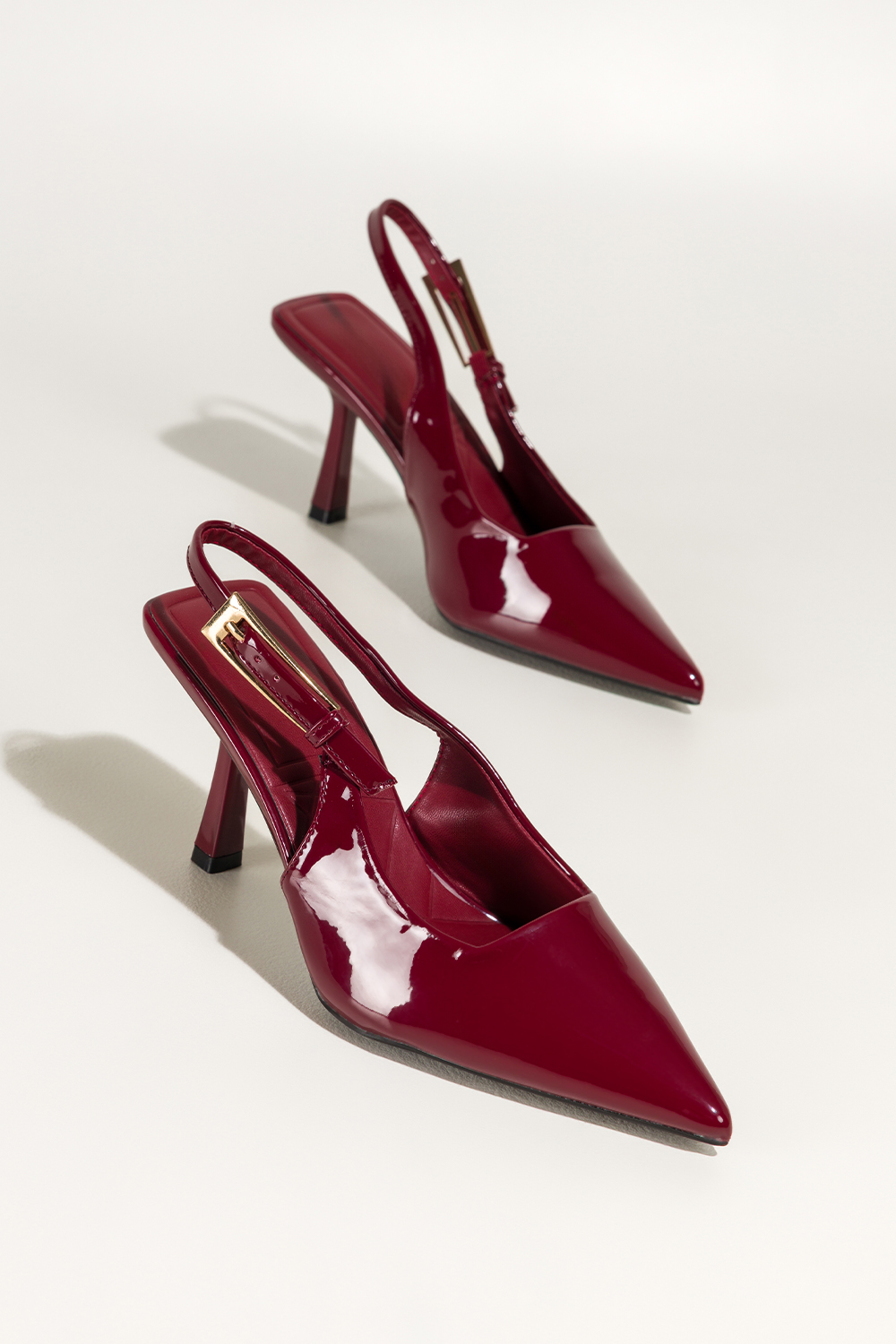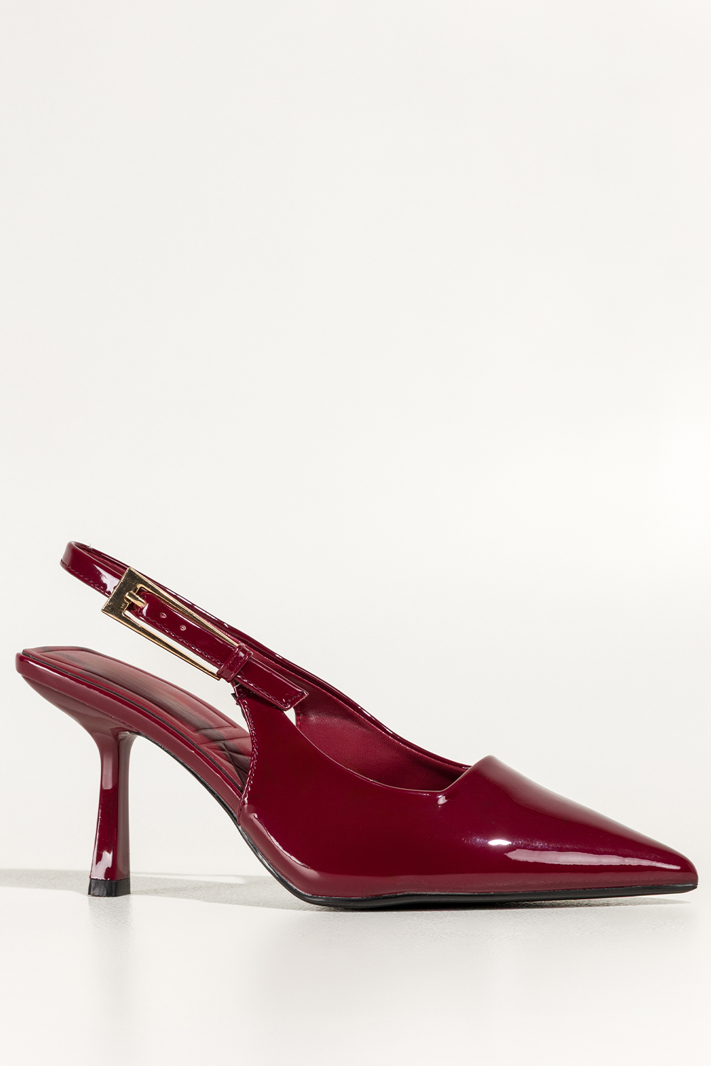 Bordowe czółenka damskie lakierowane szpilki z odkrytą piętą obcas kieliszek Carla 496-61