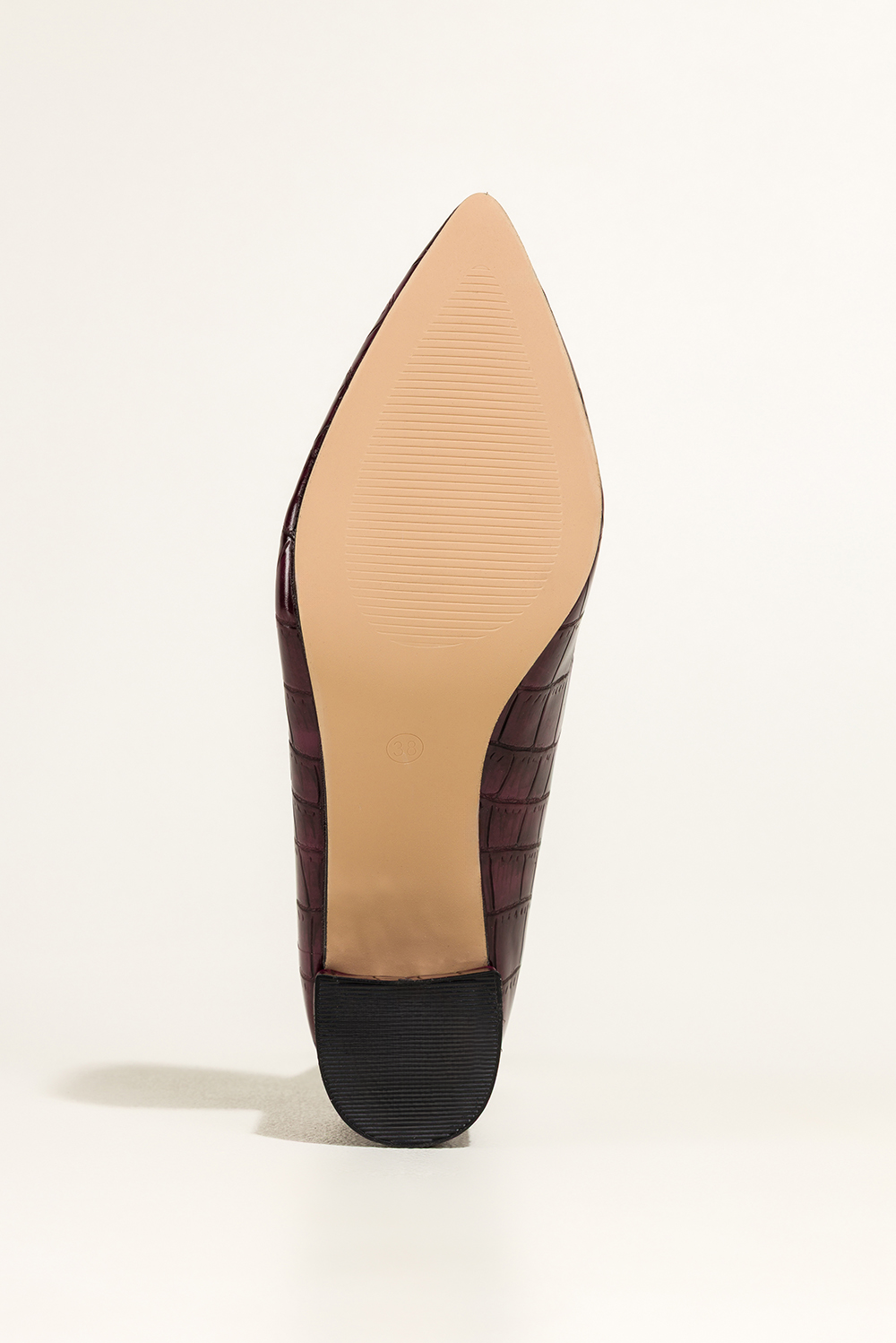 Bordowe czółenka damskie na słupku krokodyli wzór skórzana wkładka Casu model D25WX3-R. Buty zostały stworzone z wysokogatunkowej skóry ekologicznej, która zachwyca strukturą imitującą luksusowy krokodyli wzór. Starannie wyprofilowany szpiczasty nosek dodaje sylwetce lekkości i elegancji, a skórzana wkładka zapewnia komfort nawet podczas długich godzin użytkowania. Obcas w formie słupka pokryty tym samym, stylowym wzorem to gwarancja nie tylko stabilności, ale i ponadczasowej klasy. Bordowy kolor emanuje głębią i elegancją, doskonale komponując się zarówno z codziennymi stylizacjami, jak i wieczorowymi zestawami. Krokodyli wzór przyciąga wzrok i dodaje pazura każdemu outfitowi, podkreślając indywidualny charakter właścicielki. To model, który świetnie odnajduje się w połączeniu z garniturem, sukienką midi, a nawet jeansami i białą koszulą. Dzięki wsuwanemu fasonowi, czółenka są niezwykle wygodne w zakładaniu, a stabilny słupek sprawia, że możesz nosić je przez cały dzień, do pracy, na randkę czy eleganckie wyjście. Ich uniwersalny krój oraz ponadczasowy design sprawiają, że będą pasować na każdą porę roku i okazję. Skórzana wkładka dodatkowo zwiększa komfort, czyniąc z tego modelu nie tylko piękne, ale i praktyczne obuwie. Cechy wyróżniające Wysokiej jakości skóra ekologiczna z krokodylim wzorem Skórzana wkładka zapewniająca komfort noszenia Szpiczasty nosek wysmuklający sylwetkę Stabilny słupek pokryty skórą ekologiczną Wsuwany fason, wygodny i praktyczny Głęboki bordowy kolor dodający elegancji To idealne obuwie dla kobiet, które pragną wyglądać zjawiskowo bez rezygnacji z komfortu. Zamów teraz na Casu i nadaj swojej stylizacji niepowtarzalny charakter! Obuwie ma zaniżoną rozmiarówkę, dlatego przed zakupem prosimy o dokładne zapoznanie się z tabelą rozmiarów, aby dobrać idealny rozmiar.
