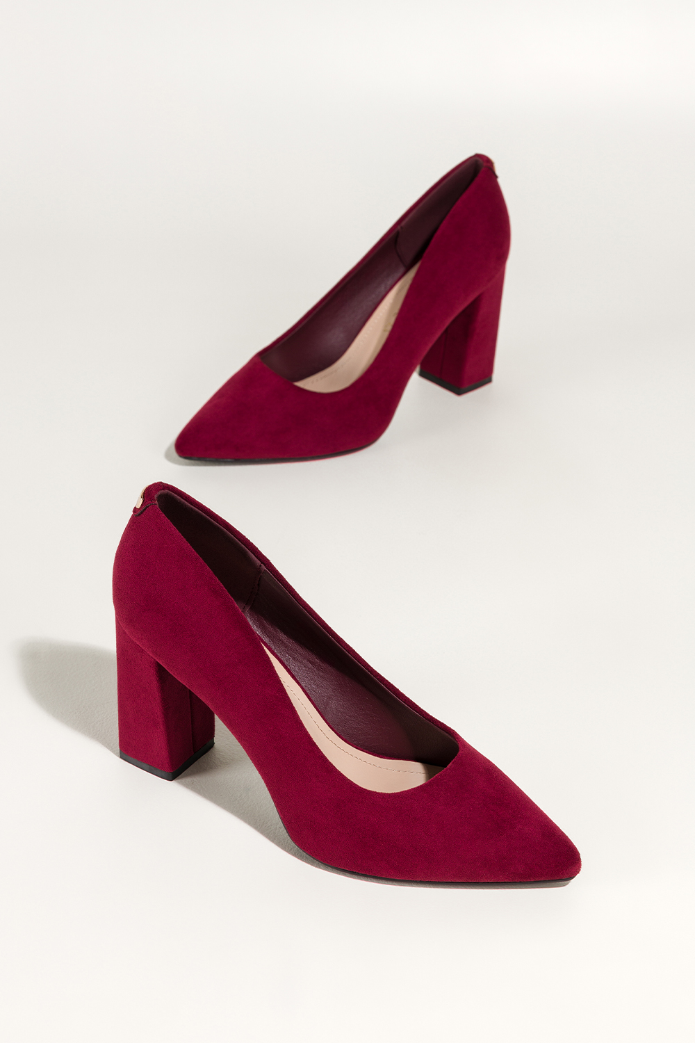 Fuksjowe czółenka skórzane na niskim obcasie z odkrytą piętą PRODUKT POLSKI Casu 2576-204