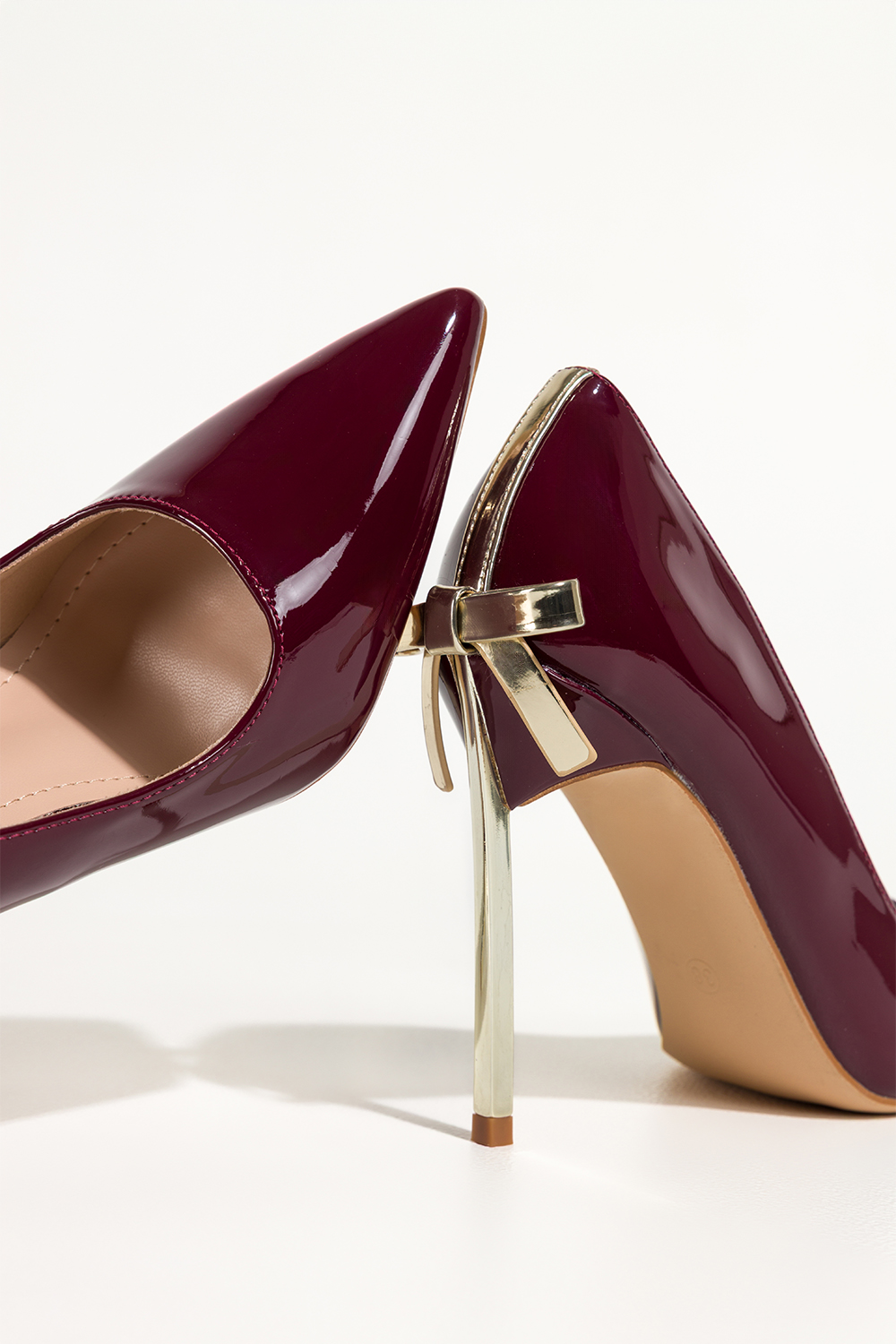 Bordowe czółenka damskie szpilki lakierowane złoty obcas z kokardą Carla BQB077 to model o wyrazistym stylu. Głęboki, bordowy kolor w połączeniu z lśniącą fakturą lakierowanej cholewki tworzy efekt luksusu, który przyciąga spojrzenia. Smukły, szpiczasty nosek wysmukla stopę, a złoty obcas szpilka oraz subtelna złota kokarda na pięcie nadają całości biżuteryjnego charakteru. Model został wykonany z wysokogatunkowej lakierowanej skóry ekologicznej, która prezentuje się efektownie. Wnętrze uzupełnia miękka wkładka ze skóry ekologicznej, dbająca o komfort nawet podczas wielogodzinnego noszenia. Staranność wykonania i dobrze wyprofilowana konstrukcja sprawiają, że buty stabilnie trzymają stopę, pozwalając czuć się pewnie przy każdym kroku. Te bordowe czółenka doskonale dopełnią stylizacje wieczorowe, kreacje na wesele, karnawał lub elegancką kolację. Świetnie komponują się z klasyczną sukienką, garniturem w kobiecym wydaniu, a także z minimalistyczną stylizacją, w której staną się najmocniejszym akcentem. Ich ponadczasowy charakter sprawia, że z powodzeniem wykorzystasz je przez cały rok. Cechy wyróżniające lakierowana skóra ekologiczna o eleganckim połysku złoty obcas szpilka podkreślający smukłą linię sylwetki szpiczasty nosek optycznie wydłużający stopę wsuwany fason zapewniający wygodę użytkowania dekoracyjna złota kokarda na pięcie model idealny na imprezy, wesela i wyjątkowe okazje Postaw na styl, który podkreśli Twoją pewność siebie. Wybierz ten model i zamów już dziś na Casu. pl, aby dodać swoim stylizacjom wyrazistej elegancji. Model ten został zaprojektowany z myślą o wąskiej stopie, zapewniając idealne dopasowanie i komfort noszenia.
