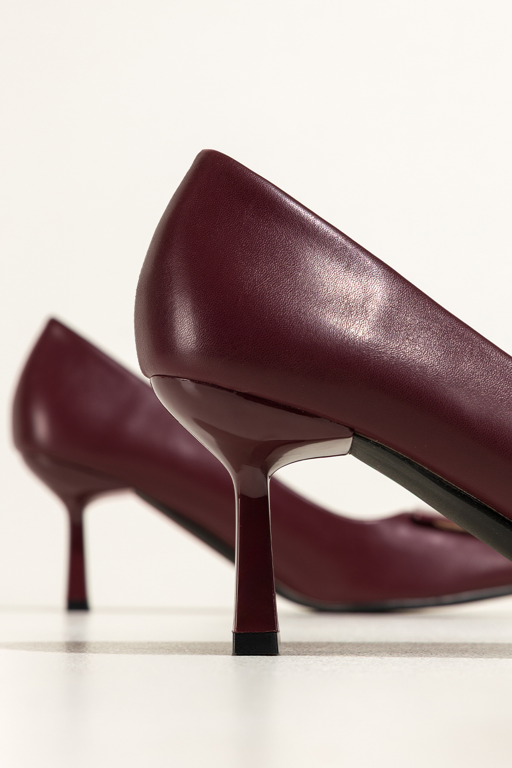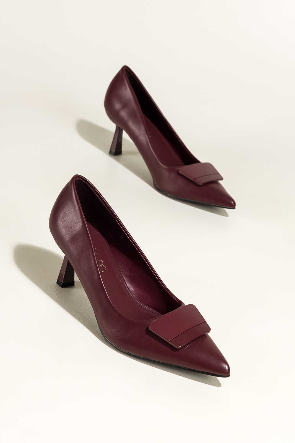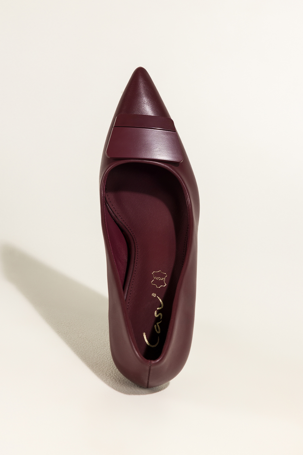 Bordowe czółenka damskie szpilki z ozdobą obcas kieliszek skórzana wkładka Casu D25WX2-R
