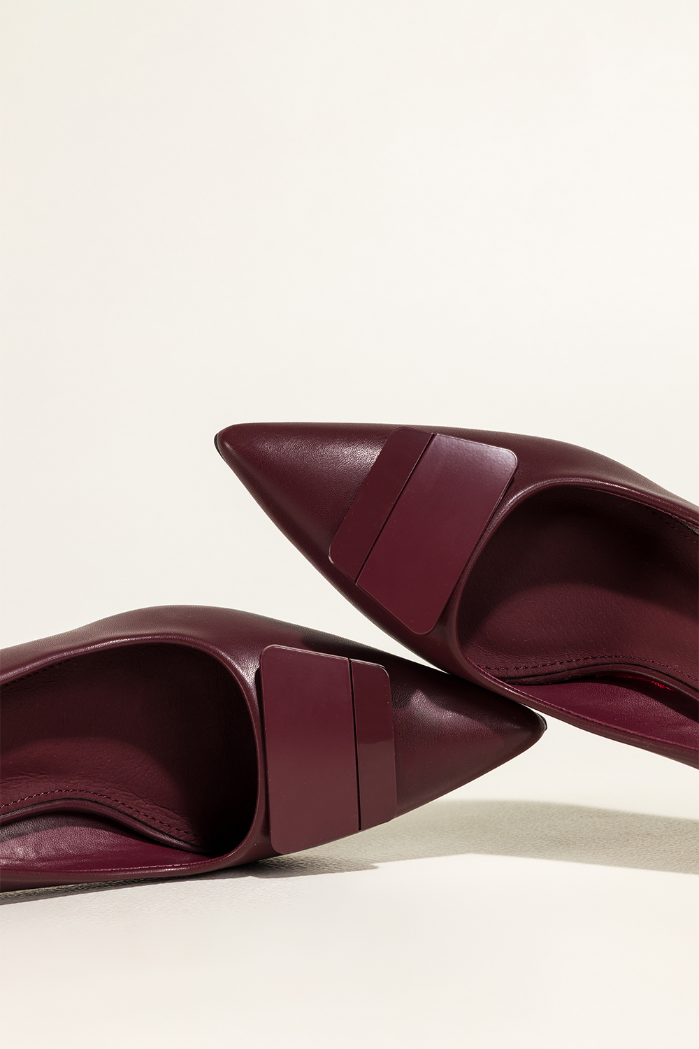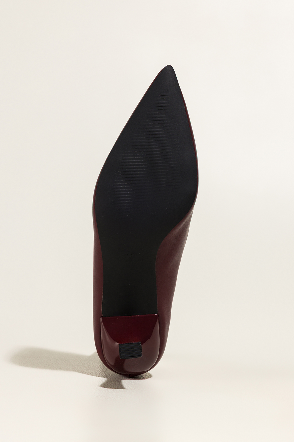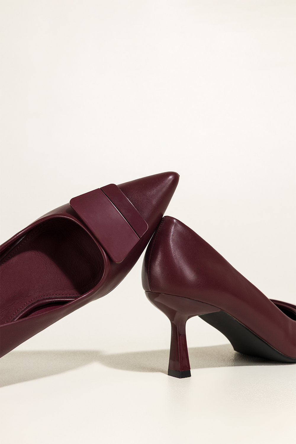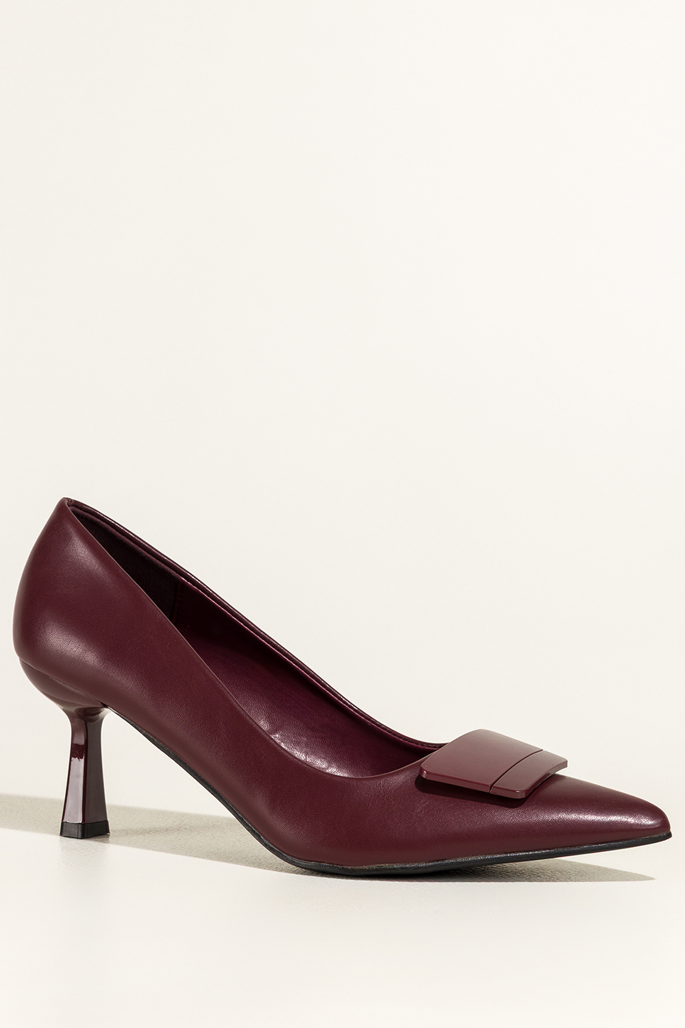 Bordowe czółenka damskie szpilki z ozdobą obcas kieliszek skórzana wkładka Casu D25WX2-R
