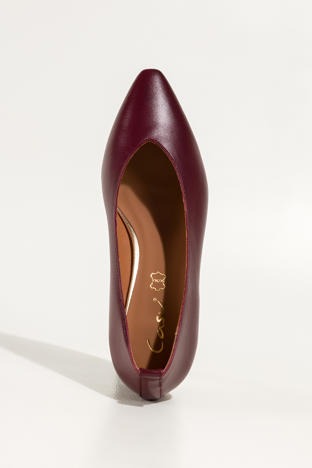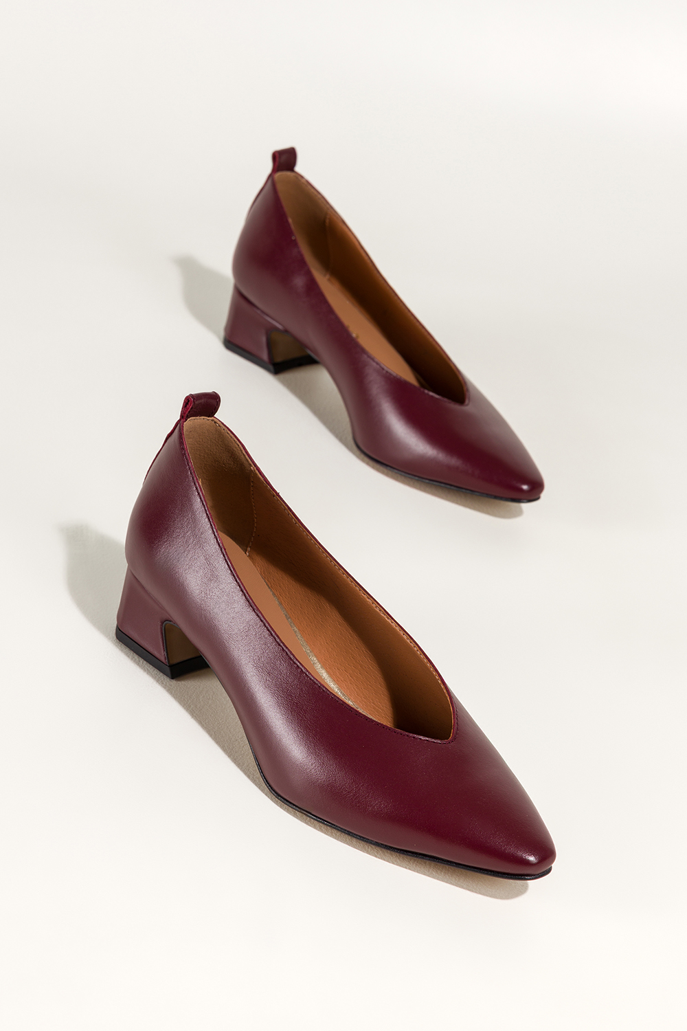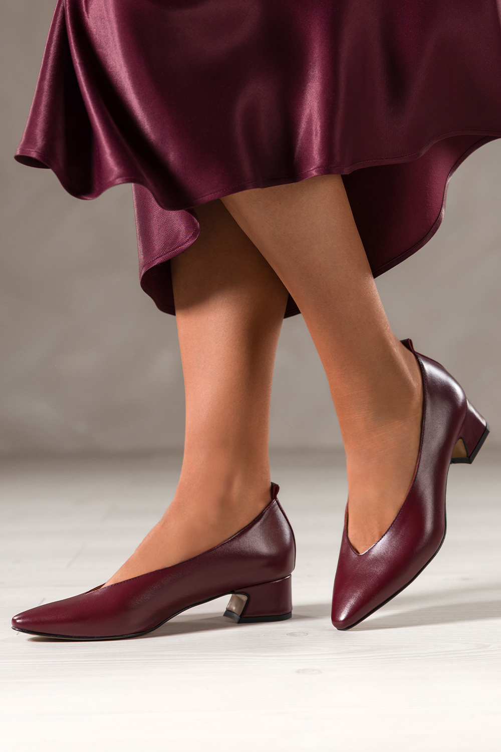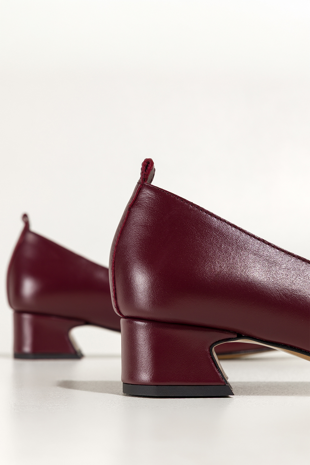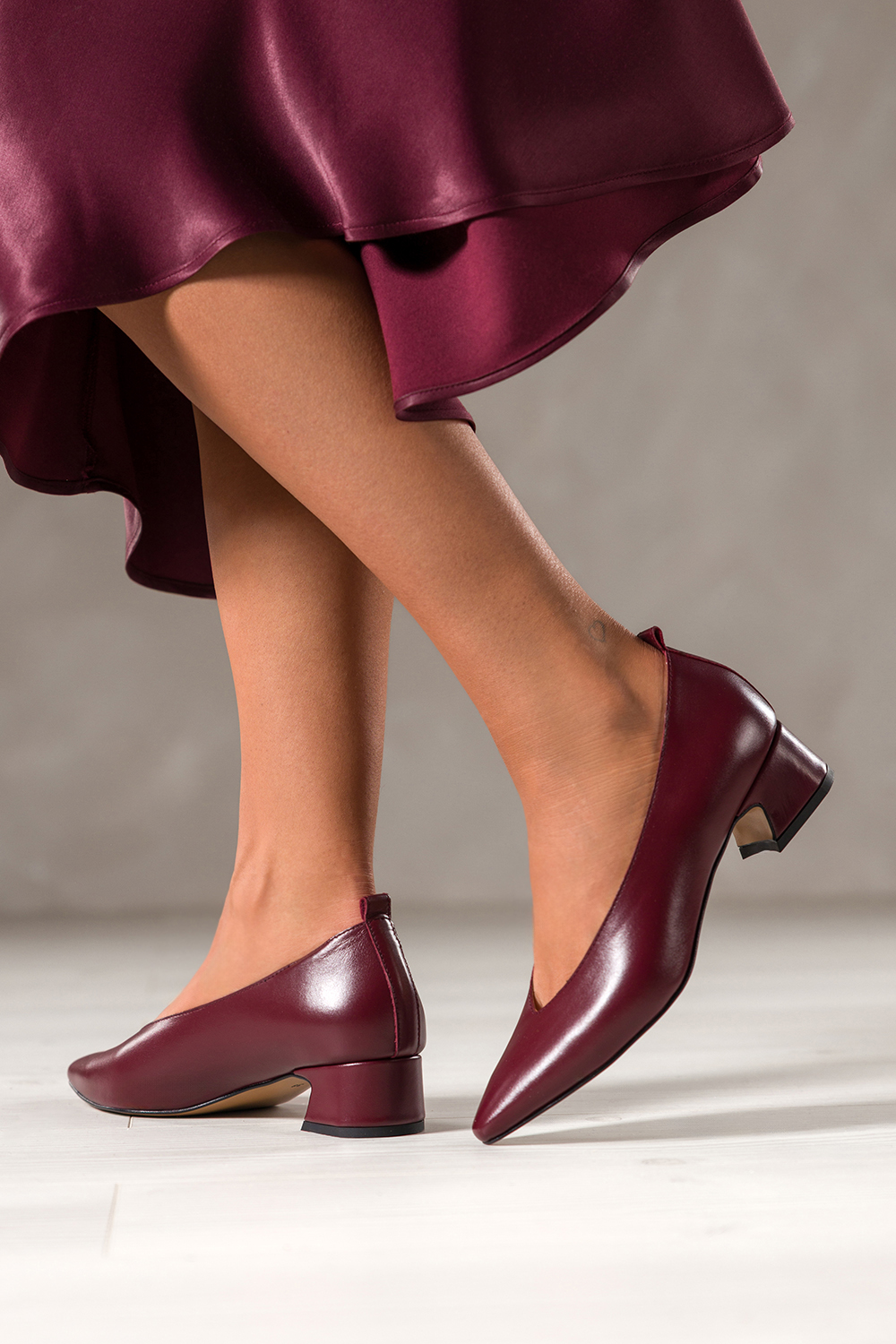 Bordowe czółenka skórzane damskie na niskim klocku wycięcie w cholewce PRODUKT POLSKI Casu 7235-771