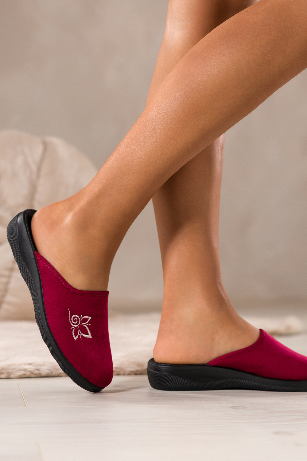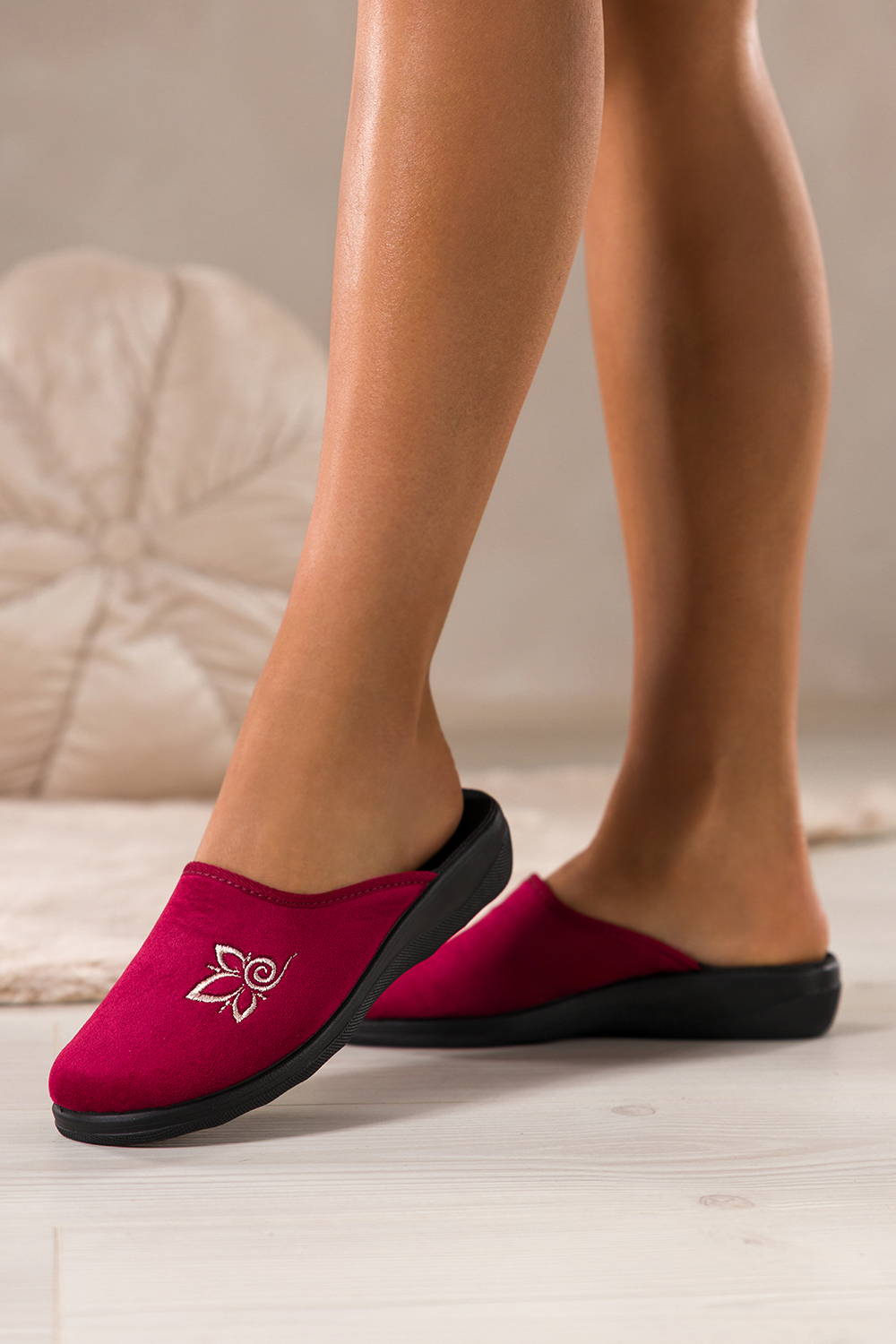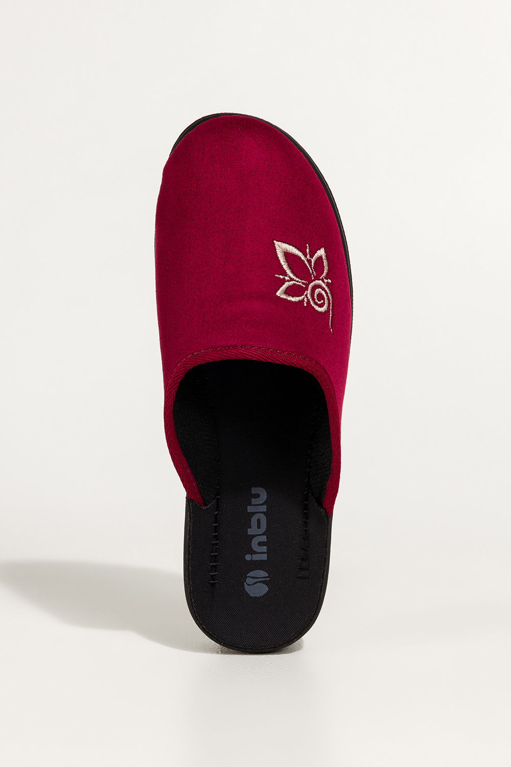 Bordowe kapcie damskie Inblu obuwie domowe z haftem XF99997W