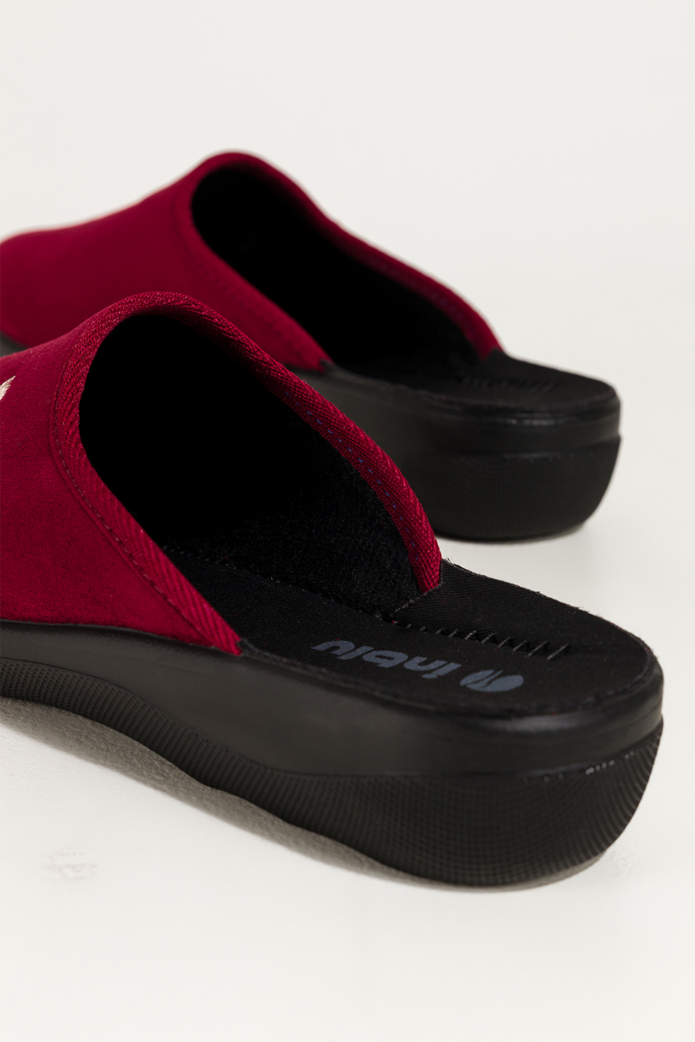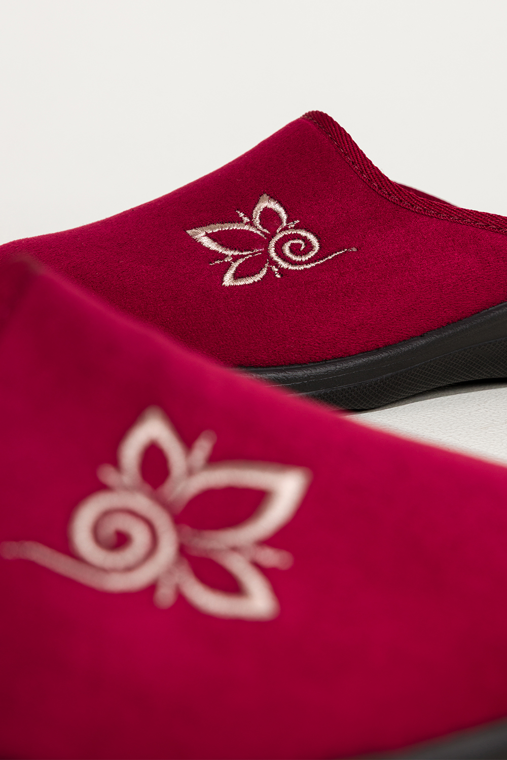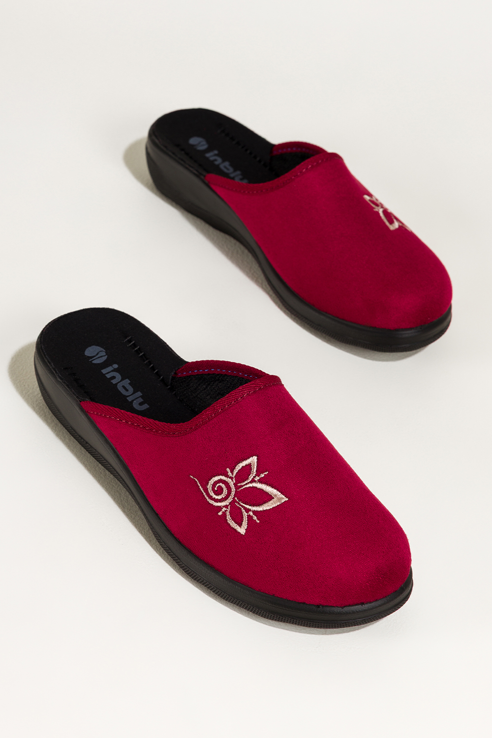 Bordowe kapcie damskie Inblu obuwie domowe z haftem XF99997W