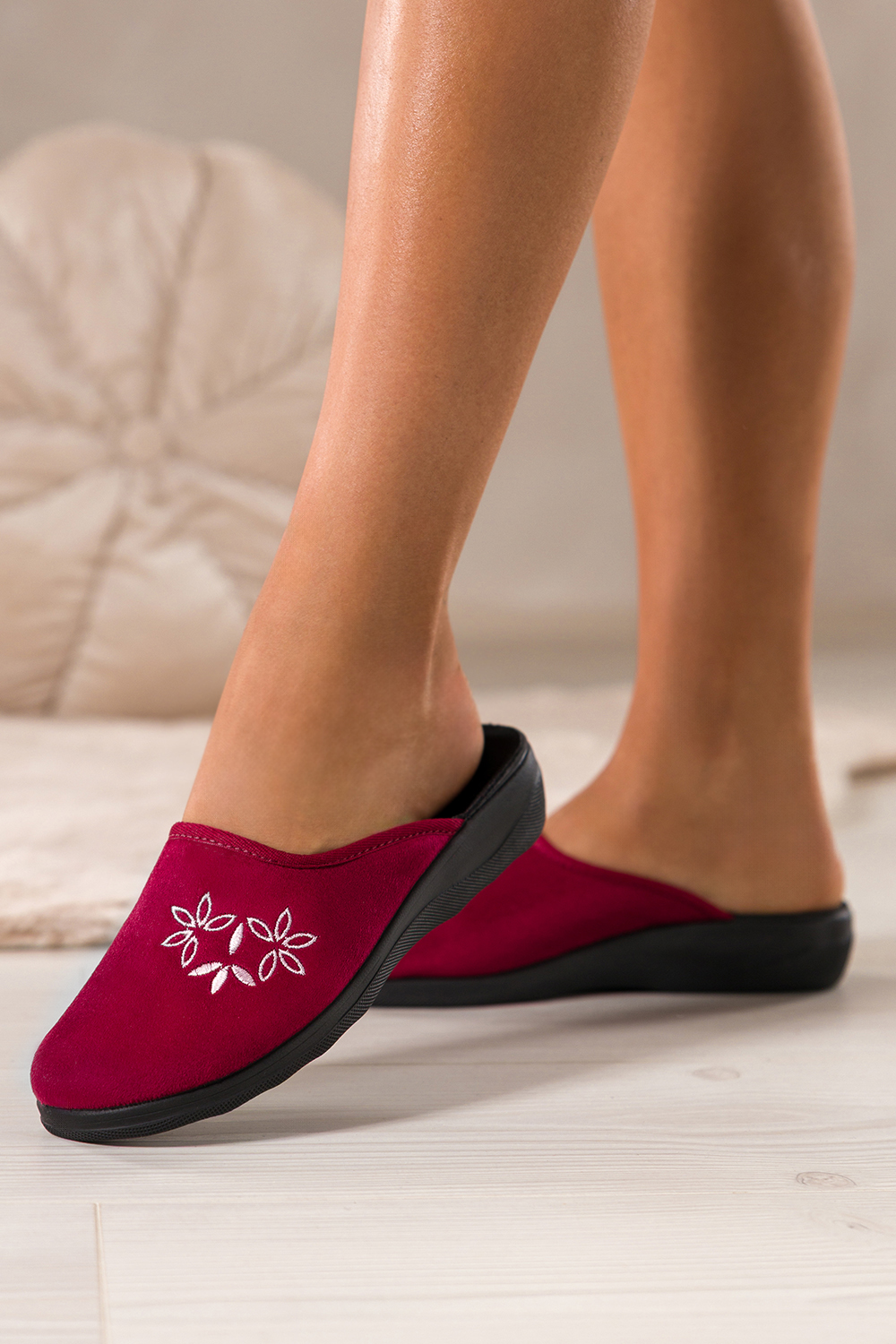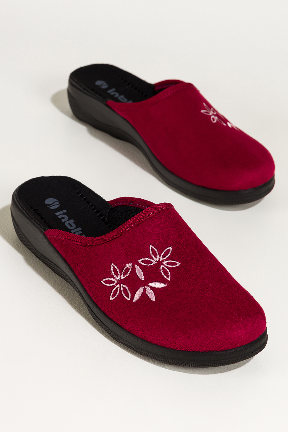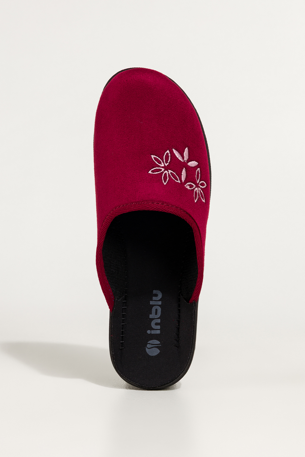 Bordowe kapcie damskie Inblu obuwie domowe z haftowanymi kwiatami XF99994S