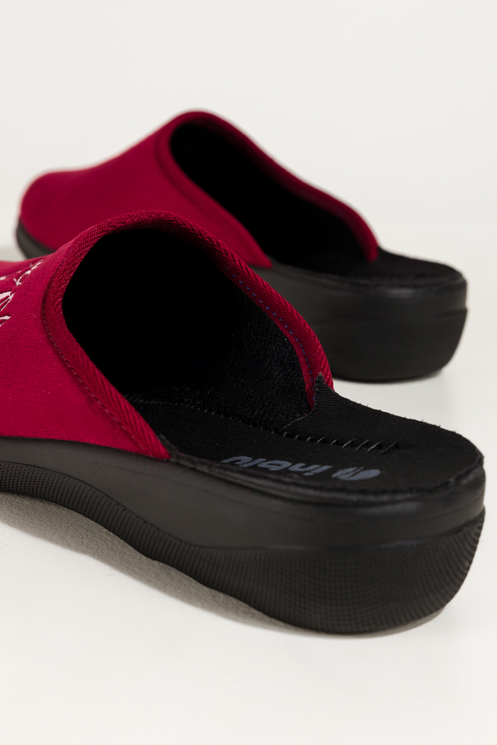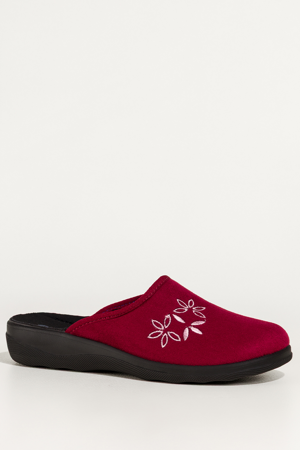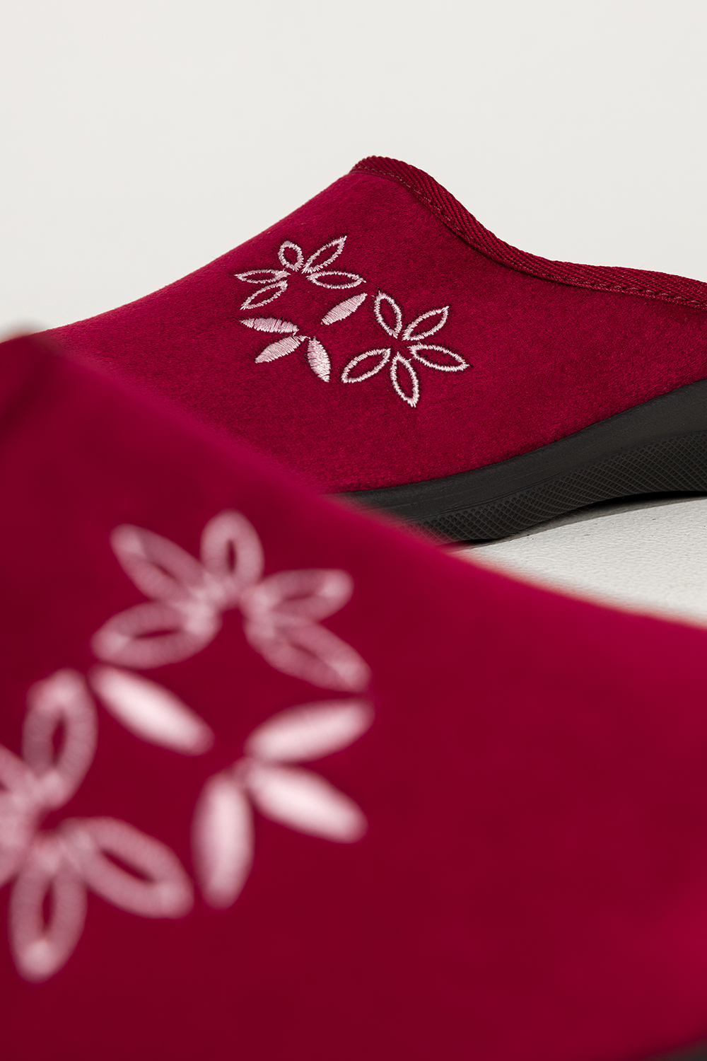 Bordowe kapcie damskie Inblu obuwie domowe z haftowanymi kwiatami XF99994S