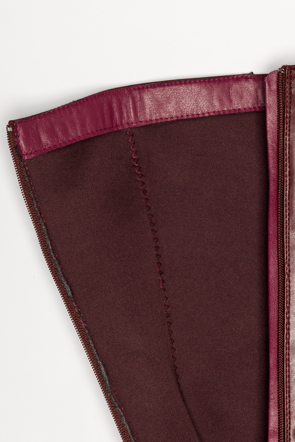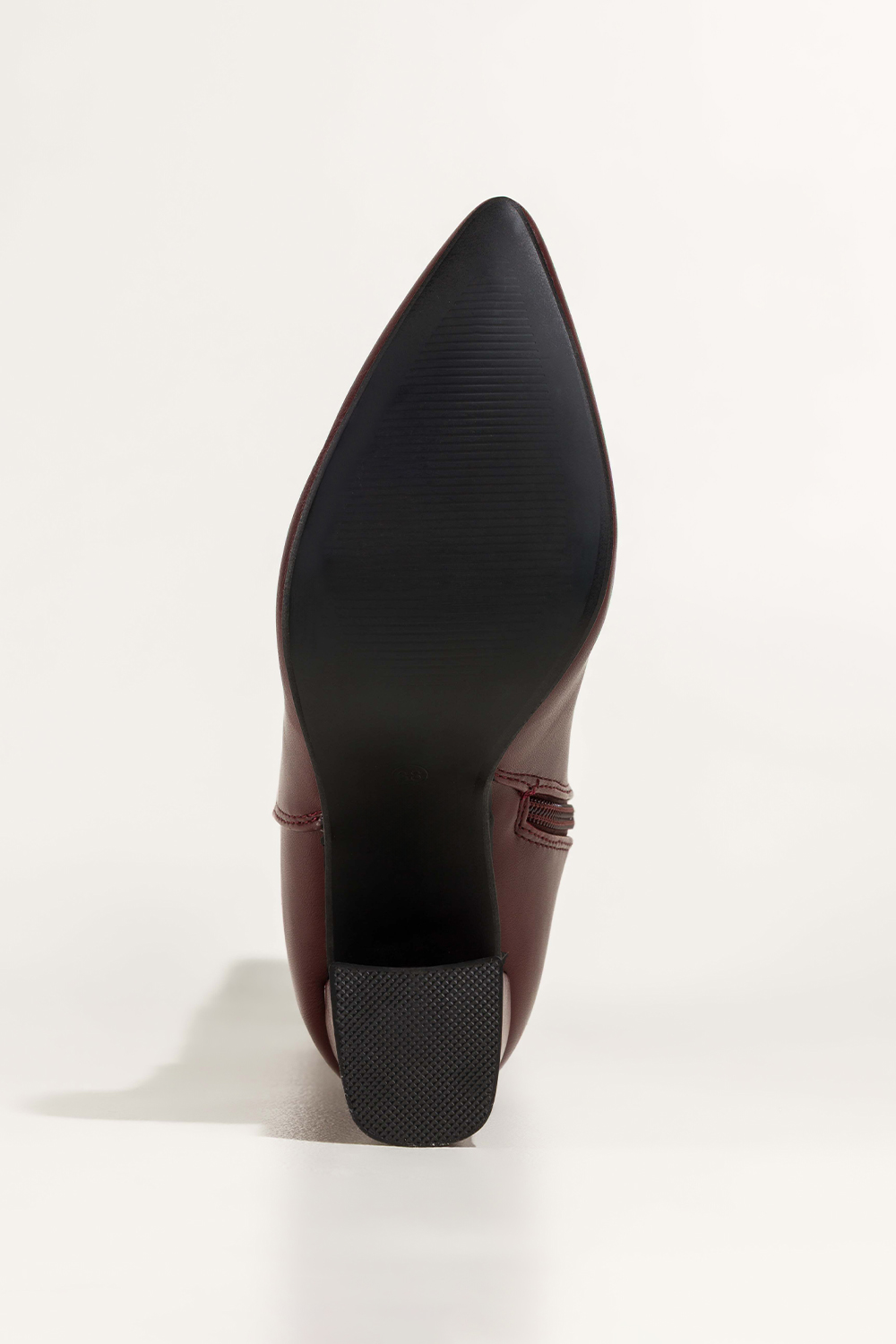 Bordowe kozaki damskie na szerokim ozdobnym słupku guma w cholewce Casu D25WX5-R. Model stworzony z wysokogatunkowej skóry ekologicznej, z materiałowym wnętrzem oraz wkładką ze skóry ekologicznej zapewnia miękkość, trwałość i wysoki komfort nawet podczas wielogodzinnego użytkowania. Szpiczasty nosek i szeroki, ozdobny obcas pokryty skórą ekologiczną ze stalowym akcentem to detale, które przyciągają wzrok i dodają charakteru każdej stylizacji. Bordowy kolor dodaje głębi i kobiecej elegancji, świetnie komponując się z jesiennymi płaszczami, wełnianymi sukienkami czy casualowymi jeansami. Elastyczna guma w cholewce ułatwia dopasowanie do łydki, zapewniając wygodę i stabilność niezależnie od kształtu nogi. Kozaki przed kolano, zapinane na zamek są nie tylko stylowe, ale i niezwykle praktyczne. Doskonale sprawdzą się zarówno na co dzień, jak i podczas bardziej formalnych okazji, oferując wygodę oraz modny wygląd przez cały sezon. Idealne do pracy, na spacer, a także na wieczorne wyjścia. Ich klasyczny fason i wyrazisty kolor sprawiają, że łatwo dopasują się do wielu stylów i garderoby każdej kobiety. Cechy wyróżniające Wysokogatunkowa skóra ekologiczna Wygodna wkładka ze skóry ekologicznej Szeroki słupek z ozdobą w kolorze stali Elastyczna guma ułatwiająca dopasowanie cholewki Szpiczasty, kobiecy nosek Praktyczne zapięcie na zamek Uniwersalny bordowy kolor pasujący do wielu stylizacji To model stworzony dla kobiet, które cenią elegancję i wygodę każdego dnia. Zamów już teraz na Casu i postaw na styl, który robi wrażenie! Kozaki posiadają wąską cholewkę, dlatego najlepiej sprawdzą się na szczupłą łydkę.