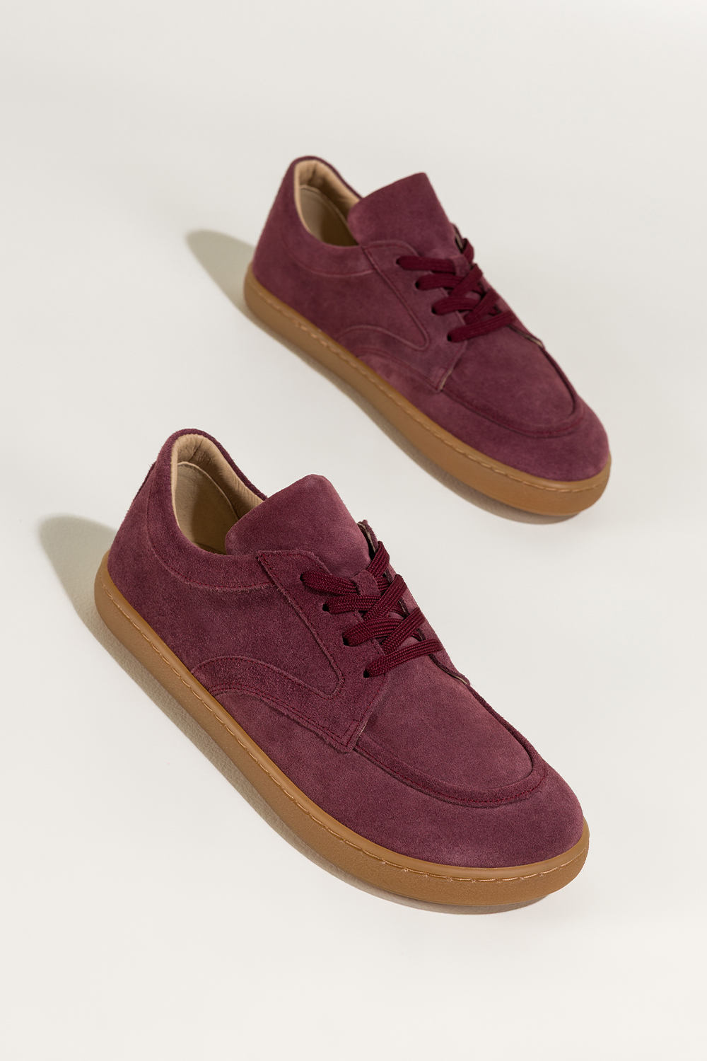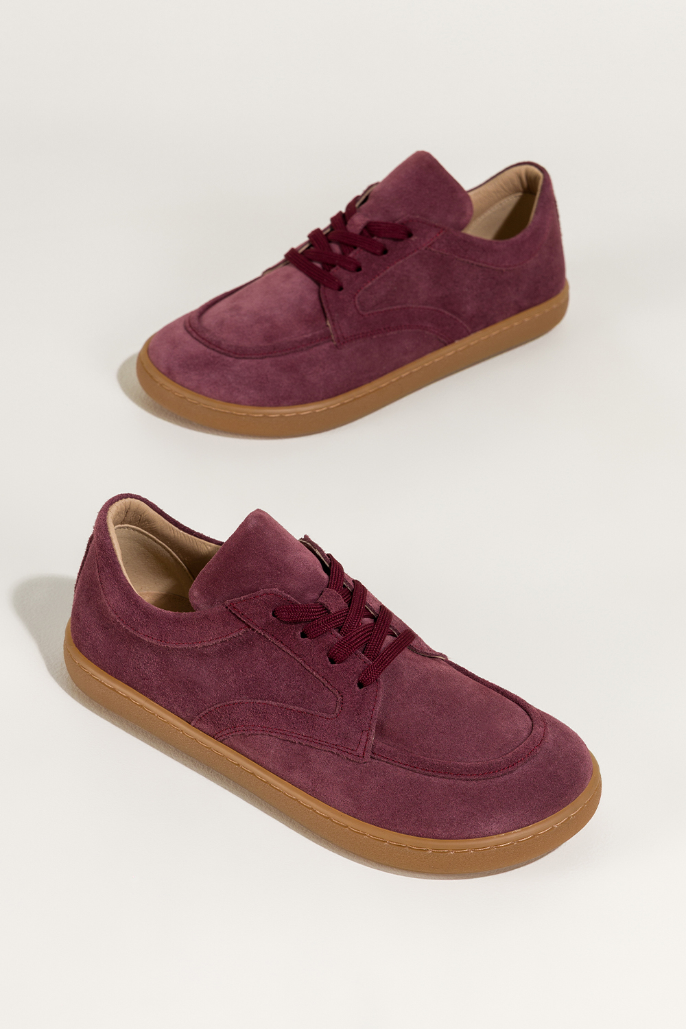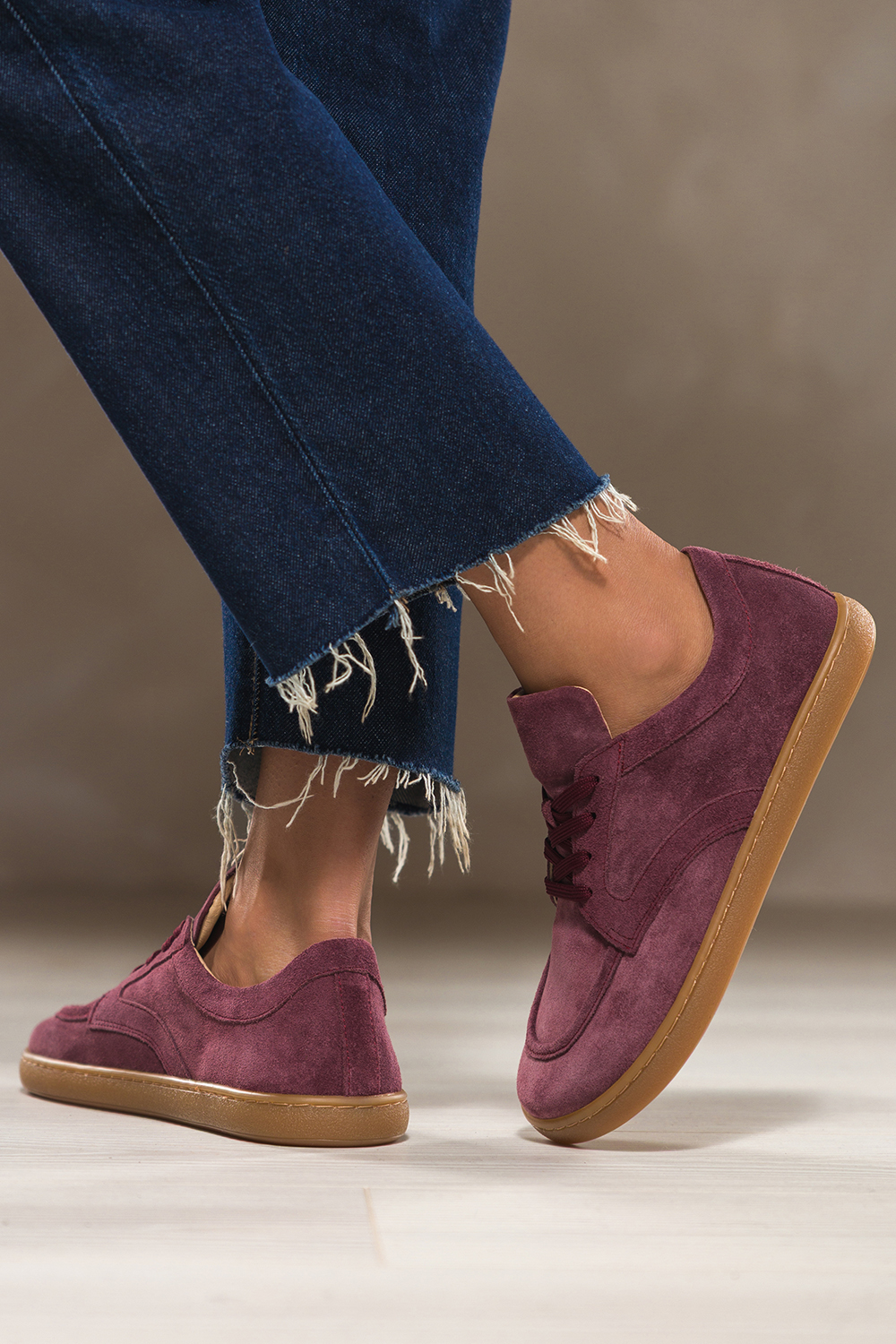Bordowe półbuty barefoot skórzane zamszowe damskie szerokie na elastycznej płaskiej podeszwie cholewka z przeszyciami sznurowane PRODUKT POLSKI Casu model M8669, perfekcyjne połączenie wygody, jakości i stylu. Wykonane z wysokogatunkowej, miękkiej zamszowej skóry, zapewniają maksymalny komfort noszenia i dopasowanie do naturalnego kształtu stopy. Skórzana wkładka oraz elastyczna, beżowa, płaska podeszwa gwarantują idealne wsparcie dla stóp, nawet podczas długiego dnia. Dzięki starannemu wykonaniu i solidnym przeszyciom, buty te są trwałe i odporne na codzienne użytkowanie. Bordowy kolor i sznurowanie dodają butom oryginalnego charakteru, który sprawdzi się zarówno w stylizacjach casualowych, jak i bardziej eleganckich. Zaokrąglony szeroki nosek zapewnia przestrzeń dla palców, co czyni ten model idealnym dla osób z szerszą stopą lub poszukujących butów barefoot o naturalnym kroju. Dzięki swojej prostocie i klasycznej formie, doskonale pasują do spodni, sukienek i spódnic, na co dzień, do pracy, a nawet na długie spacery. Ten model to więcej niż tylko moda, to świadomy wybór dla zdrowia stóp. Lekkie, elastyczne i oddychające, półbuty wspierają prawidłową postawę i naturalny chód. Ich minimalistyczna konstrukcja pozwala stopie pracować zgodnie z jej biomechaniką, jednocześnie chroniąc przed nierównościami terenu. To doskonała opcja dla kobiet, które cenią komfort, swobodę ruchu i nowoczesny design inspirowany naturą. Cechy wyróżniające Naturalna zamszowa skóra wysokiej jakości Szeroki, zaokrąglony nosek dla maksymalnego komfortu Elastyczna, beżowa, płaska podeszwa barefoot Skórzana, oddychająca wkładka Stylowe bordowe sznurówki i przeszycia na cholewce Idealne dla szerokiej stopy, dopasowane, nie uciskające PRODUKT POLSKI, gwarancja jakości i precyzji wykonania Ten wyjątkowy model zachwyca nie tylko komfortem, ale i oryginalnym wyglądem. Sprawdź już teraz i zamów w sklepie Casu, poczuj różnicę na własnych stopach!