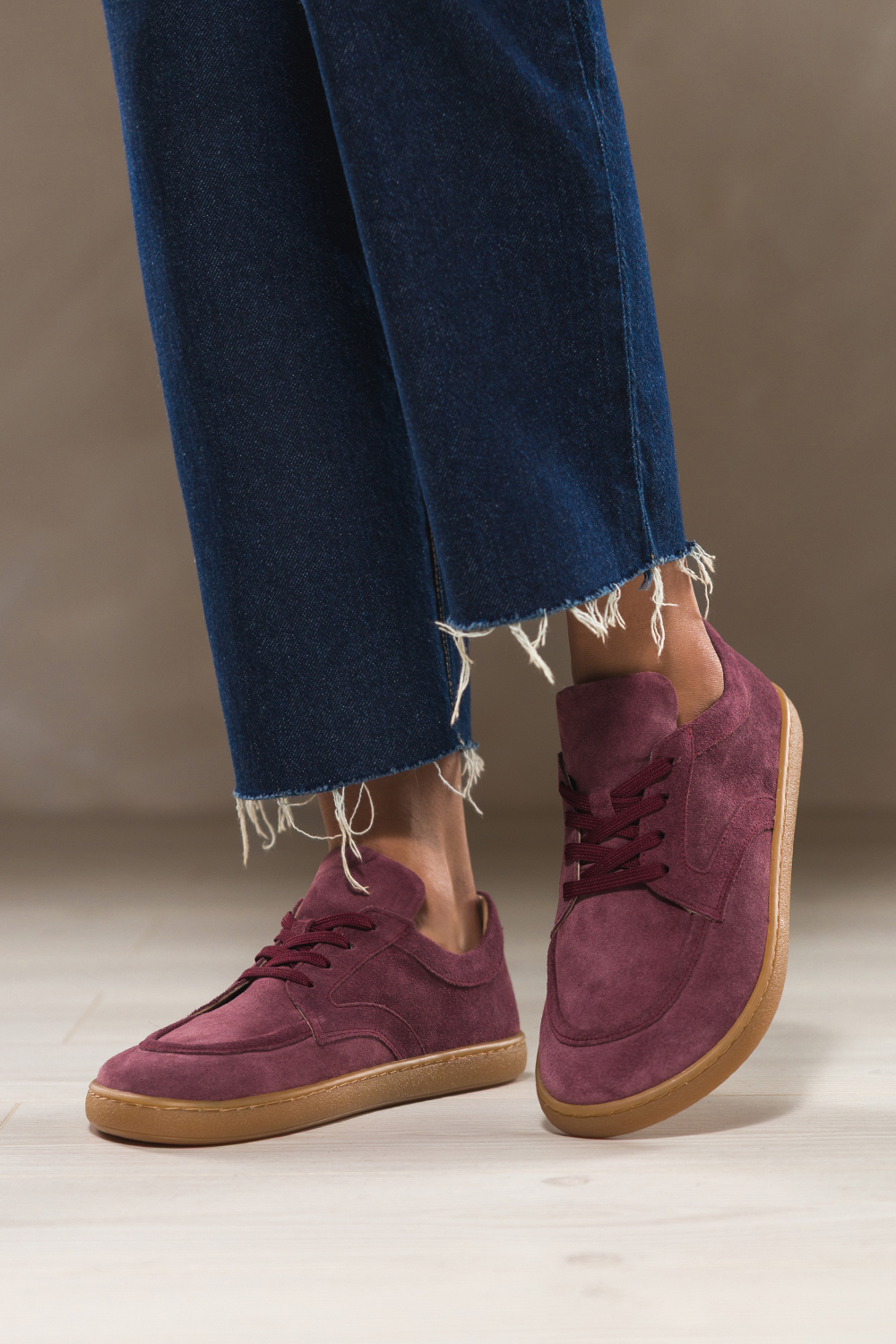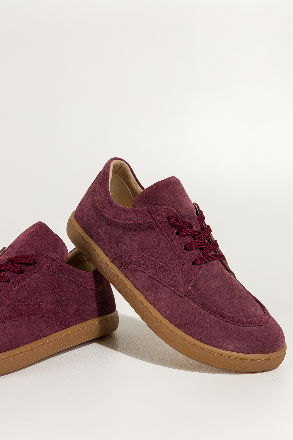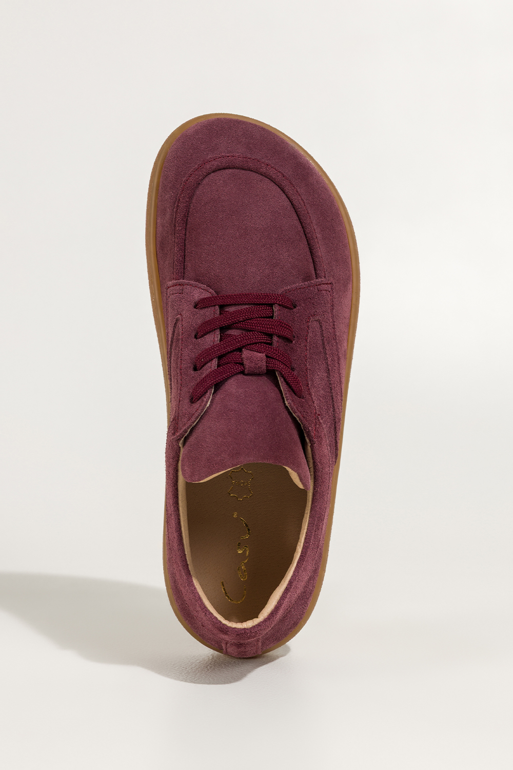 Bordowe półbuty barefoot skórzane zamszowe damskie szerokie na elastycznej płaskiej podeszwie cholewka z przeszyciami sznurowane PRODUKT POLSKI Casu model M8669, perfekcyjne połączenie wygody, jakości i stylu. Wykonane z wysokogatunkowej, miękkiej zamszowej skóry, zapewniają maksymalny komfort noszenia i dopasowanie do naturalnego kształtu stopy. Skórzana wkładka oraz elastyczna, beżowa, płaska podeszwa gwarantują idealne wsparcie dla stóp, nawet podczas długiego dnia. Dzięki starannemu wykonaniu i solidnym przeszyciom, buty te są trwałe i odporne na codzienne użytkowanie. Bordowy kolor i sznurowanie dodają butom oryginalnego charakteru, który sprawdzi się zarówno w stylizacjach casualowych, jak i bardziej eleganckich. Zaokrąglony szeroki nosek zapewnia przestrzeń dla palców, co czyni ten model idealnym dla osób z szerszą stopą lub poszukujących butów barefoot o naturalnym kroju. Dzięki swojej prostocie i klasycznej formie, doskonale pasują do spodni, sukienek i spódnic, na co dzień, do pracy, a nawet na długie spacery. Ten model to więcej niż tylko moda, to świadomy wybór dla zdrowia stóp. Lekkie, elastyczne i oddychające, półbuty wspierają prawidłową postawę i naturalny chód. Ich minimalistyczna konstrukcja pozwala stopie pracować zgodnie z jej biomechaniką, jednocześnie chroniąc przed nierównościami terenu. To doskonała opcja dla kobiet, które cenią komfort, swobodę ruchu i nowoczesny design inspirowany naturą. Cechy wyróżniające Naturalna zamszowa skóra wysokiej jakości Szeroki, zaokrąglony nosek dla maksymalnego komfortu Elastyczna, beżowa, płaska podeszwa barefoot Skórzana, oddychająca wkładka Stylowe bordowe sznurówki i przeszycia na cholewce Idealne dla szerokiej stopy, dopasowane, nie uciskające PRODUKT POLSKI, gwarancja jakości i precyzji wykonania Ten wyjątkowy model zachwyca nie tylko komfortem, ale i oryginalnym wyglądem. Sprawdź już teraz i zamów w sklepie Casu, poczuj różnicę na własnych stopach!