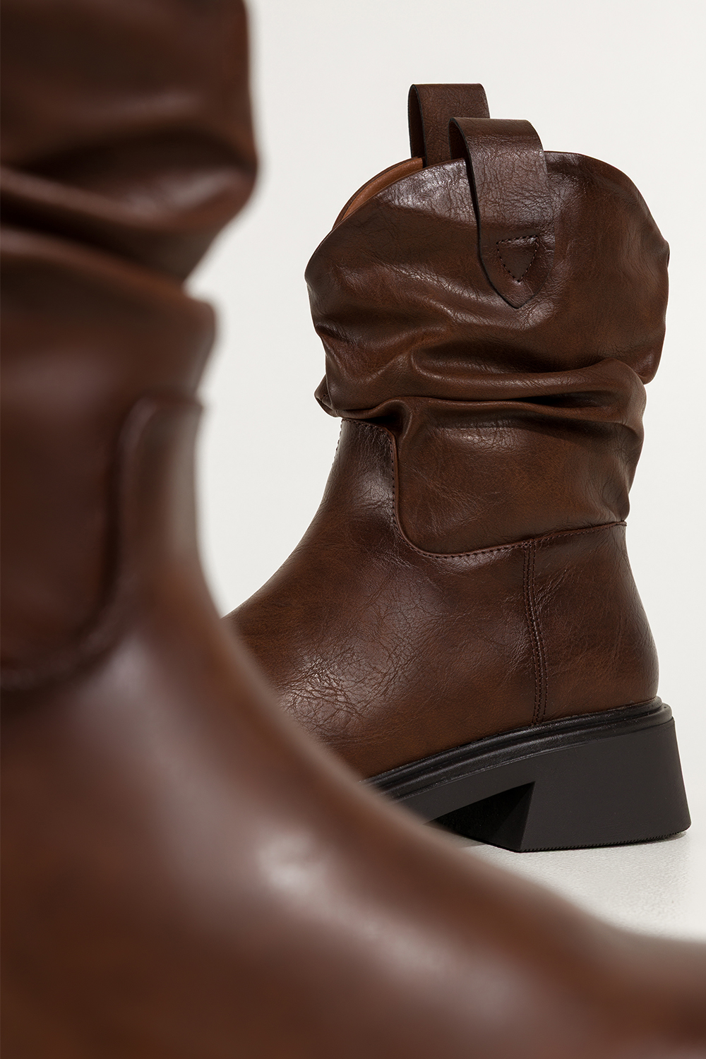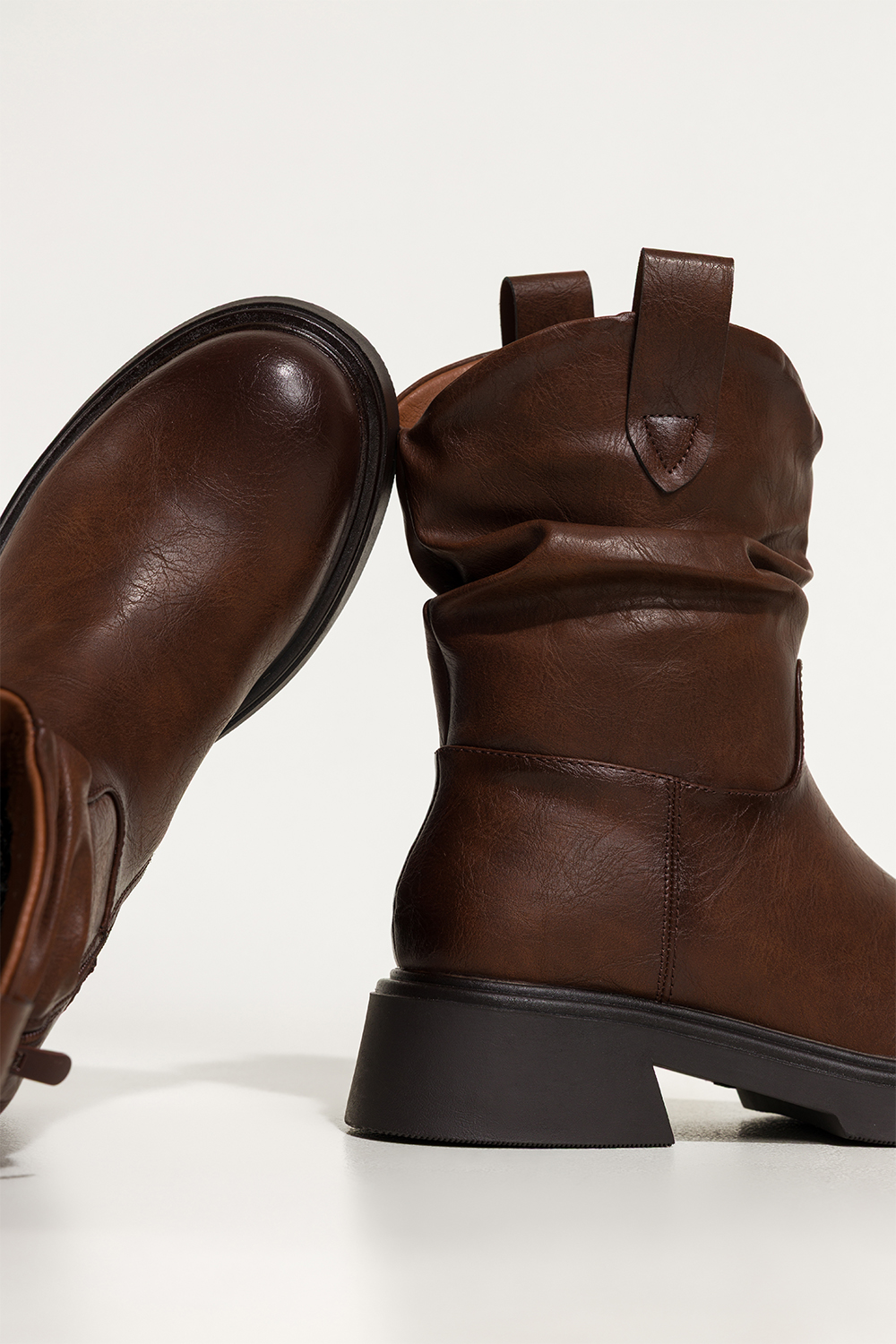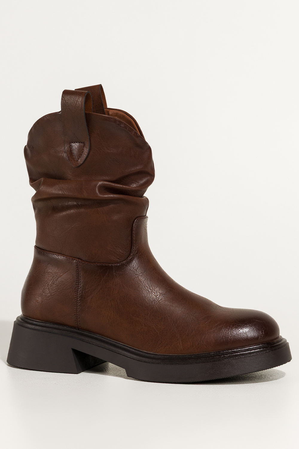 Brązowe botki damskie na niskim klocku marszczona cholewka z wycięciami Casu 1851