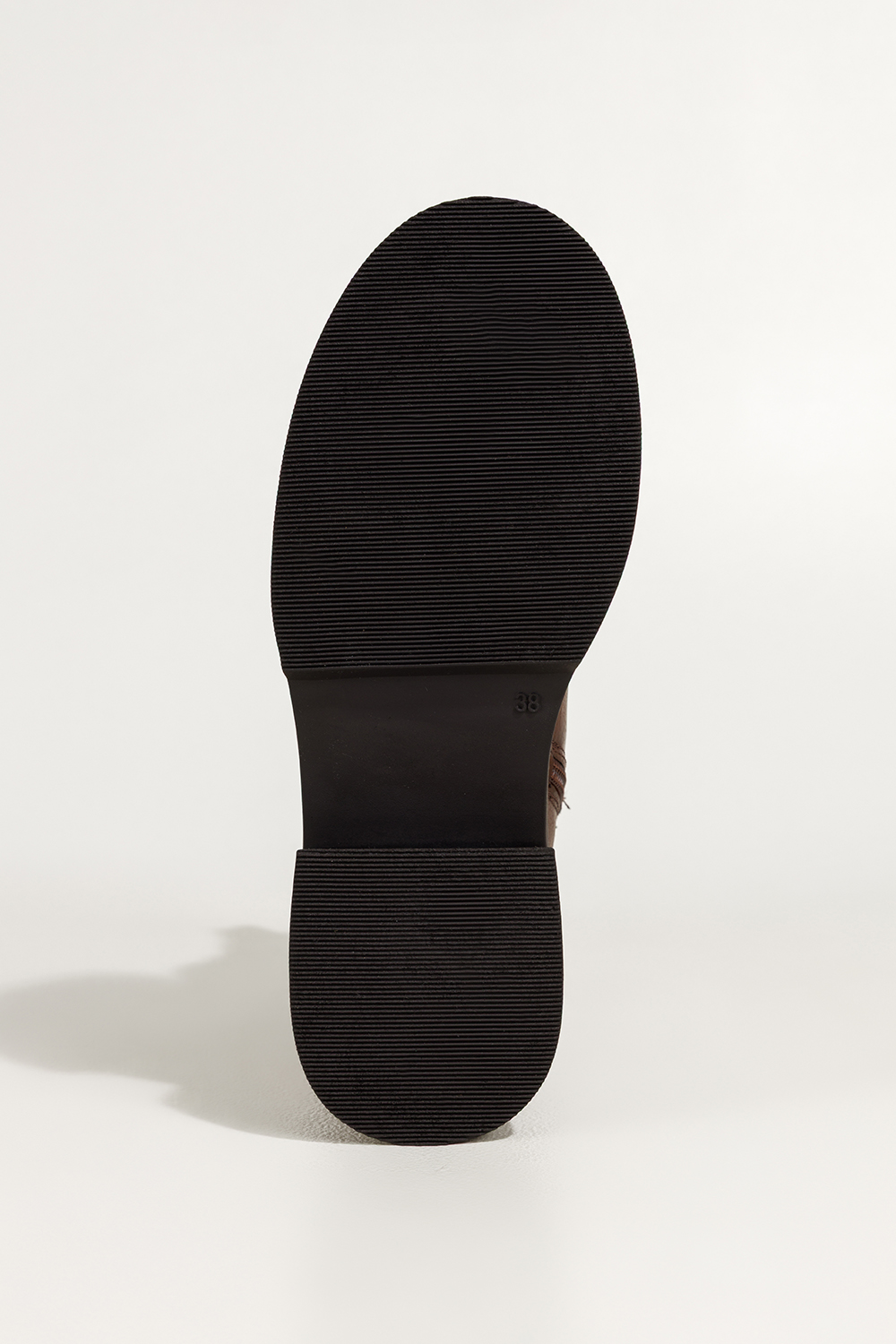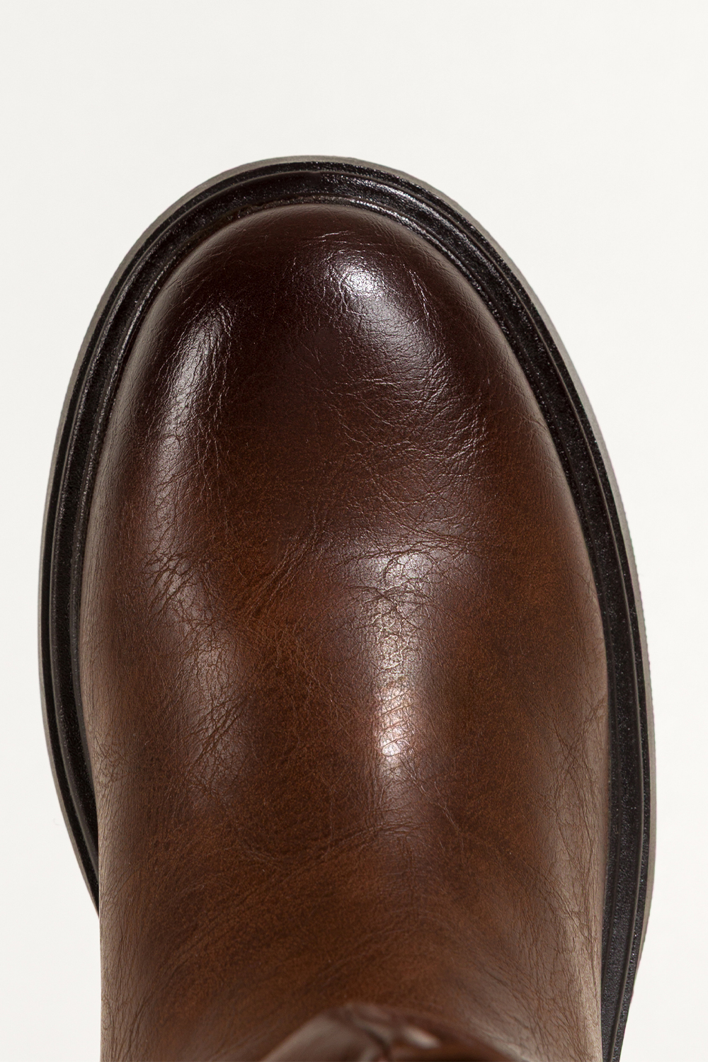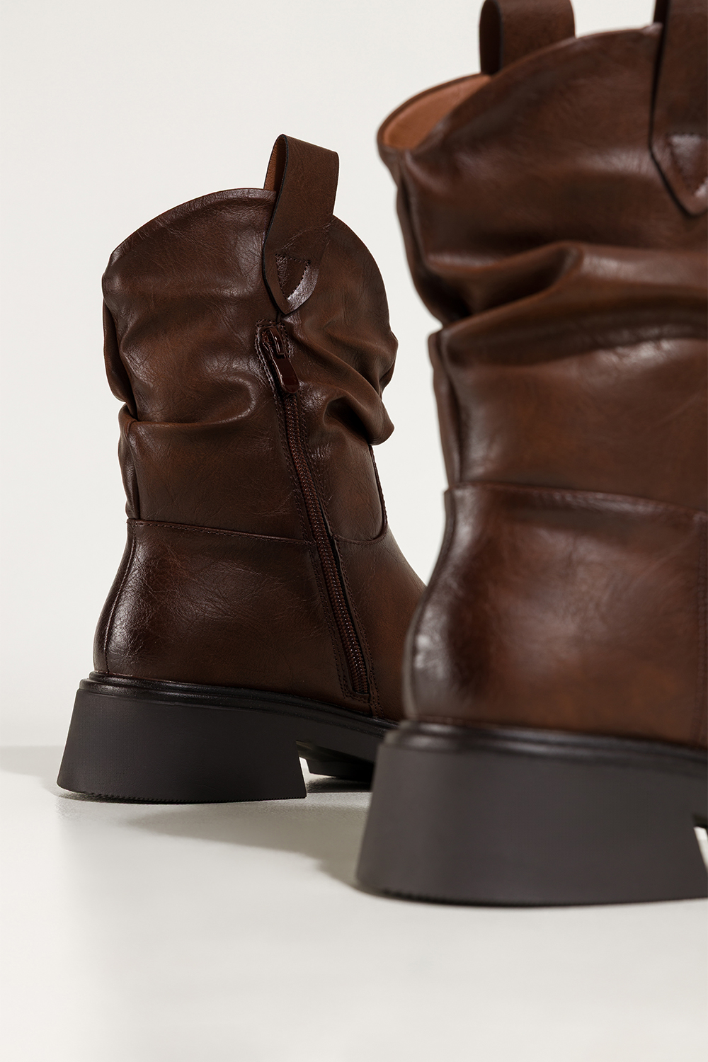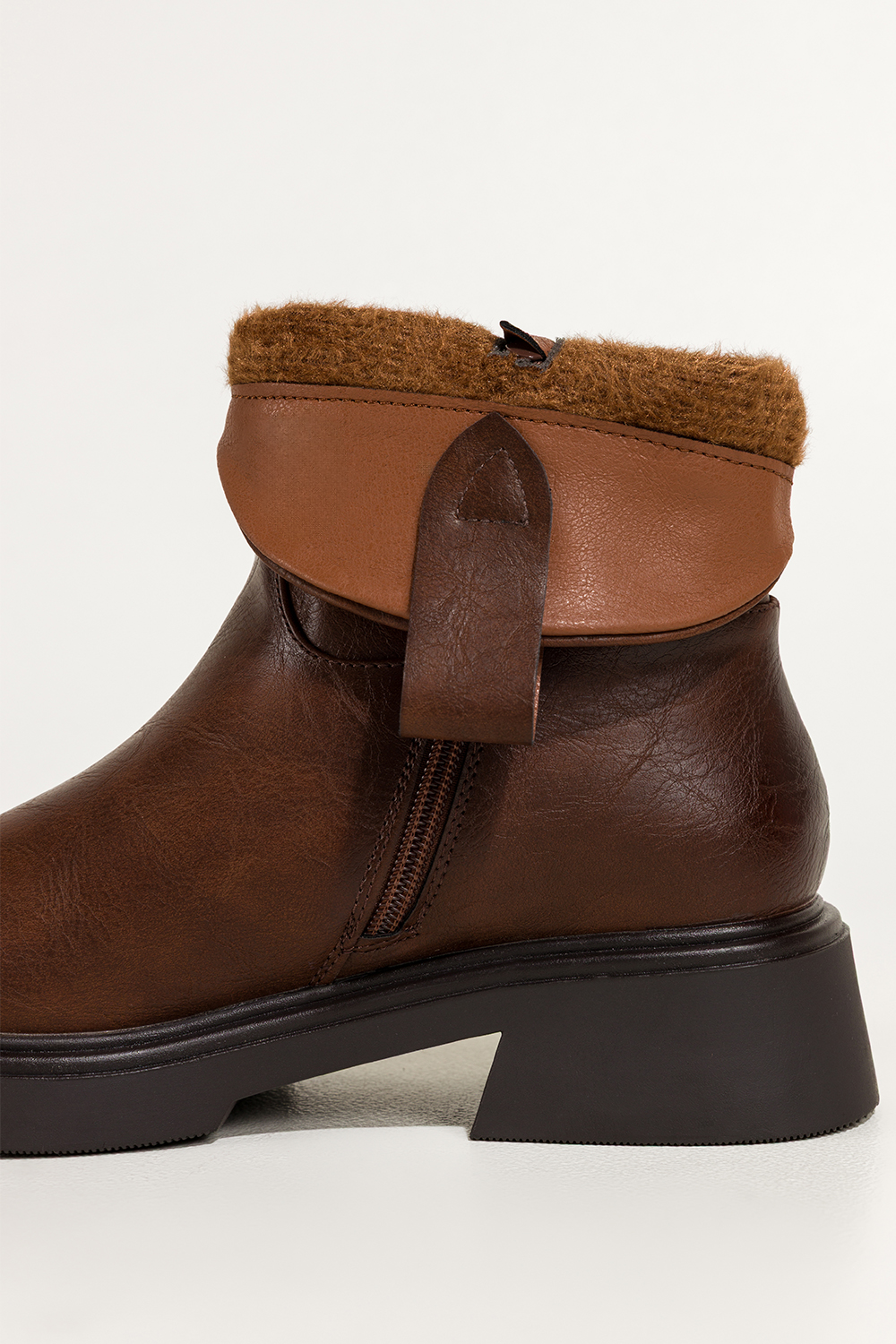 Czekoladowe botki skórzane damskie bieżnikowany obcas i platforma czarna ozdoba zamek na przodzie P
