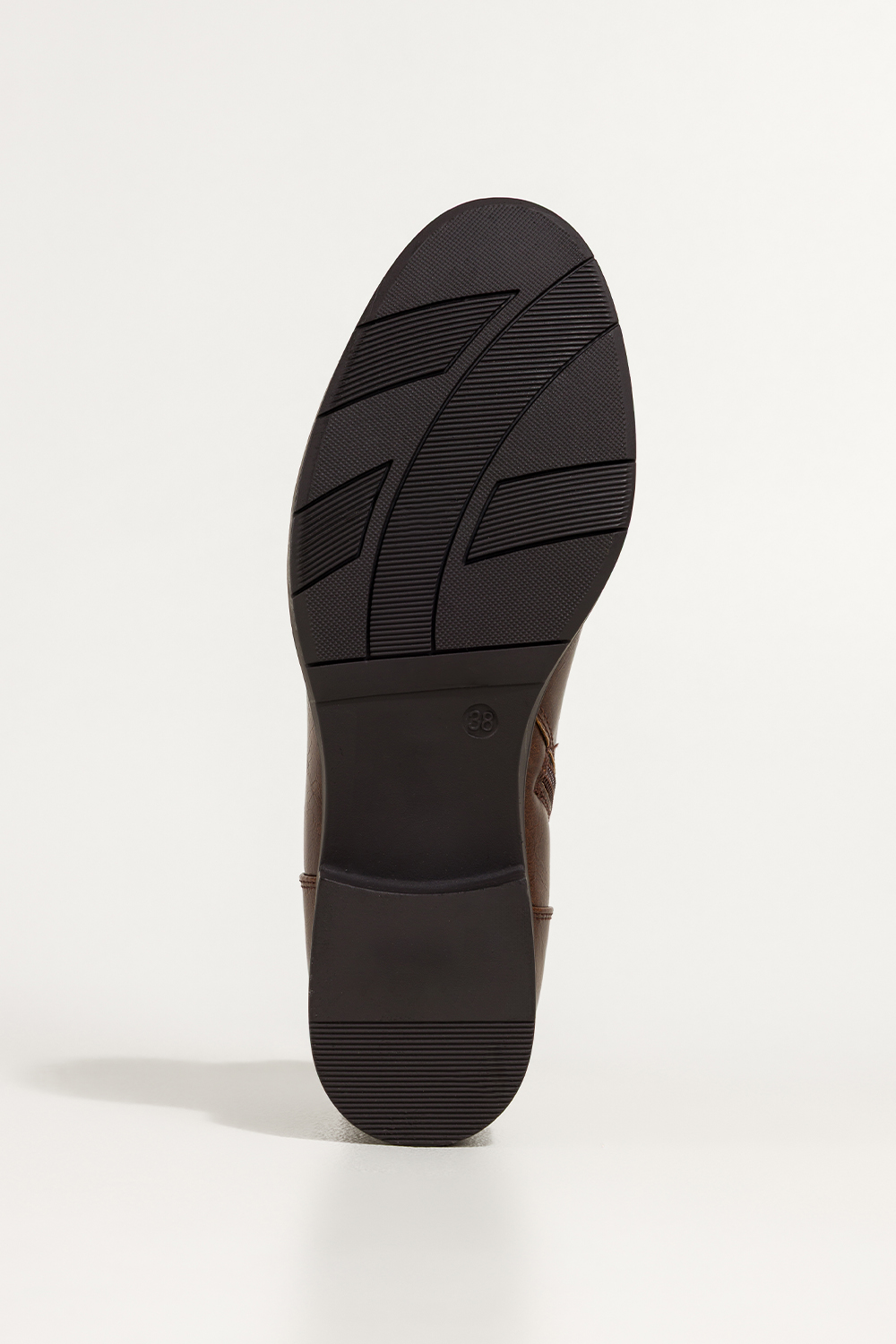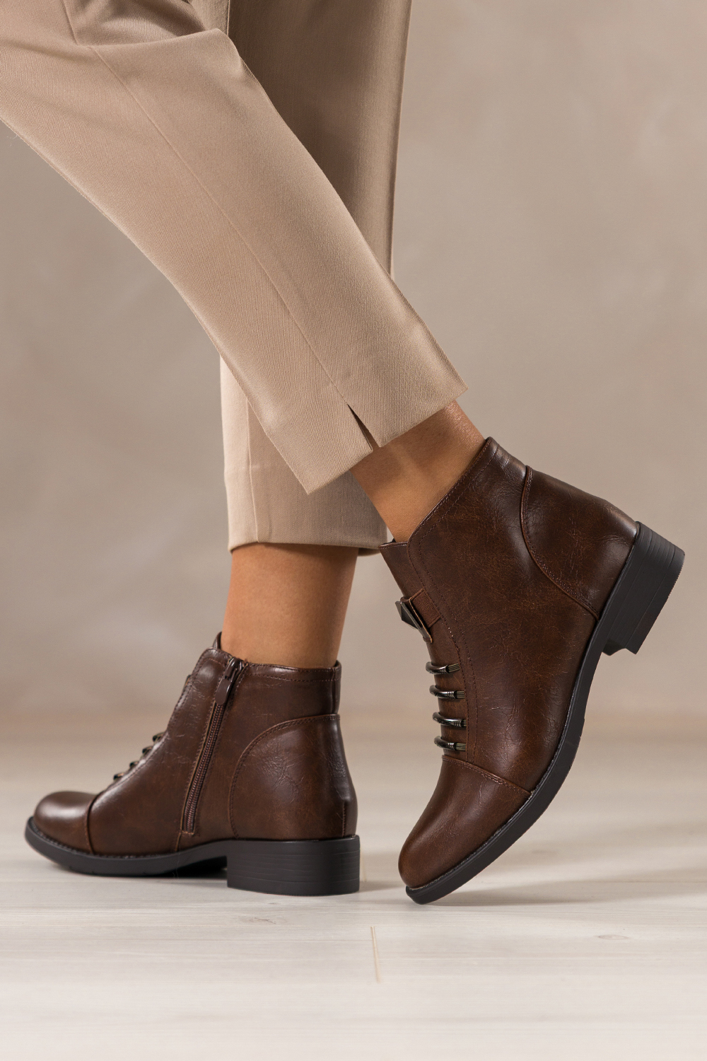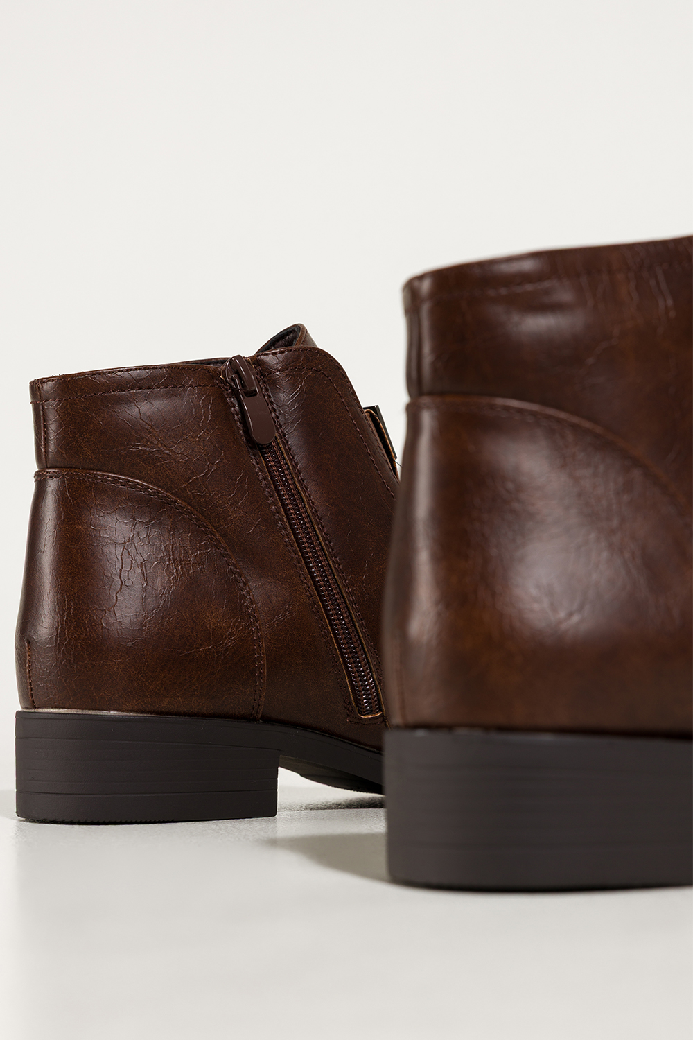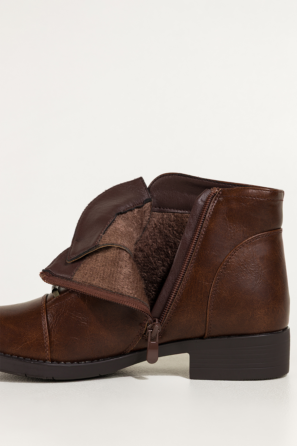 Brązowe botki damskie na szerokim niskim klocku ze stalowymi ozdobami Carla model Y-6-8636, to doskonały wybór dla kobiet ceniących ponadczasową elegancję. Wykonane z wysokogatunkowej skóry ekologicznej, zachwycają miękkością, solidnym wykończeniem i ocieplanym wnętrzem z futerkiem, które gwarantuje ciepło nawet w najchłodniejsze dni. Zaokrąglony nosek oraz wygodna, płaska podeszwa z niskim klockiem zapewniają stabilność i wygodę przez cały dzień. Brązowy kolor świetnie komponuje się z jesiennymi i zimowymi stylizacjami, a stalowe ozdoby i elastyczna wstawka z przodu nadają botkom unikalny, lekko rockowy charakter. Zamek błyskawiczny ułatwia zakładanie, a przemyślany krój doskonale dopasowuje się do nogi, dodając jej smukłości. To idealny wybór zarówno do spodni, jak i sukienek, doskonale sprawdzający się w pracy, na spacerze czy wieczornym spotkaniu. Dzięki uniwersalnemu fasonowi, świetnie odnajdują się w różnych stylizacjach i okazjach, od casualowych po bardziej eleganckie. Ocieplenie sprawia, że idealnie nadają się na sezon jesienno-zimowy, a ich stonowany, ale wyrazisty design przyciąga uwagę i podkreśla indywidualny styl. Ich przemyślana konstrukcja gwarantuje komfort użytkowania przez wiele godzin. Cechy wyróżniające Wysokiej jakości skóra ekologiczna Wnętrze ocieplone miękkim futerkiem Stabilny, szeroki, niski obcas klocek Efektowne stalowe ozdoby i elastyczna wstawka Zaokrąglony nosek i wygodna konstrukcja Łatwe zakładanie dzięki bocznemu zamkowi Połącz styl, jakość i wygodę, wybierz botki od Casu i ciesz się wyjątkowym komfortem każdego dnia. Sprawdź dostępność rozmiarów i zamów już dziś, zanim znikną!