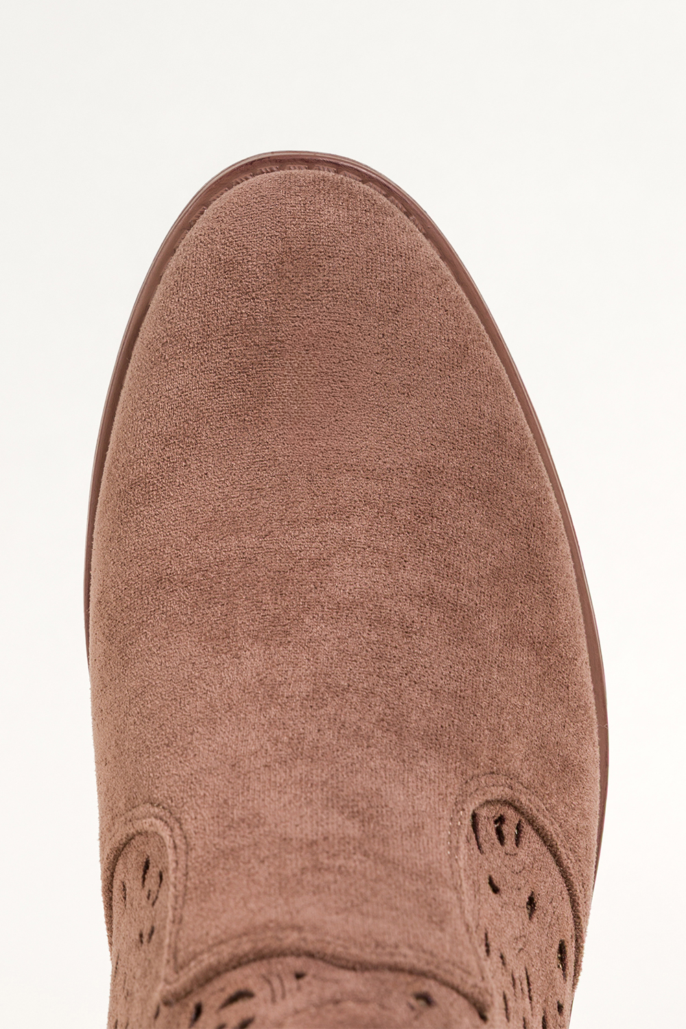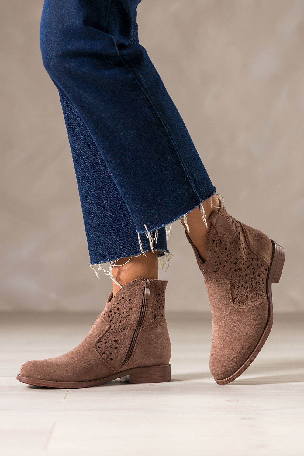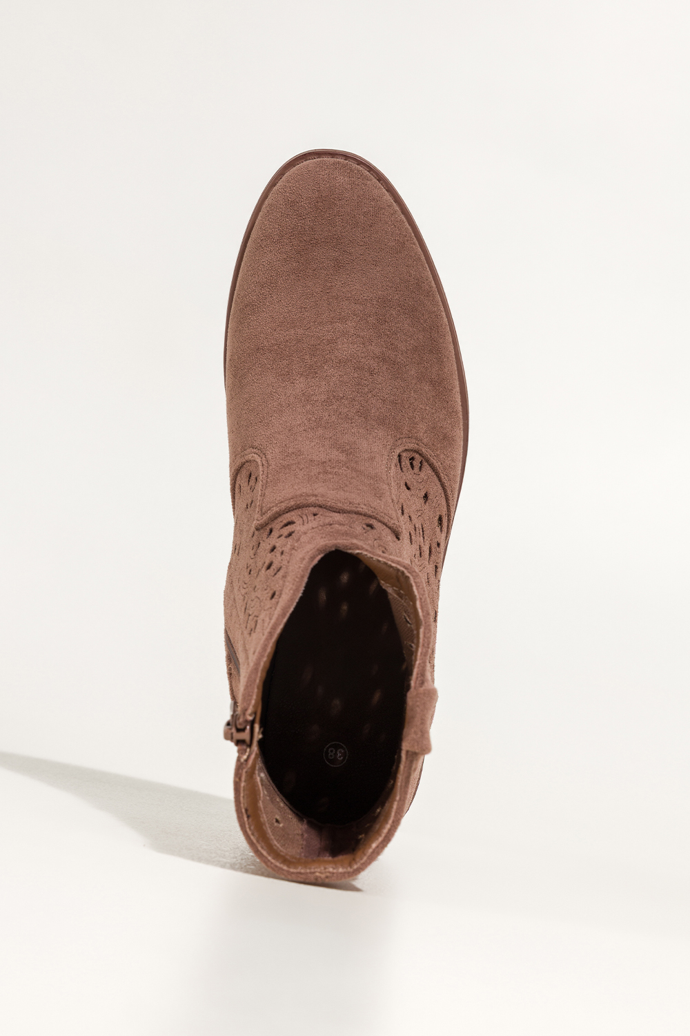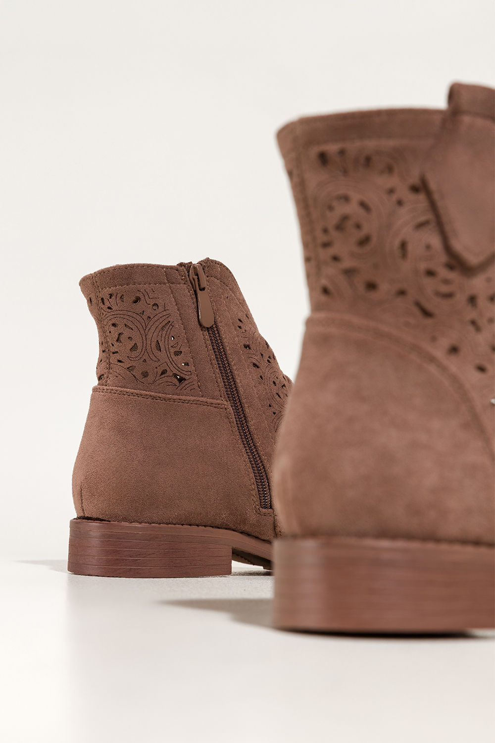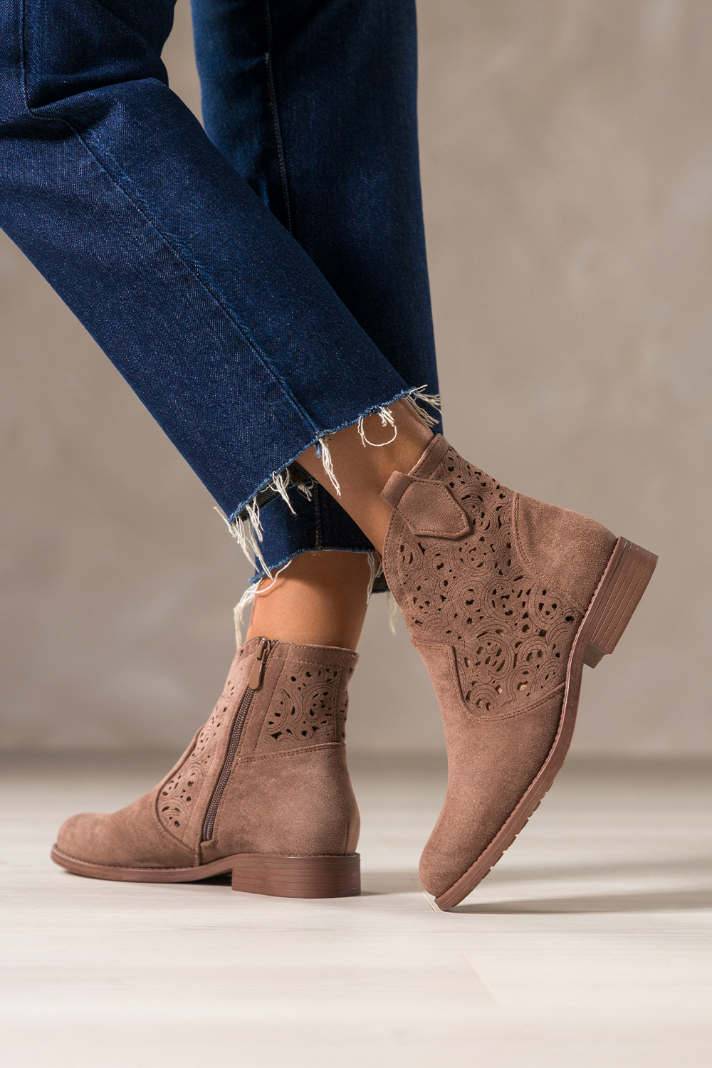 Brązowe botki damskie płaskie ażurowa cholewka Carla S7476-6