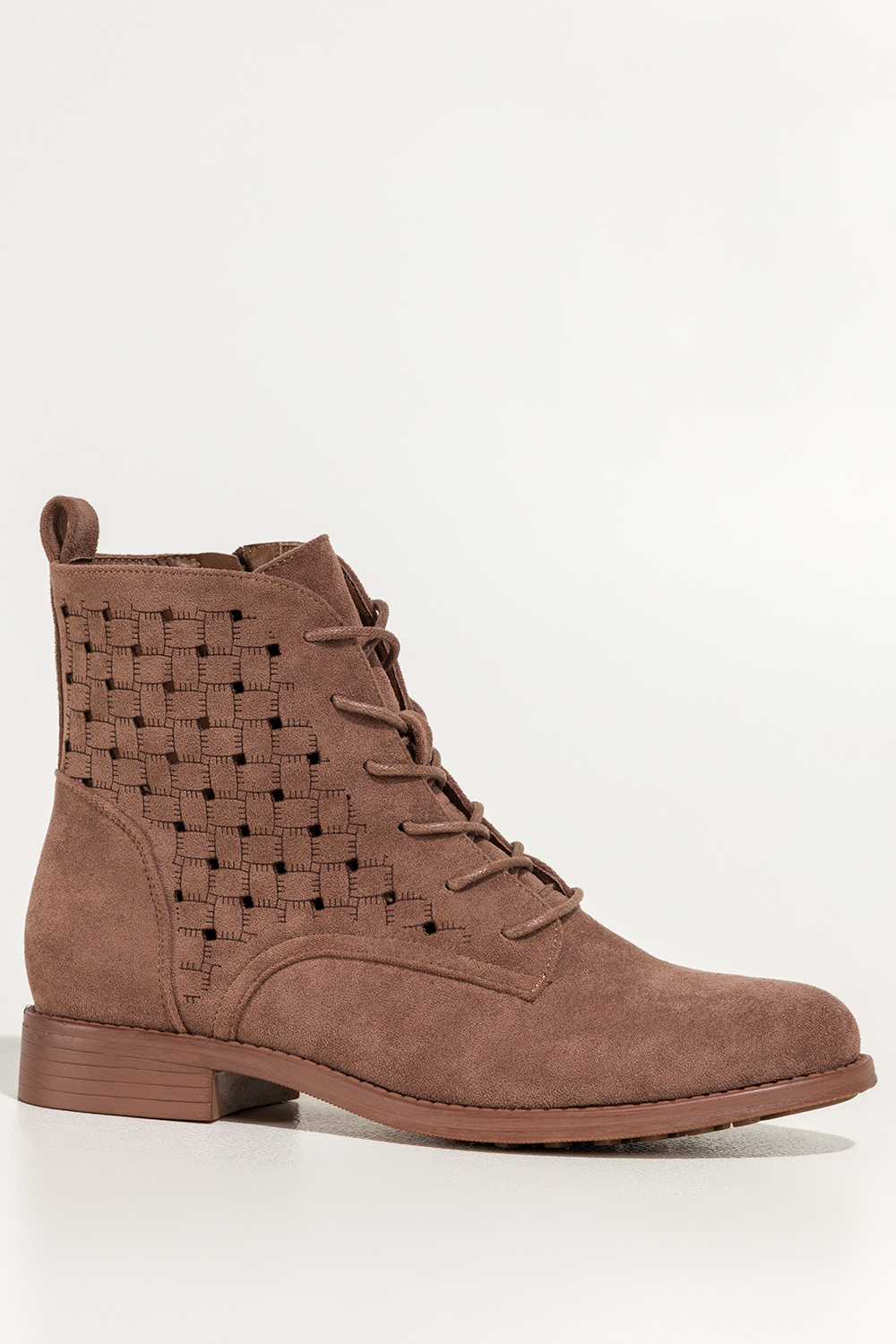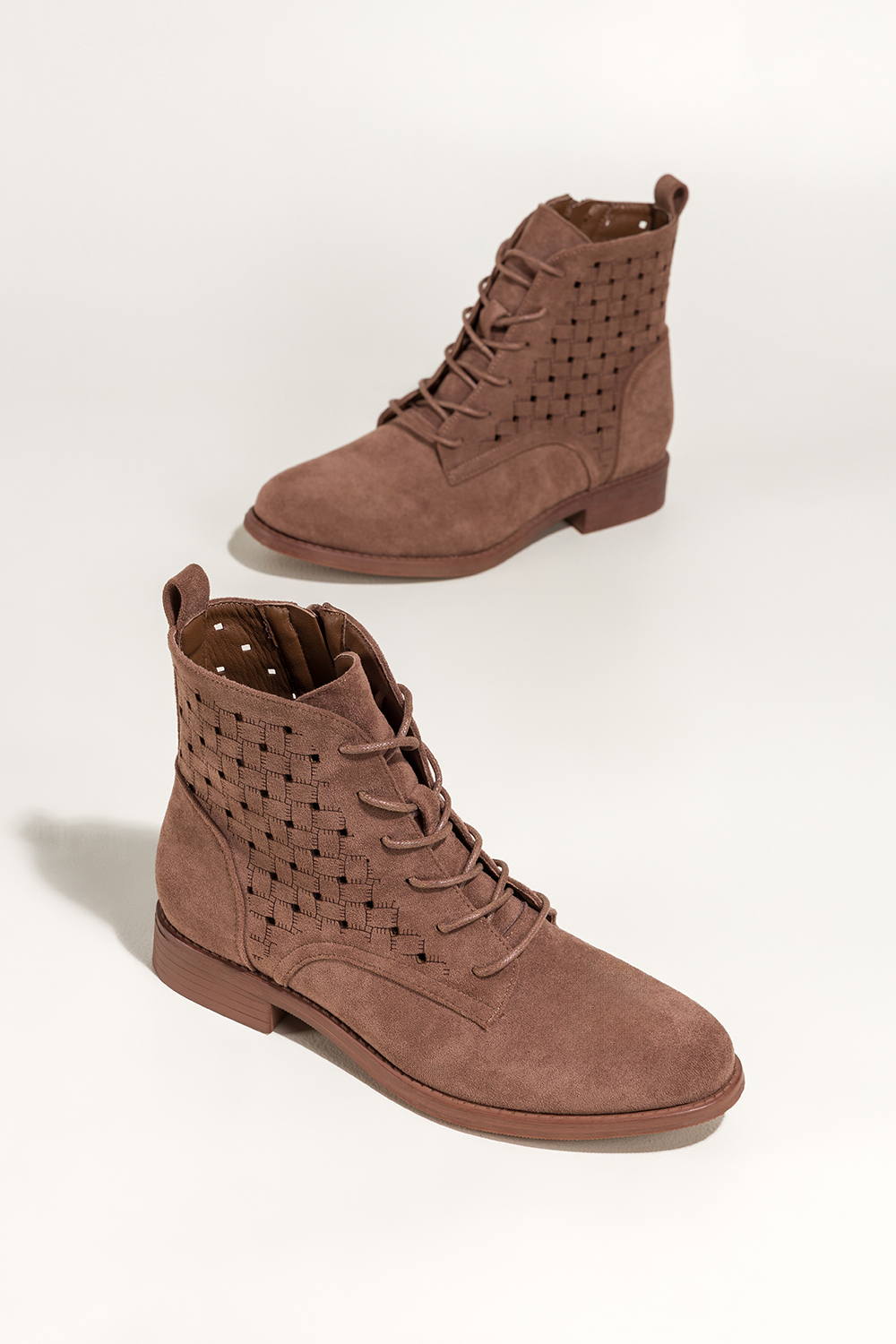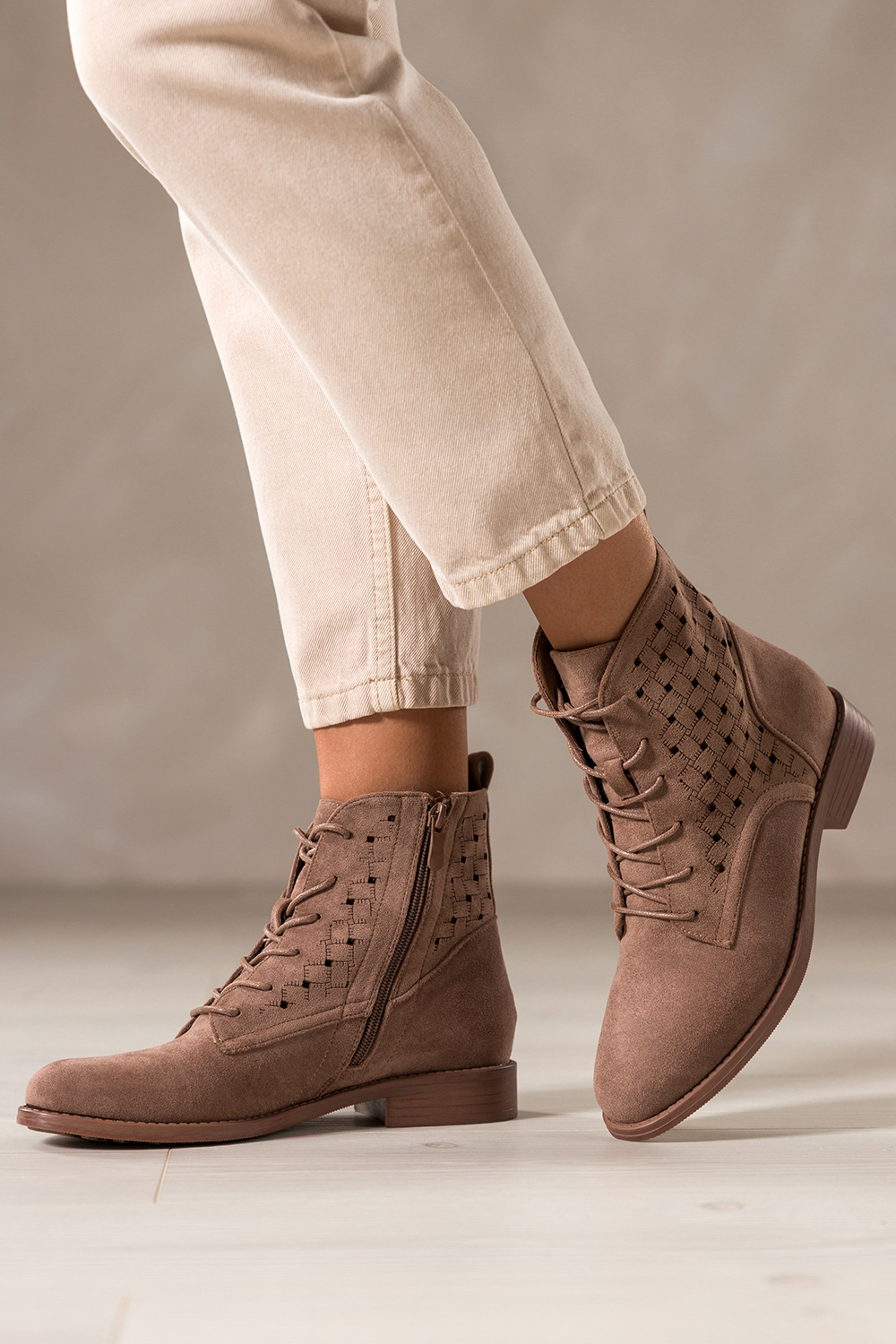 Brązowe botki damskie płaskie ażurowa cholewka sznurowane Carla S7474-6
