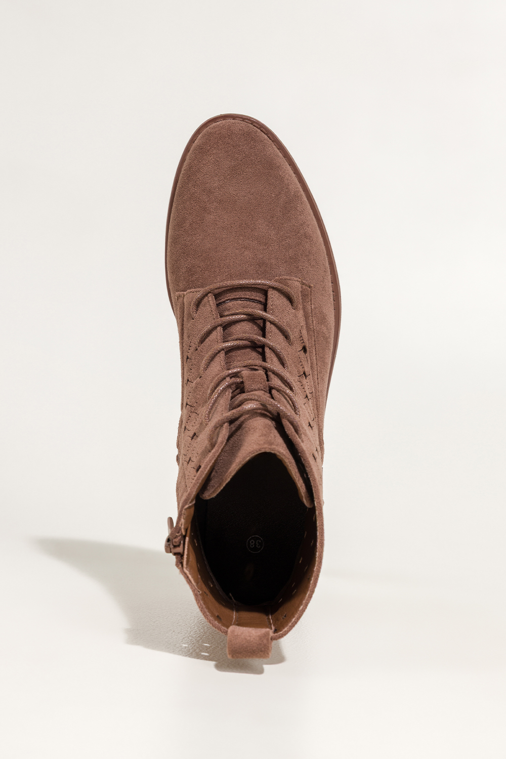 Brązowe botki damskie płaskie na cholewce ozdobny zamek sznurowane Casu 7080-6