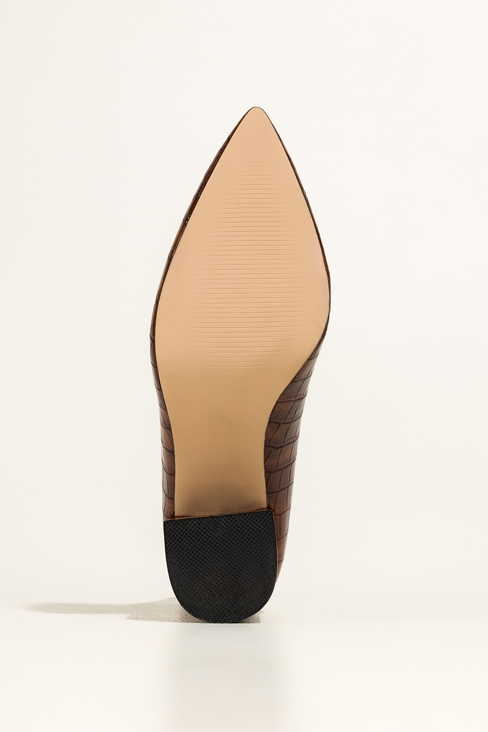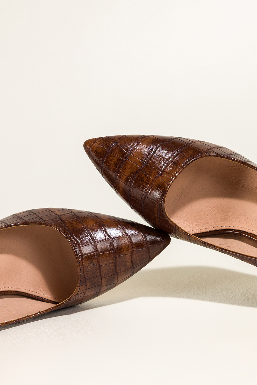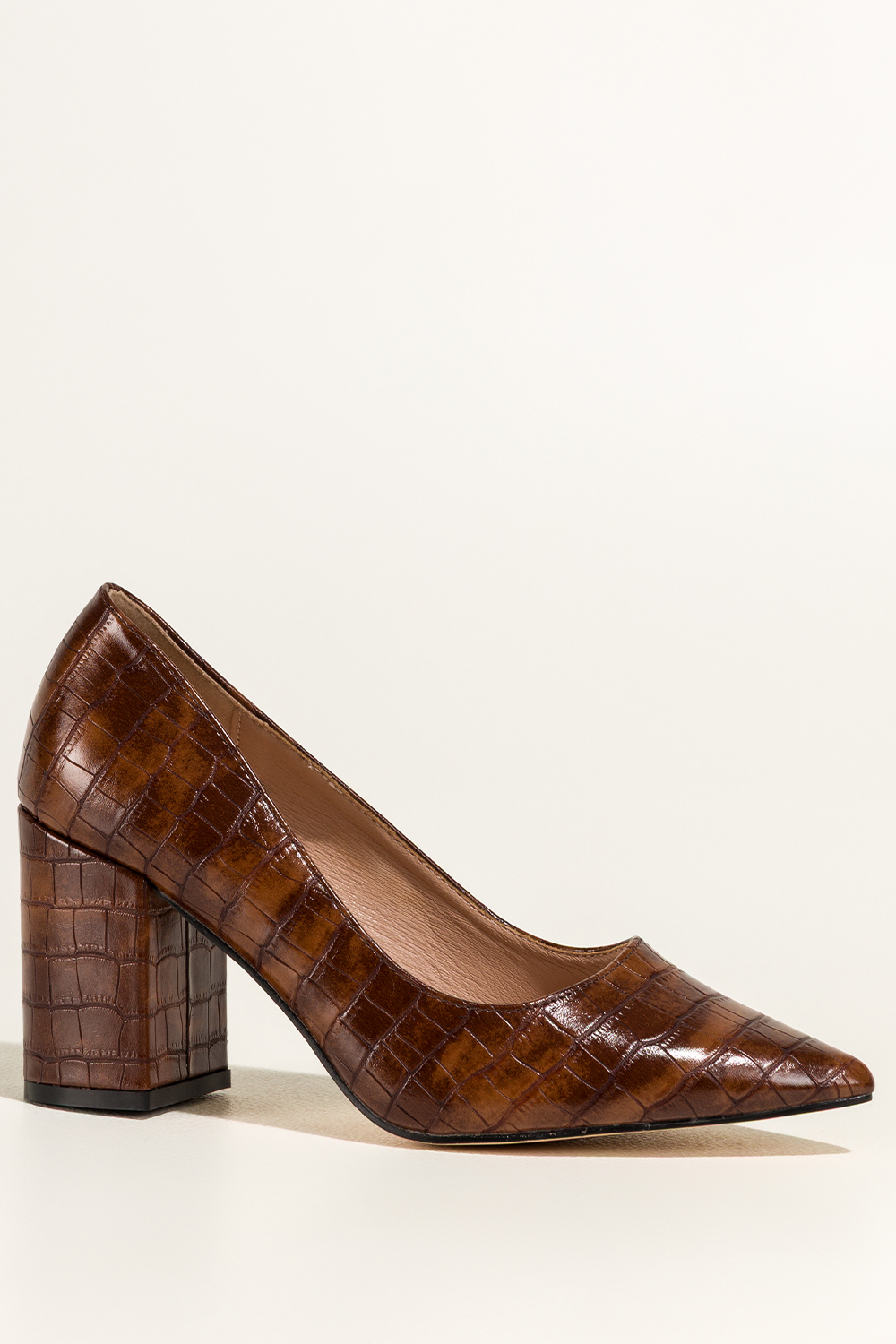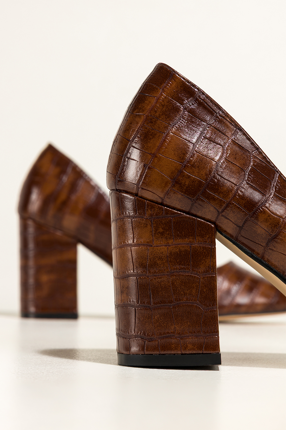 Brązowe czółenka damskie na słupku krokodyli wzór skórzana wkładka Casu D212X4-BR