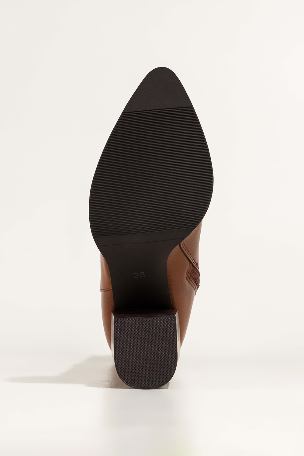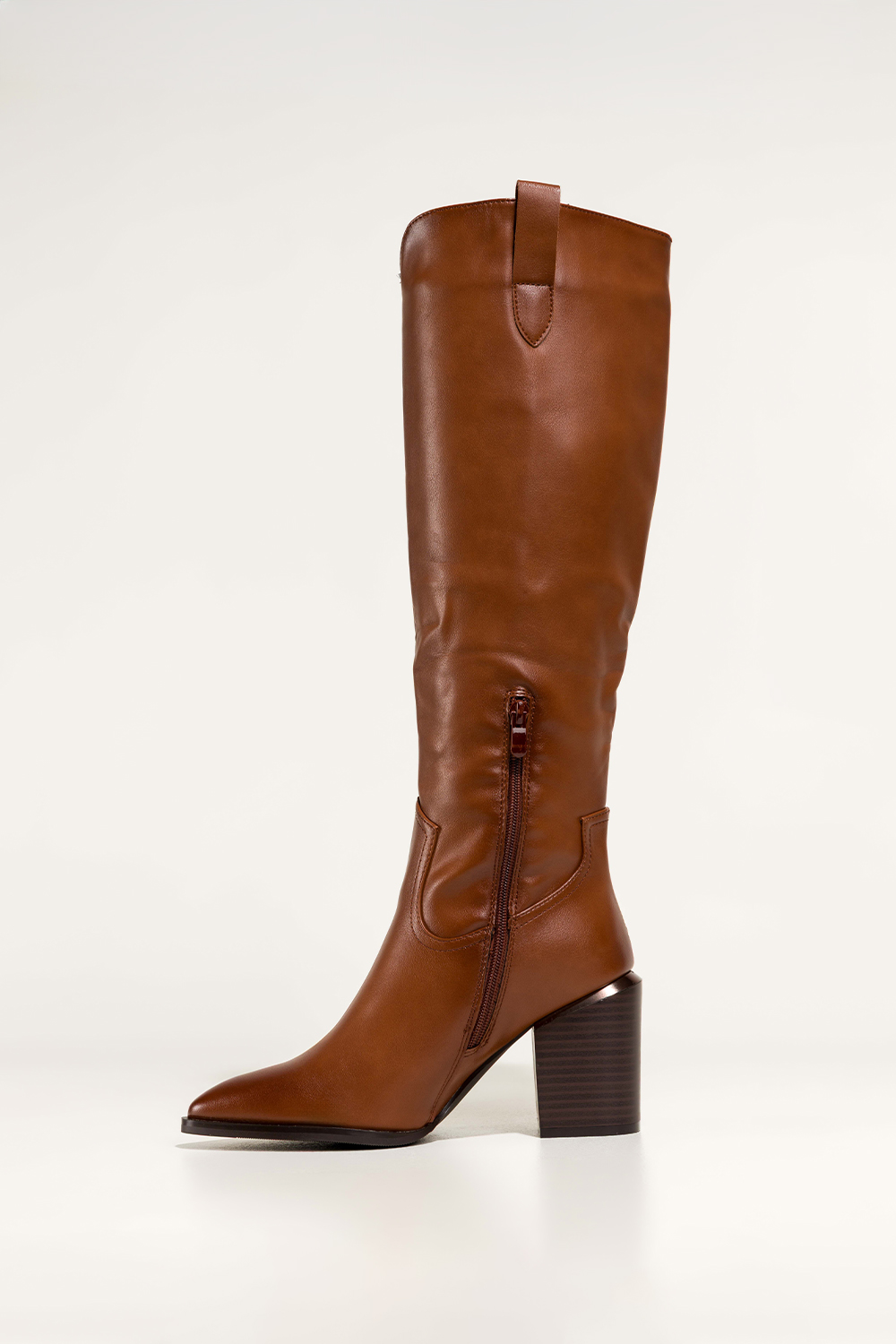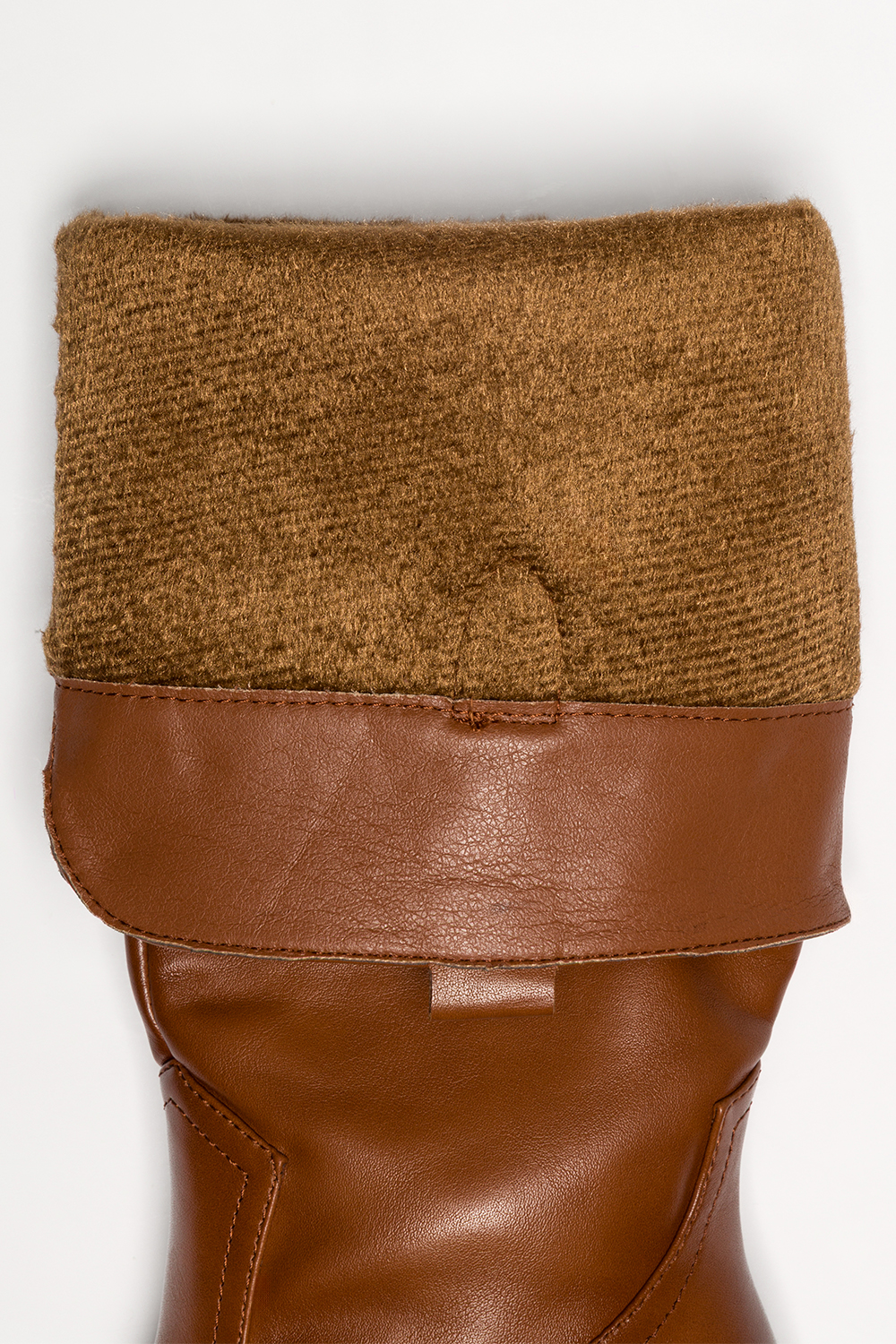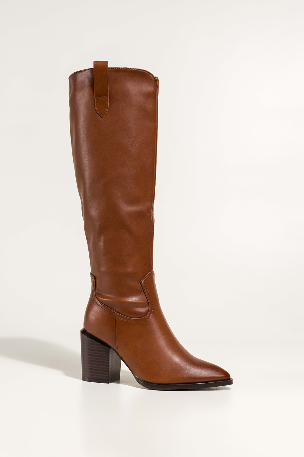 Camelowe kozaki damskie na ozdobnym słupku wycięta cholewka Casu D766-82