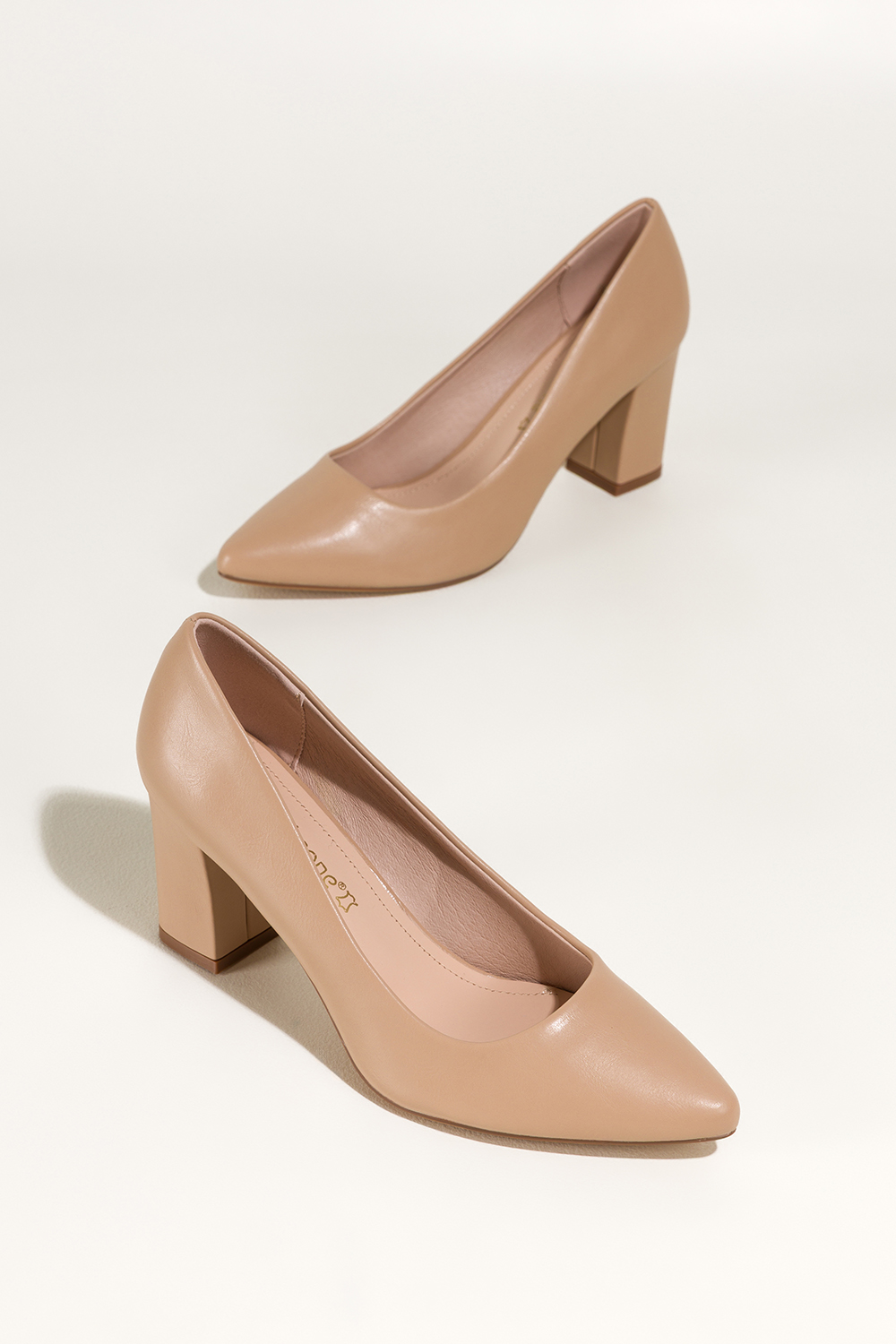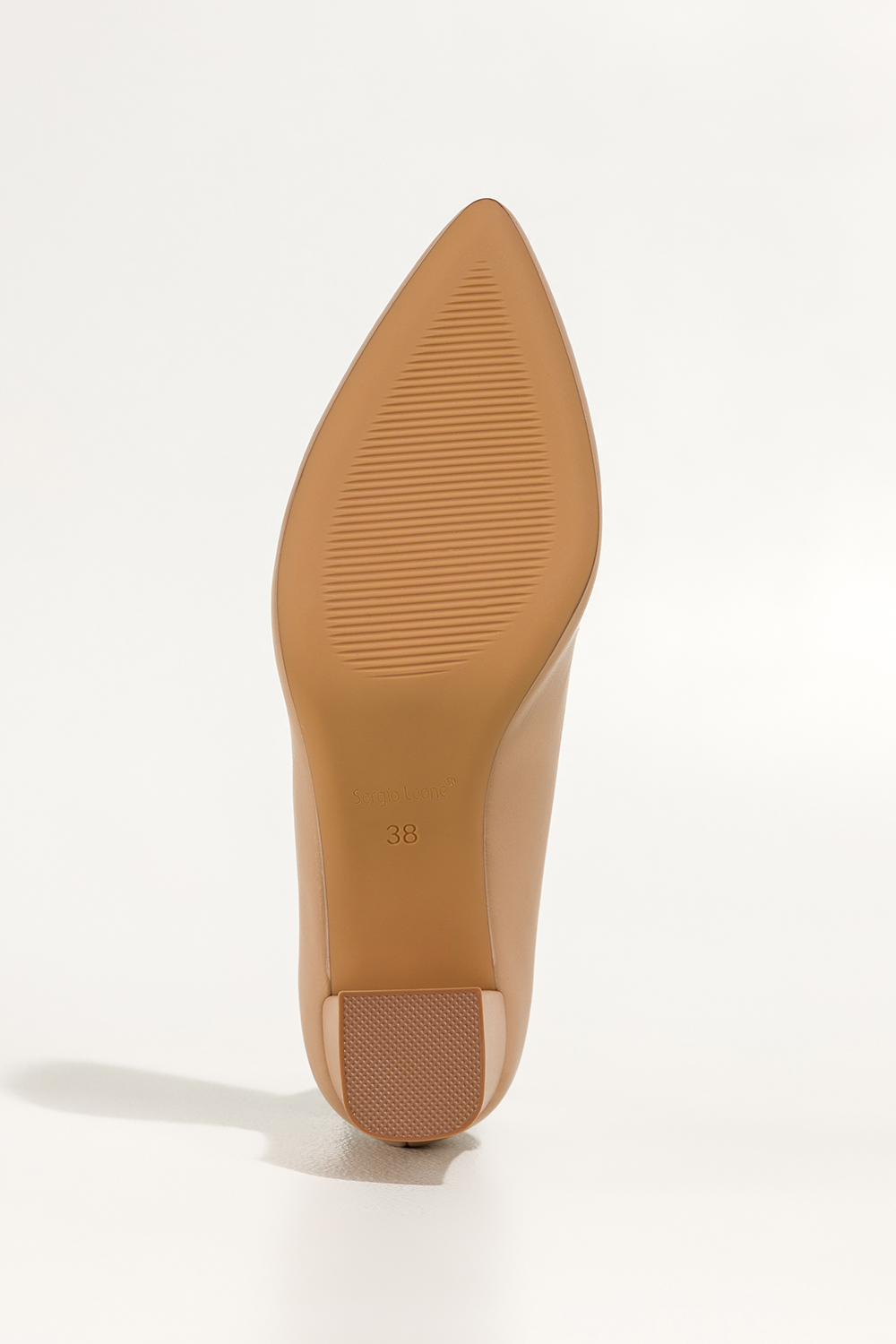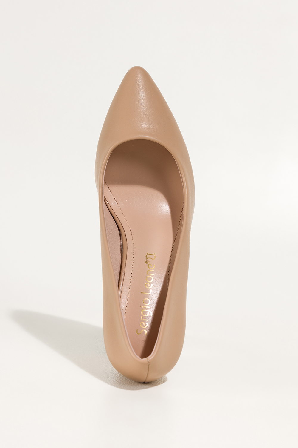Ciemnobeżowe czółenka damskie Sergio Leone na słupku skórzana wkładka KY585