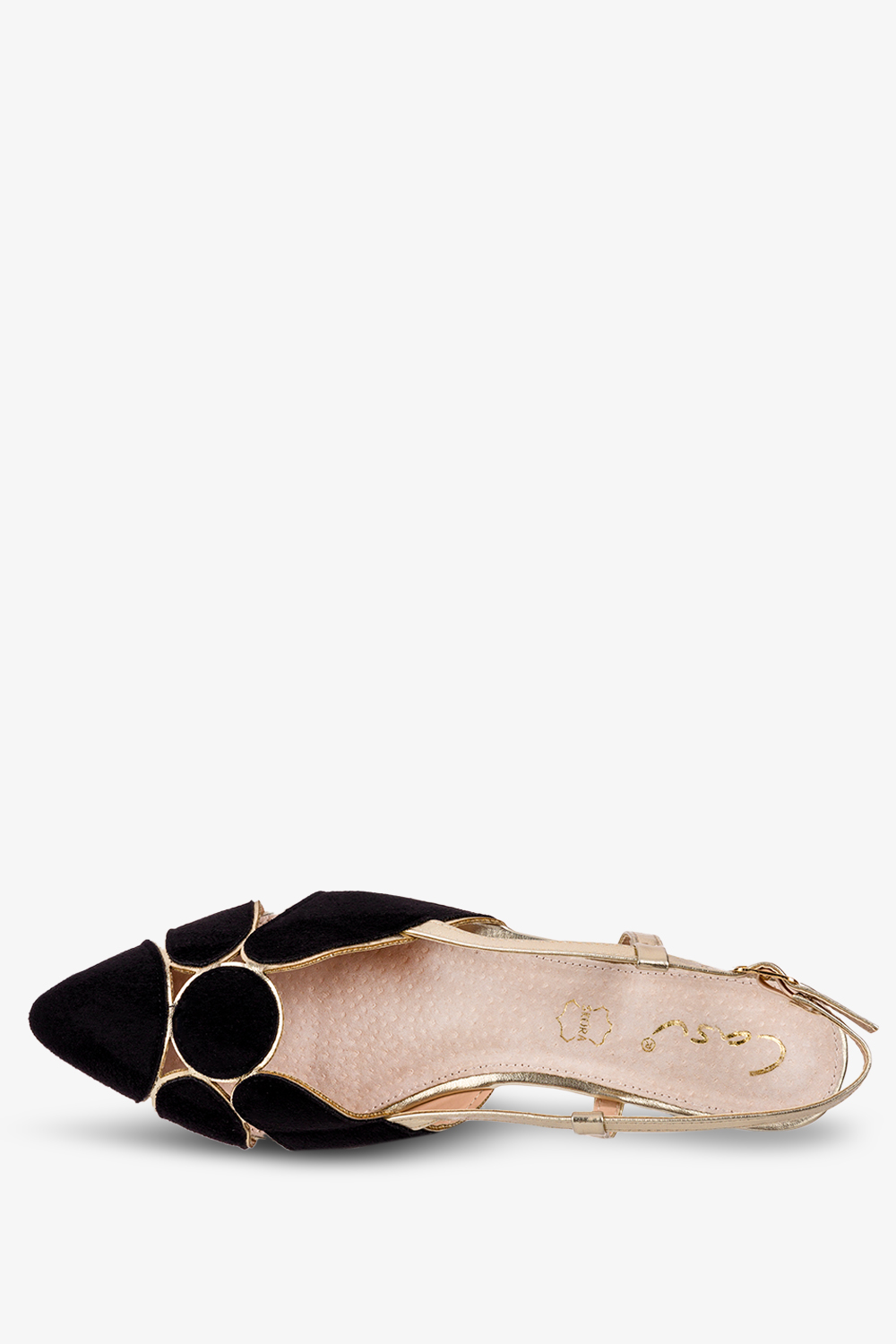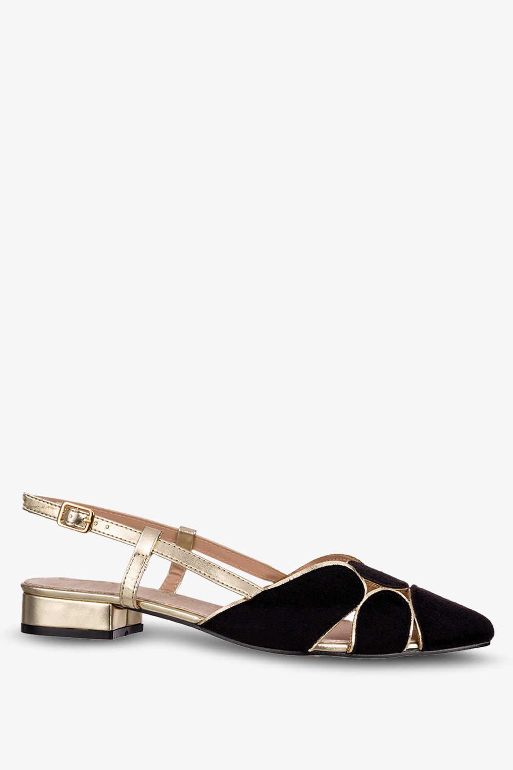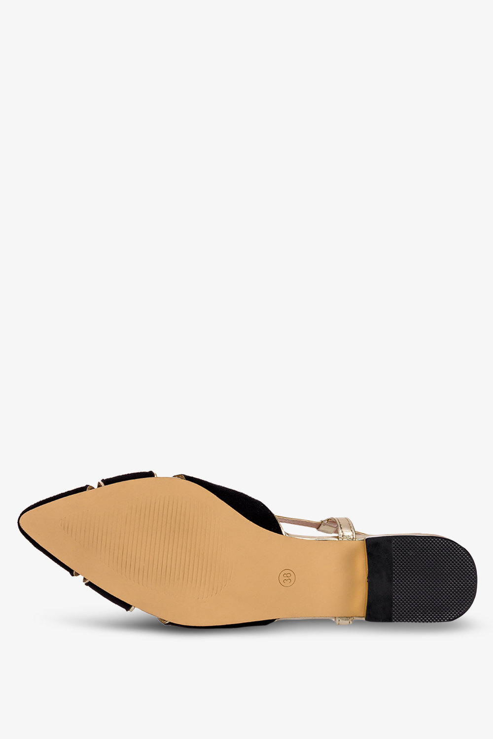 Czarne baleriny Casu z odkrytą piętą skórzana wkładka D21X9/B
