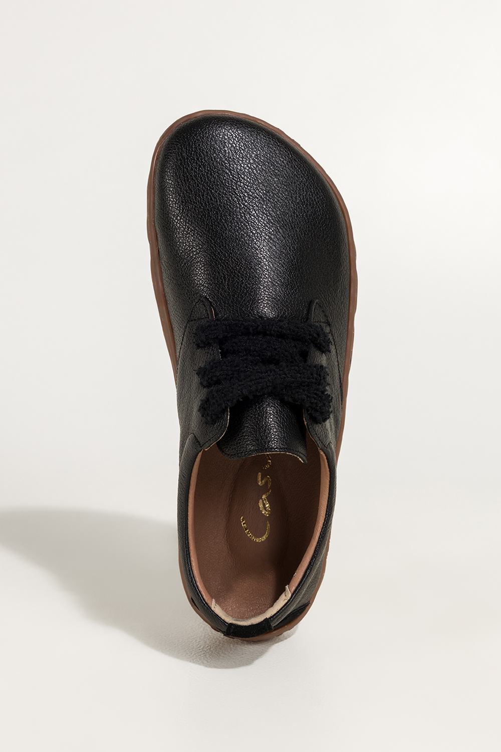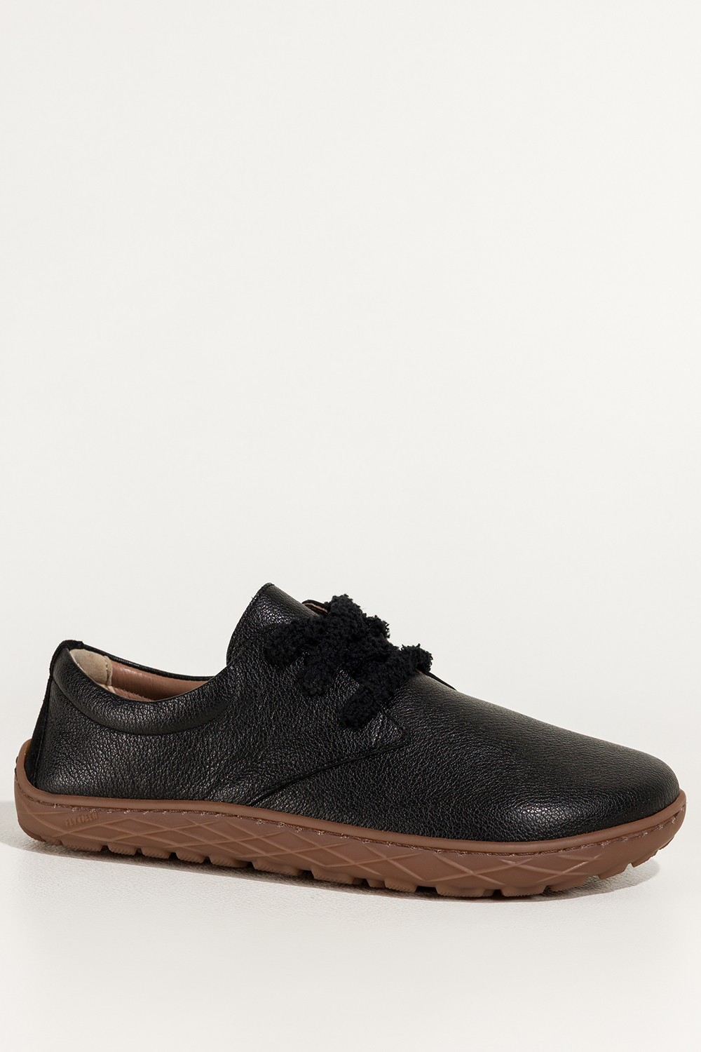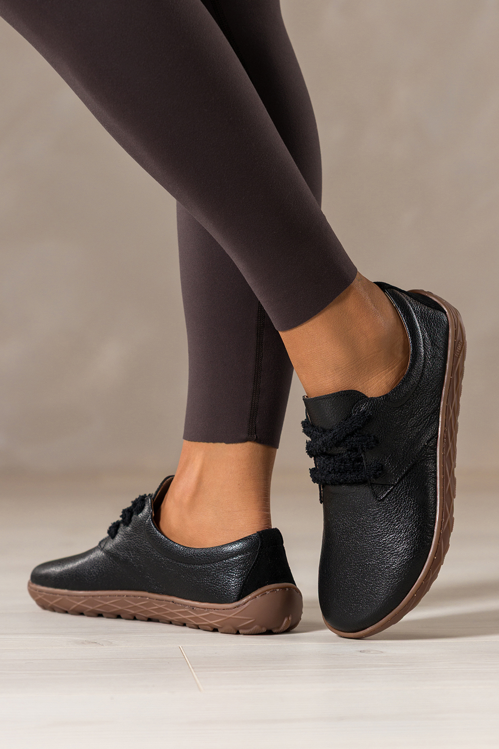 Czarne buty barefoot skórzane damskie szerokie na elastycznej płaskiej podeszwie puszyste sznurówki