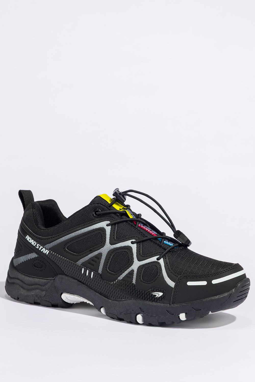 Czarne buty sportowe trekkingowe damskie na bieżnikowanej podeszwie z regulowaną elastyczną sznurów