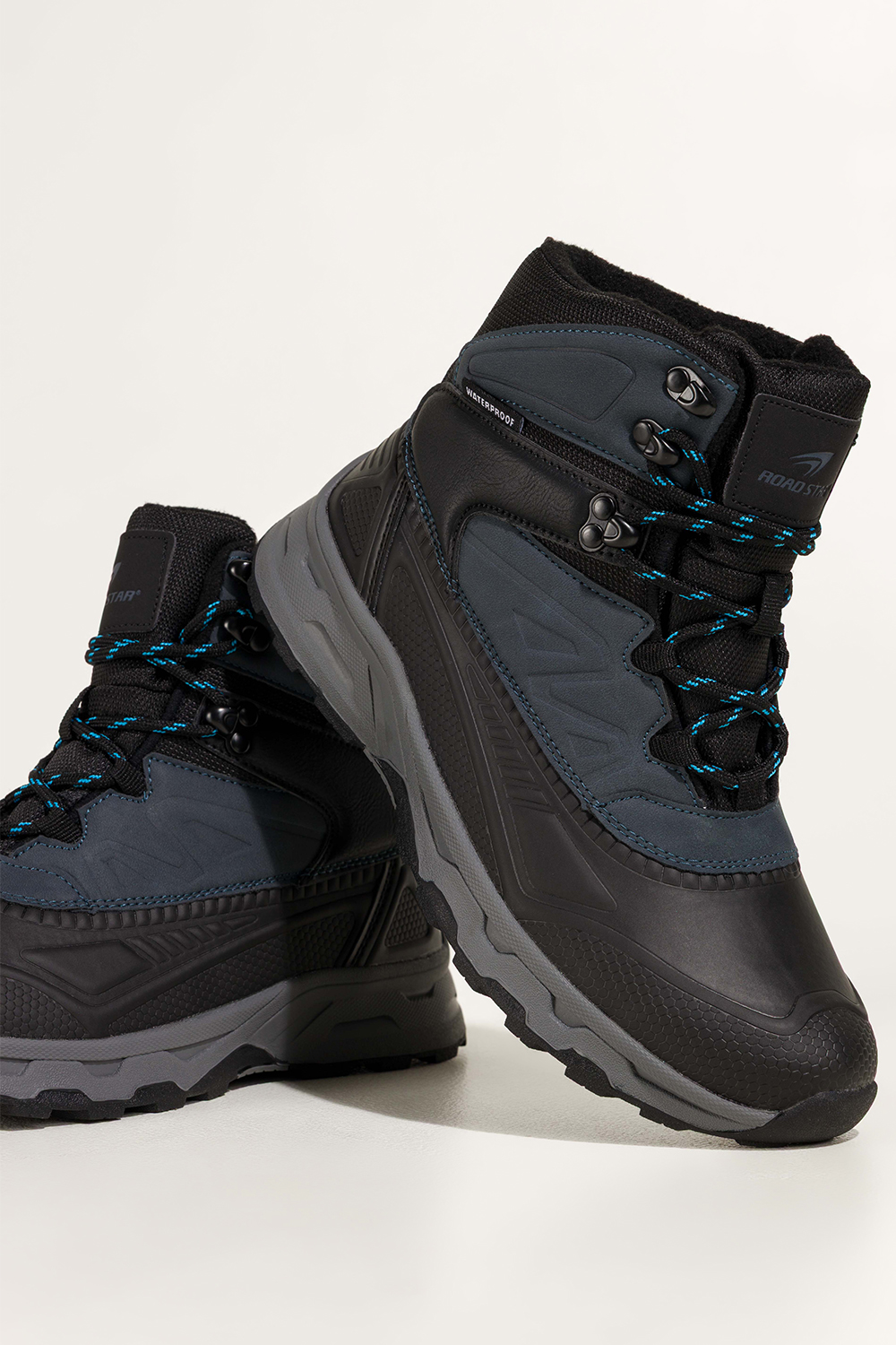 Niebieskie buty trekkingowe damskie buty sportowe softshell na bieżnikowanej podeszwie czarne wstaw