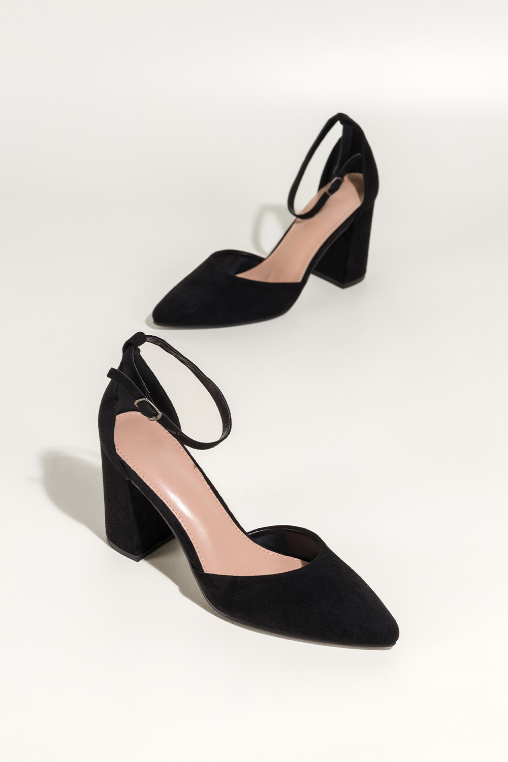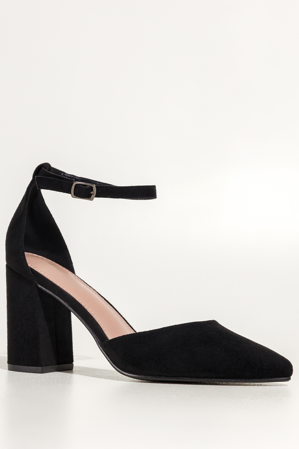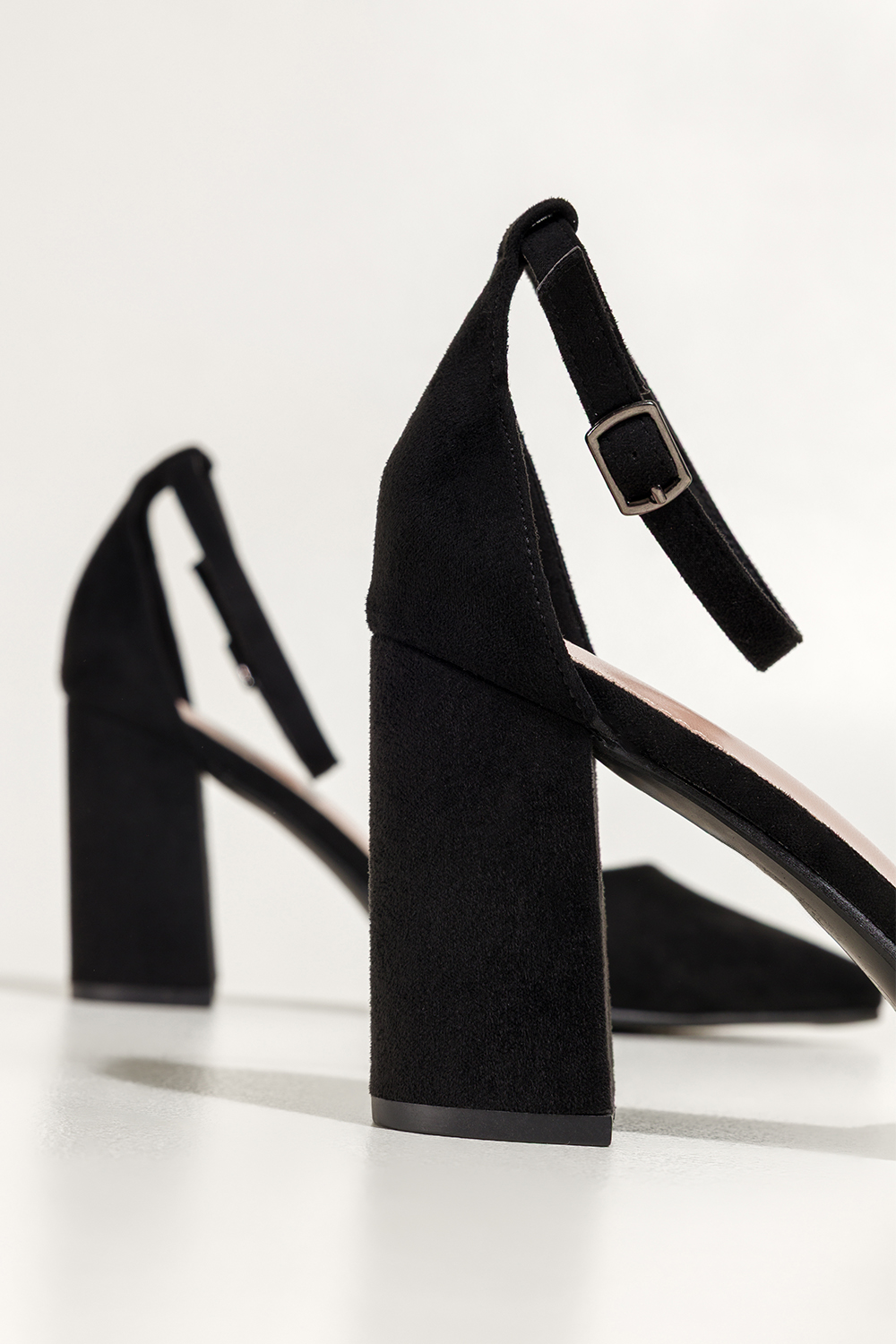 Czarne czółenka damskie na słupku pasek wokół kostki Carla JZ796K