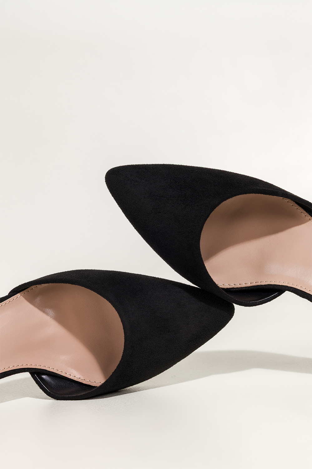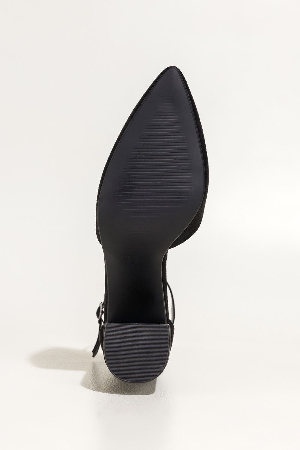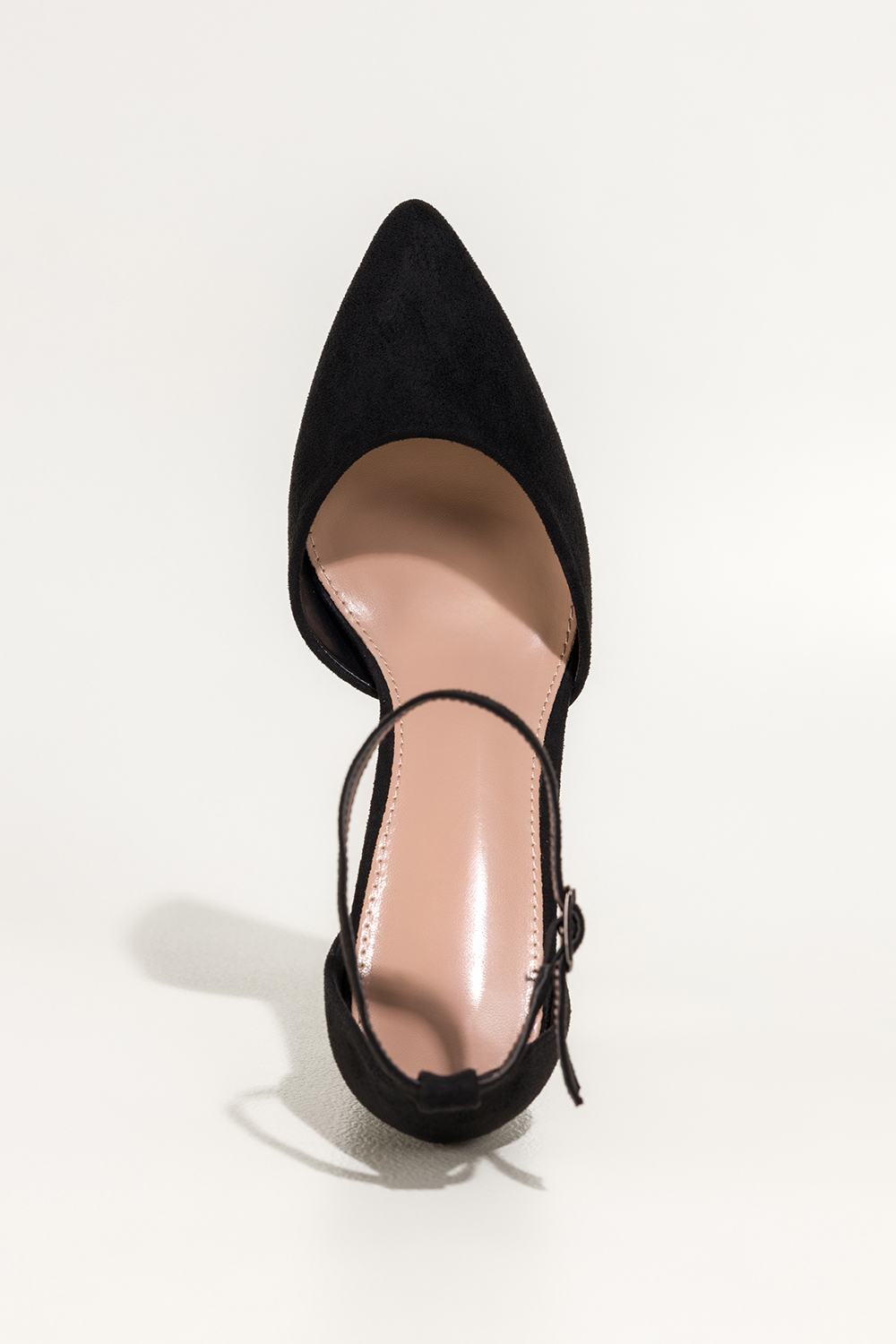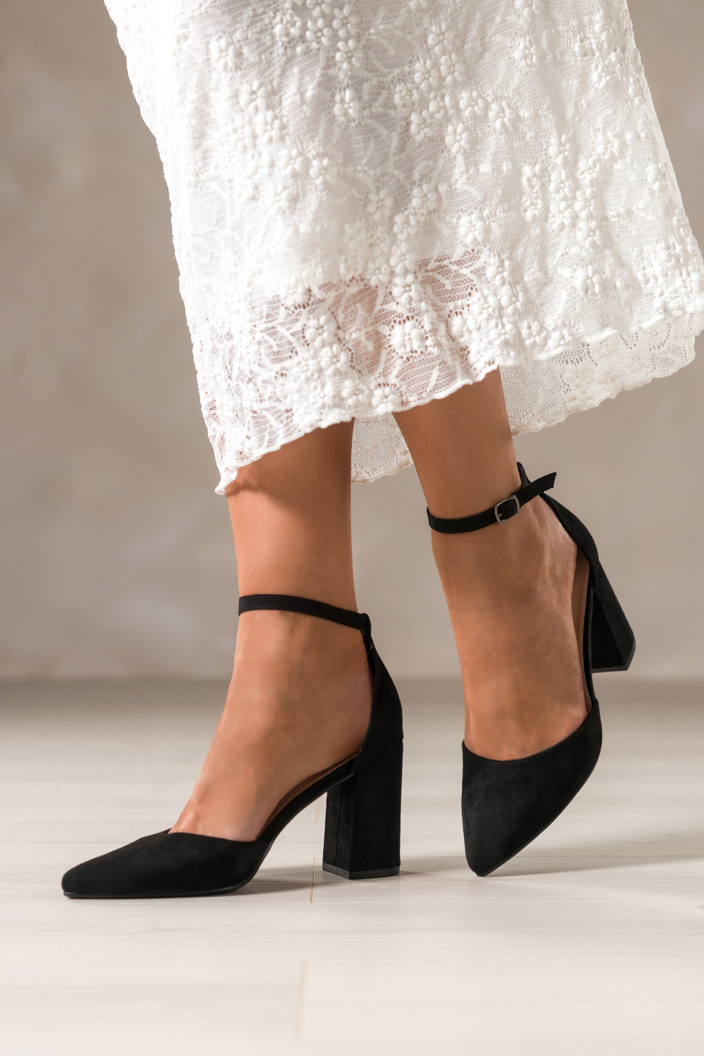 Czarne czółenka damskie na słupku pasek wokół kostki Carla JZ796K