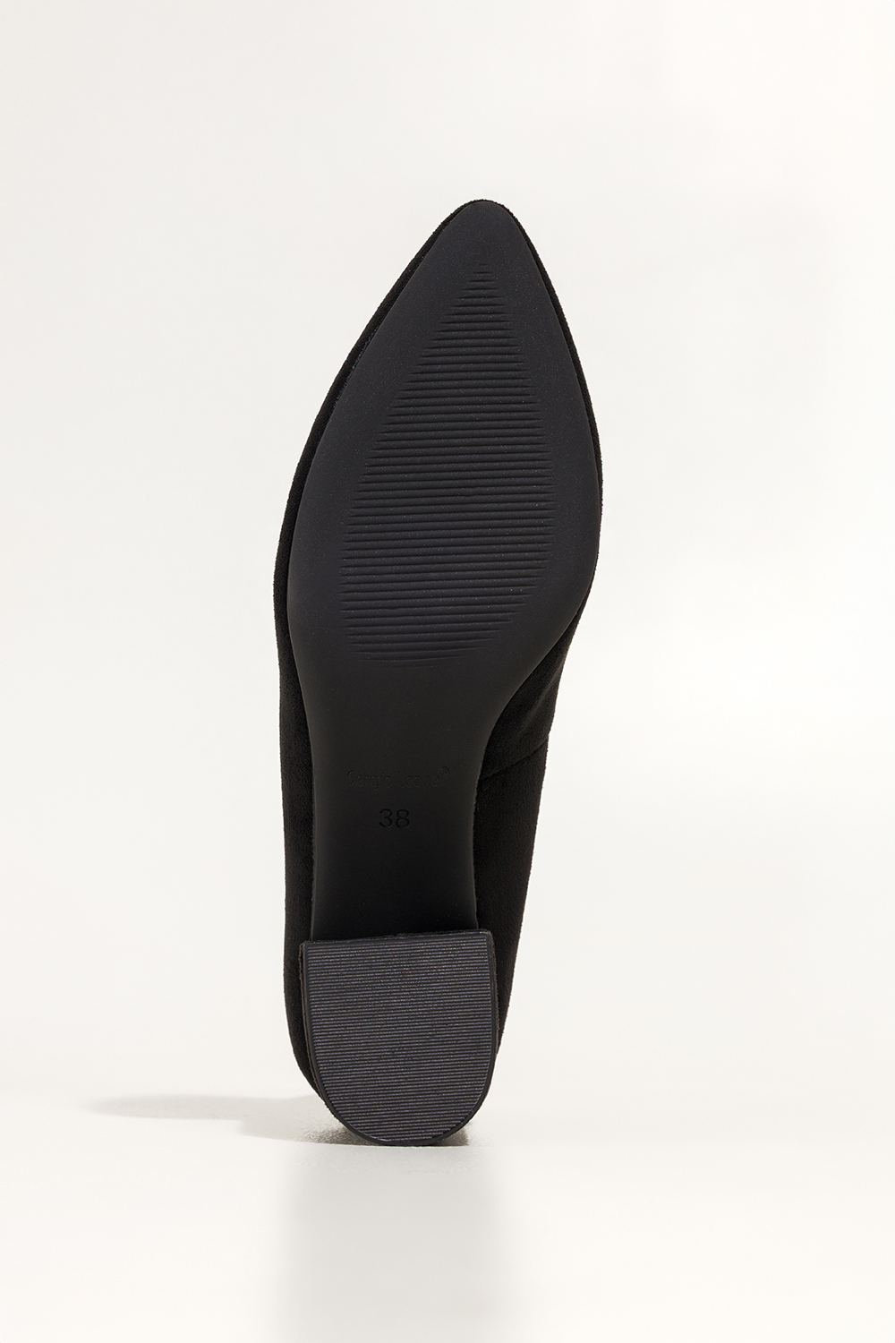 Czarne czółenka damskie Sergio Leone na niskim obcasie skórzana wkładka KY588. Wykonane z wysokogatunkowego zamszu ekologicznego, zachwycają aksamitną fakturą i starannym wykończeniem. Miękka skórzana wkładka dba o wygodę stóp przez cały dzień, nawet przy intensywnym użytkowaniu. Szeroki, stabilny obcas typu słupek o optymalnej wysokości zapewnia doskonałe podparcie i swobodę ruchów, nie rezygnując z kobiecego wyglądu. Dzięki klasycznej, czarnej kolorystyce oraz subtelnemu migdałowemu noskowi, te czółenka idealnie komponują się zarówno z formalnymi stylizacjami do pracy, jak i z sukienkami na wyjątkowe okazje. Wsuwana konstrukcja bez zapięć gwarantuje szybkie zakładanie, a przy tym podkreśla minimalizm i nowoczesny charakter obuwia. To buty, które z łatwością uzupełnią każdą garderobę, nadając jej eleganckiego sznytu i profesjonalnego wykończenia. Idealne dla aktywnych kobiet, które potrzebują komfortowego, a zarazem efektownego obuwia. Ich uniwersalny design sprawia, że sprawdzą się zarówno w biurze, jak i podczas wieczornych wyjść czy rodzinnych uroczystości. Materiał wierzchni nie tylko pięknie się prezentuje, ale także łatwo utrzymać go w czystości, co czyni je praktycznym wyborem na lata. Cechy wyróżniające Wysokogatunkowy zamsz ekologiczny w klasycznym czarnym kolorze Miękka, naturalna skórzana wkładka zapewniająca komfort Stabilny, niski obcas słupek pokryty zamszem Elegancki migdałowy nosek dodający lekkości sylwetce Wsuwana konstrukcja, wygodne zakładanie bez zapięcia Postaw na ponadczasowy styl i wygodę. Zamów już teraz w sklepie Casu i ciesz się elegancją, która idzie w parze z komfortem przez cały dzień!