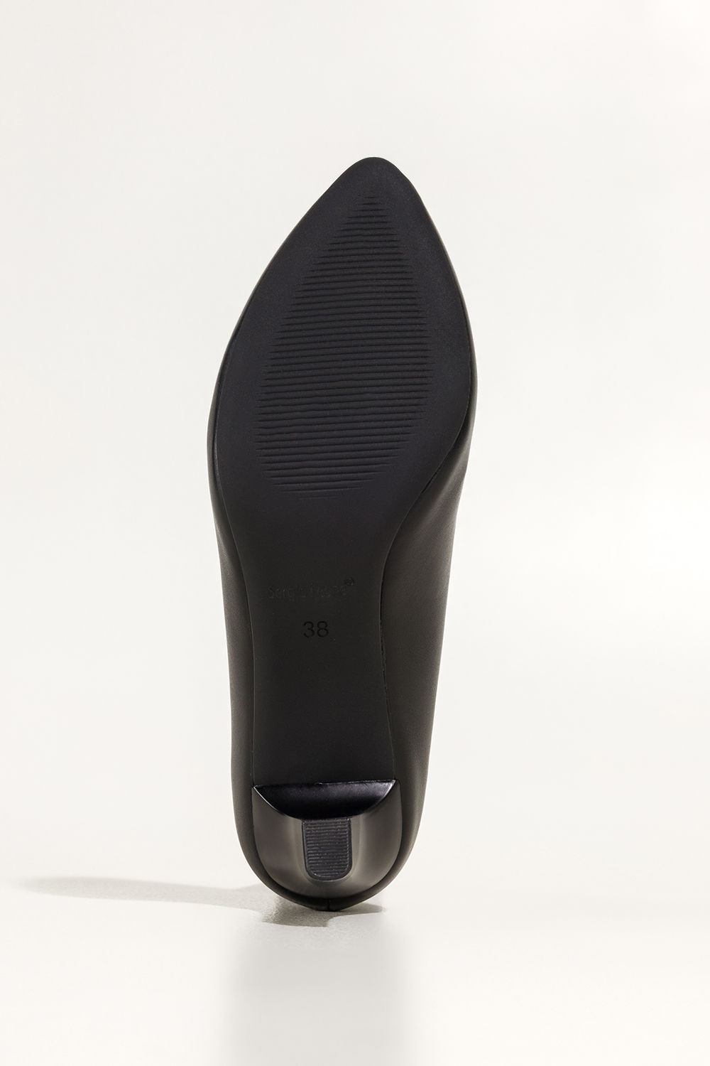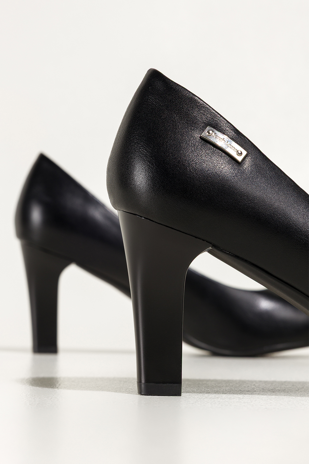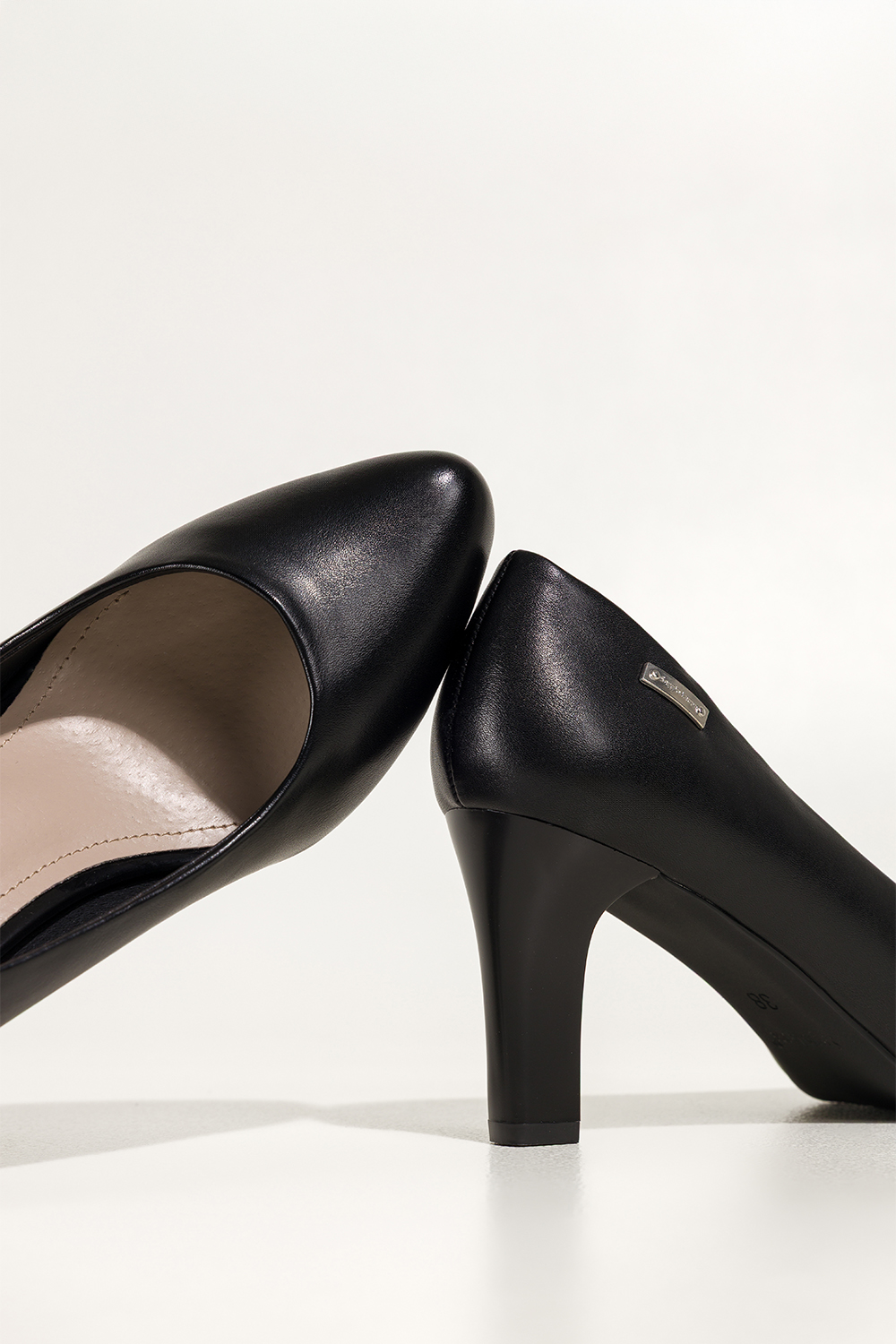 Czarne czółenka damskie Sergio Leone na słupku skórzana wkładka srebrna blaszka na cholewce model 8540 to ponadczasowa elegancja. Głęboka, nasycona czerń oraz delikatnie połyskująca skóra ekologiczna tworzą efekt niezwykle szykownego obuwia, a charakterystyczna srebrna blaszka na cholewce dodaje im nuty nowoczesnej biżuteryjnej finezji. Zaokrąglony nosek i smukły obcas słupek podkreślają kobiecą sylwetkę, tworząc idealne połączenie klasyki z wyrafinowanym akcentem. W trosce o komfort każdej kobiety w tych czółenkach zastosowano miękką, doskonale wyprofilowaną skórzaną wkładkę, która dba o wygodę podczas całodniowego noszenia. Starannie dobrane materiały gwarantują trwałość oraz świetne dopasowanie do stopy. Lekka konstrukcja i precyzyjne wykończenie czynią te czółenka niezastąpionym wyborem na co dzień i na wyjątkowe okazje. Ich uniwersalny, klasyczny design pozwala łączyć je zarówno z eleganckimi sukienkami, jak i prostymi jeansami, tworząc stylizacje idealne do biura, na rodzinne uroczystości lub spotkania ze znajomymi. To model, który bez wysiłku dopasujesz do swojego stylu, niezależnie od tego, czy stawiasz na minimalizm, czy wyraźne, modowe akcenty. Cechy wyróżniające Smukły obcas słupek zapewniający stabilność i elegancję. Miękka skórzana wkładka gwarantująca komfort przez cały dzień. Stylowa srebrna blaszka zdobiąca cholewkę. Wsuwana konstrukcja zapewniająca szybkie i wygodne zakładanie. Zaokrąglony nosek podkreślający klasyczny charakter obuwia. Spraw, aby każdy krok był pełen pewności siebie i wybierz te wyjątkowe czółenka już teraz na Casu. pl, podkreśl swój styl z elegancją, którą pokochasz.