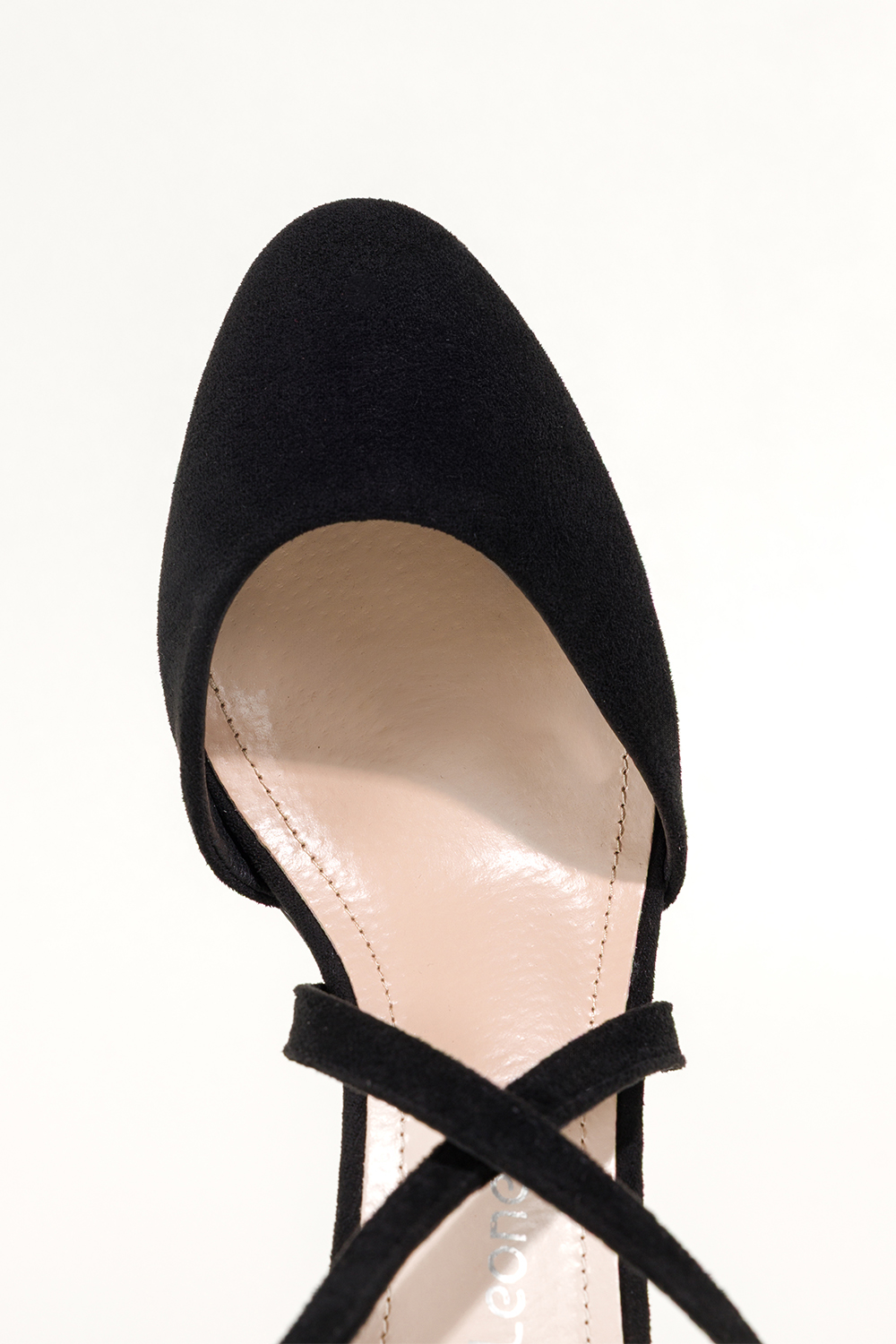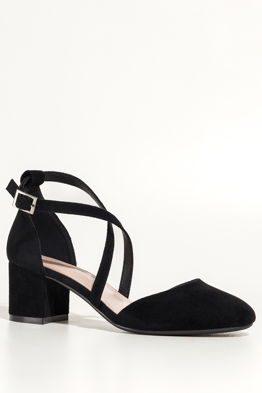 Czarne czółenka damskie Sergio Leone na szerokim słupku paski na krzyż skórzana wkładka HP175