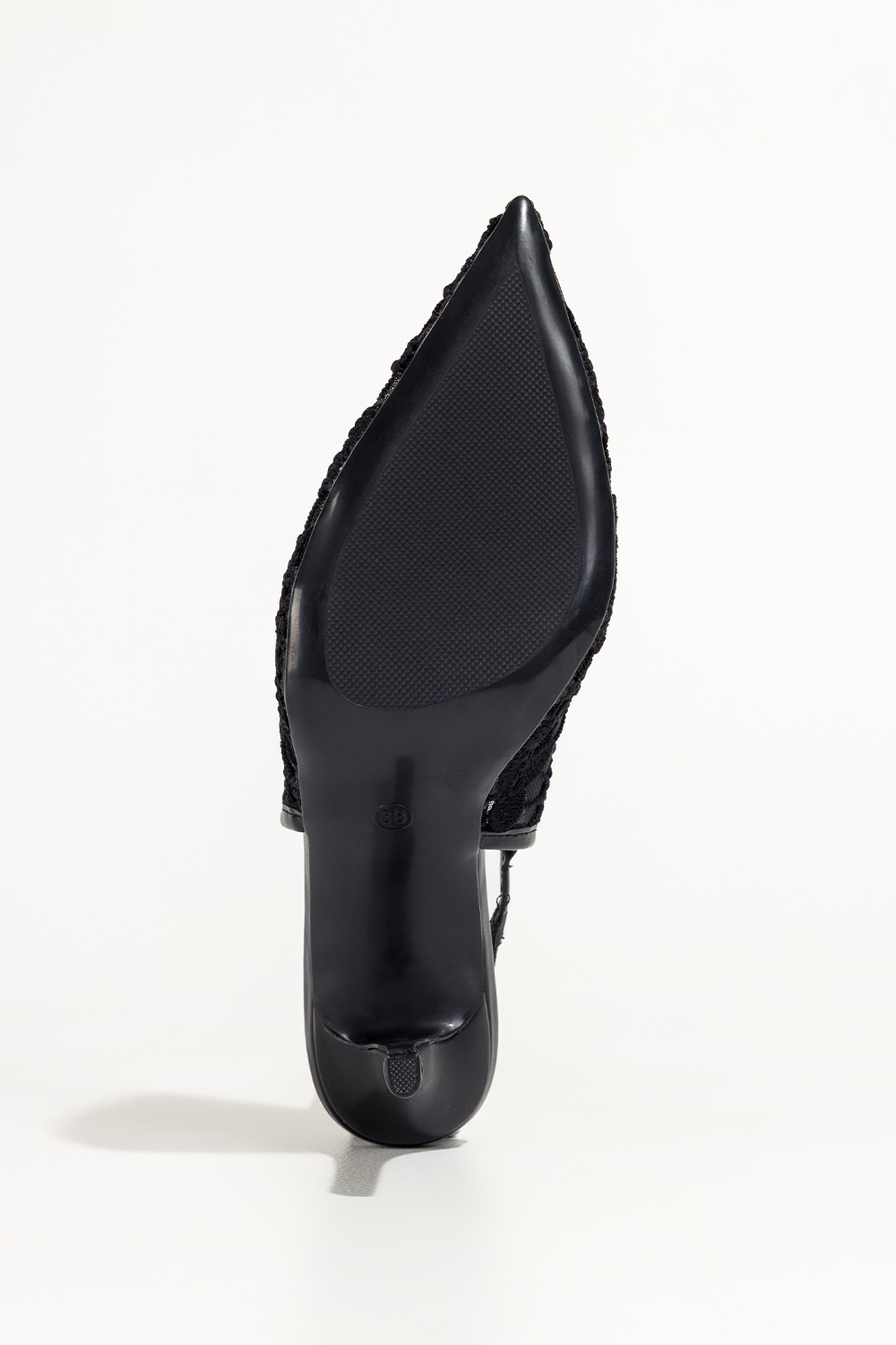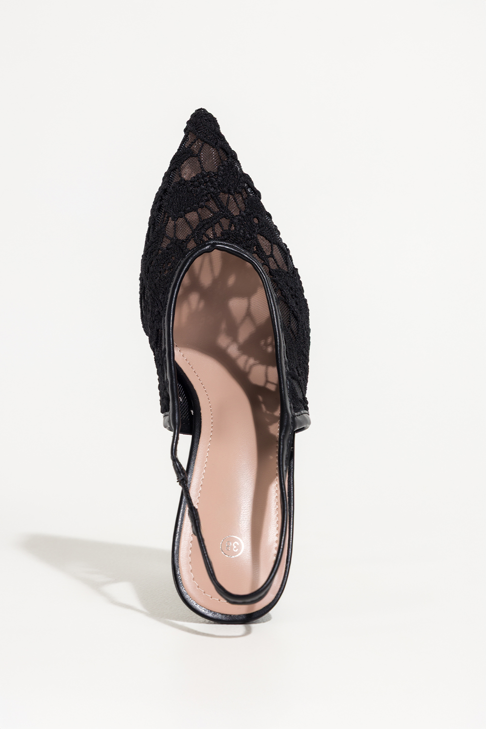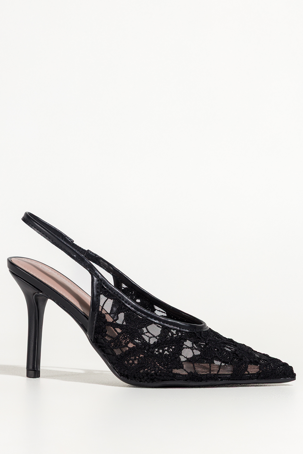 Czarne czółenka damskie szpilki koronkowe odkryta pięta guma w pasku Carla S1-8844V