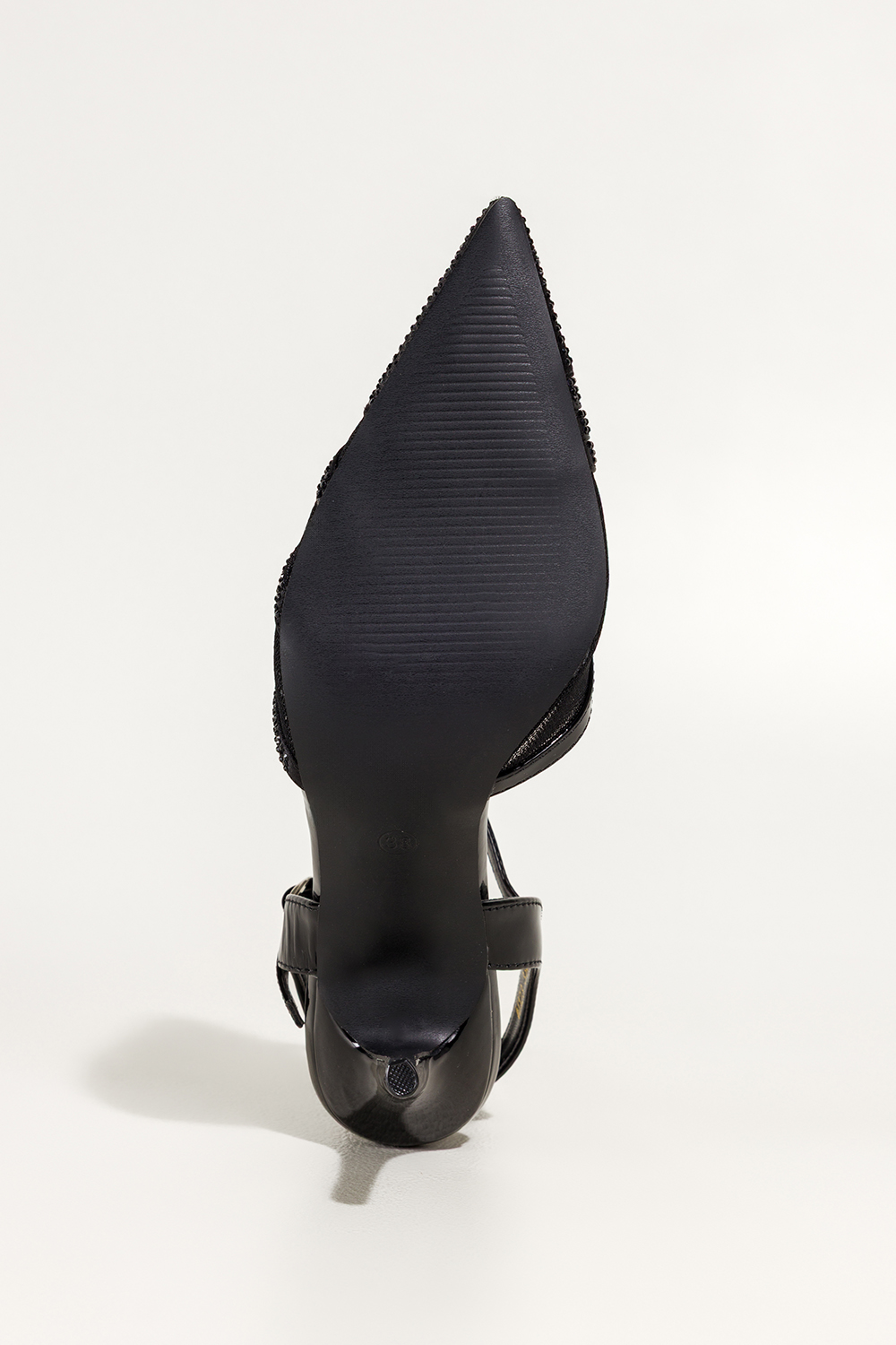 Czarne czółenka damskie szpilki z siateczką ozdobione cyrkoniami odkryta pięta Carla N876