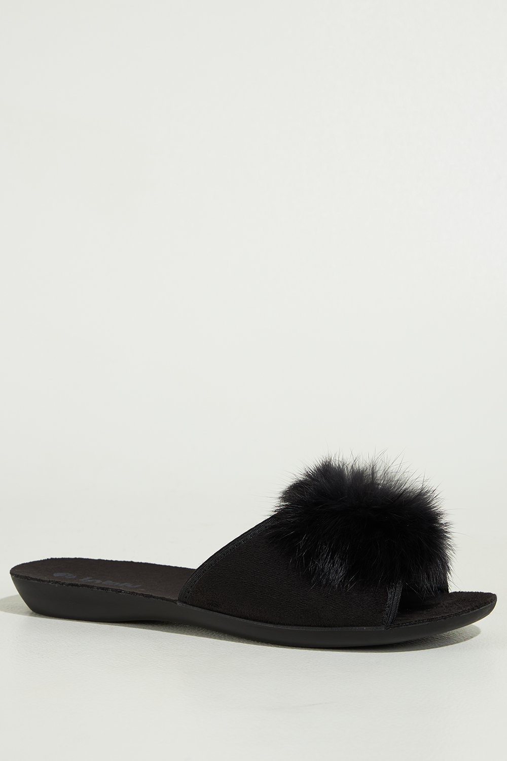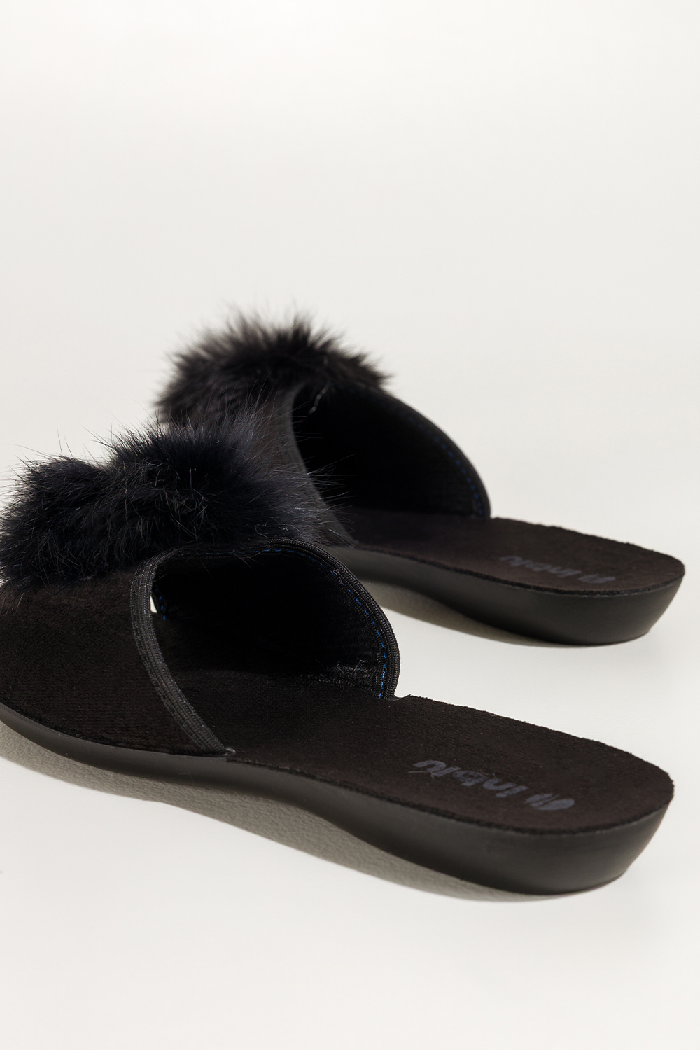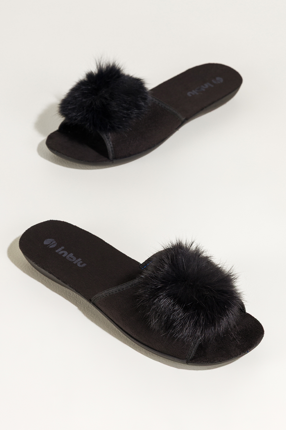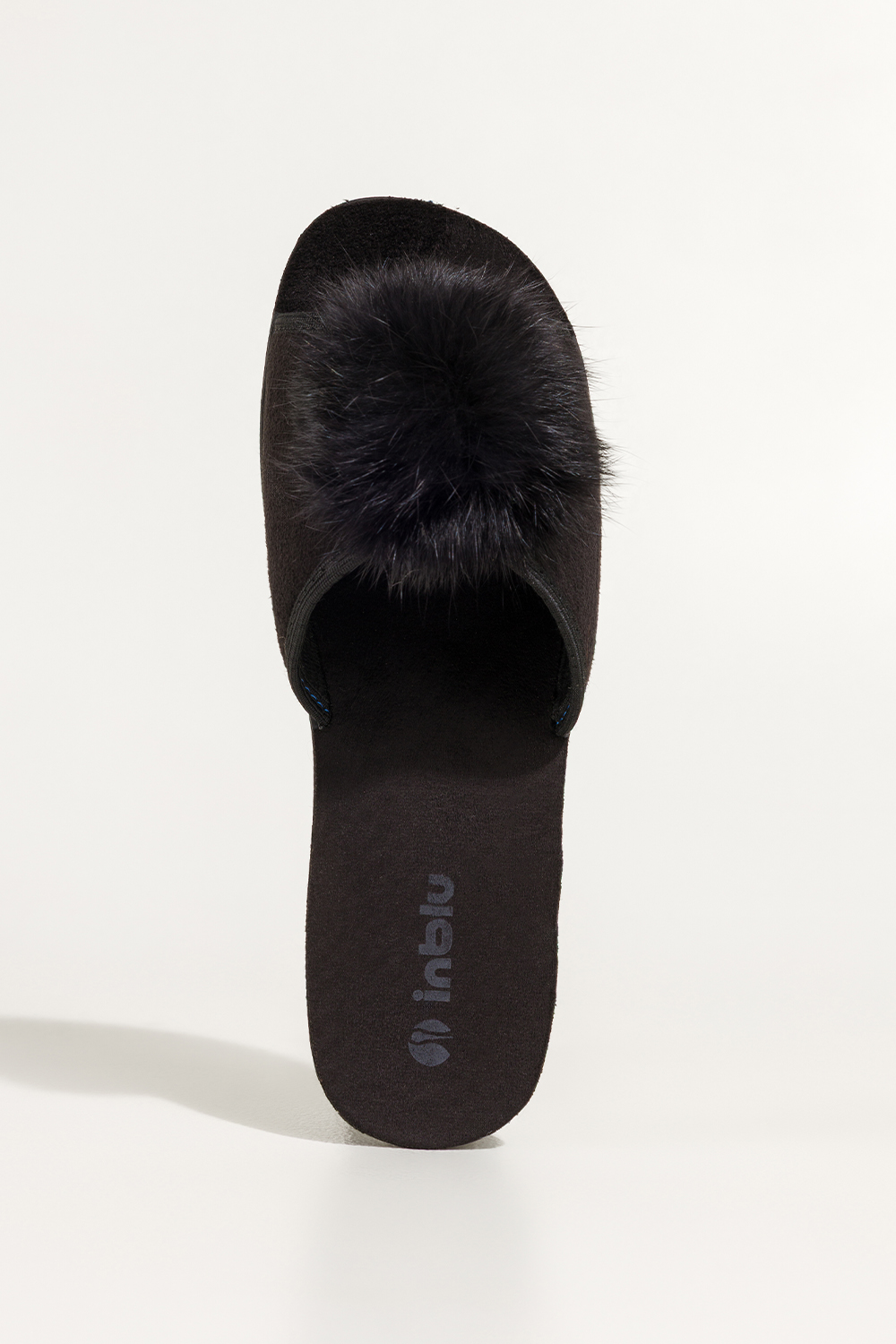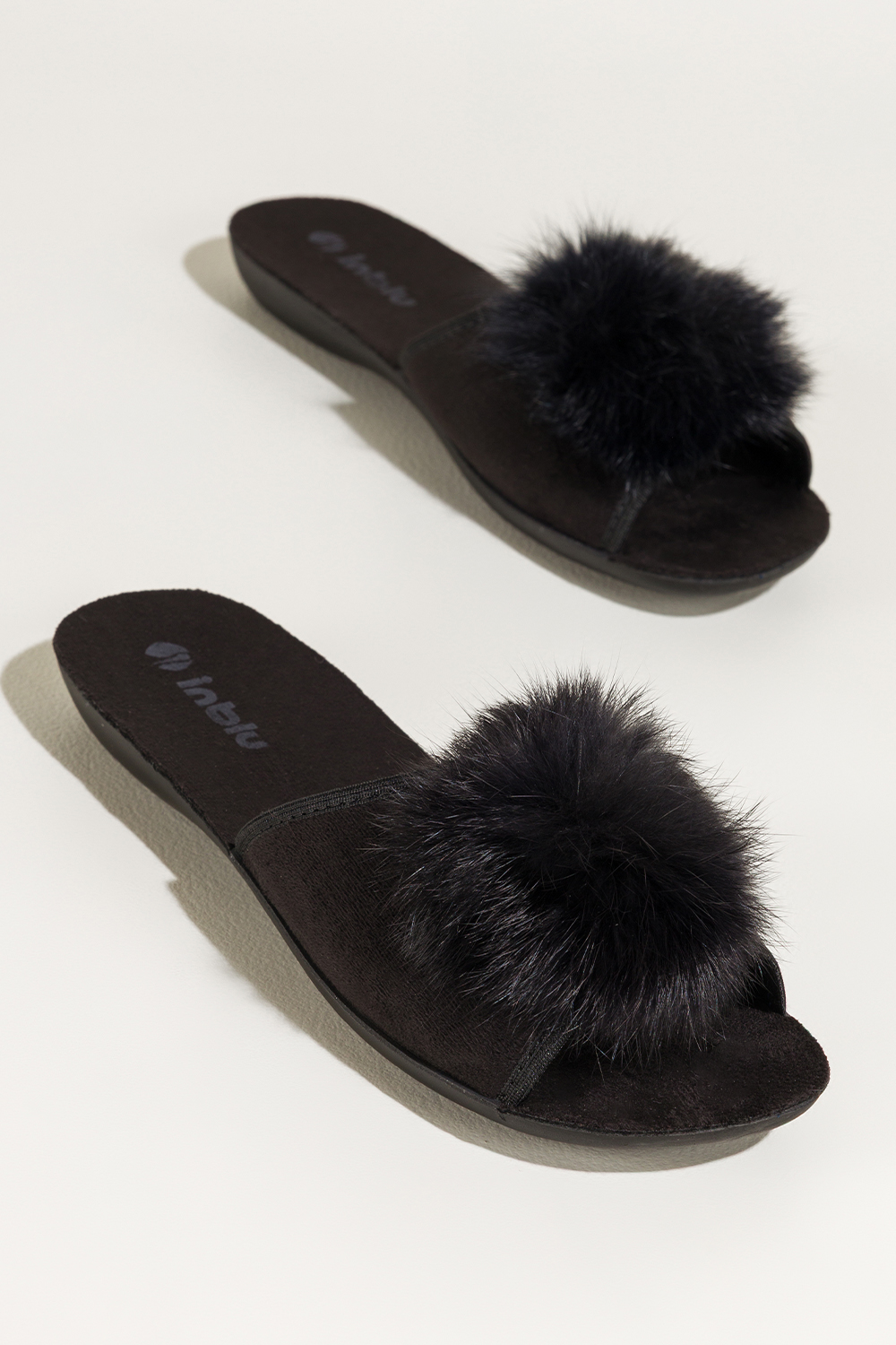 Czarne kapcie damskie Inblu obuwie domowe z futerkiem MK99993E