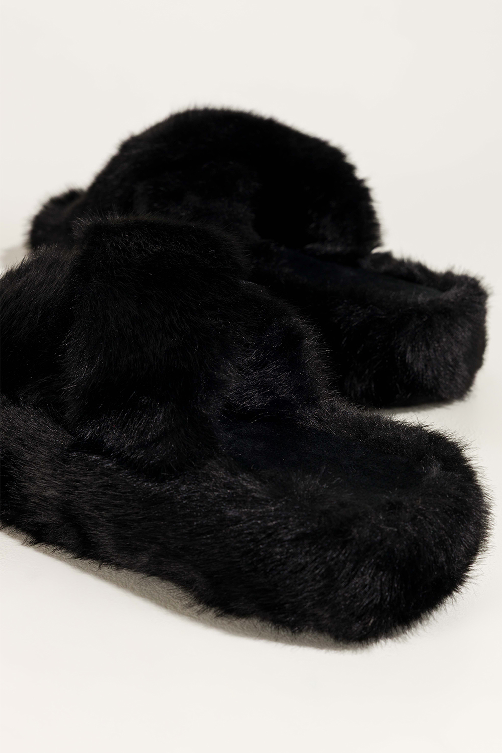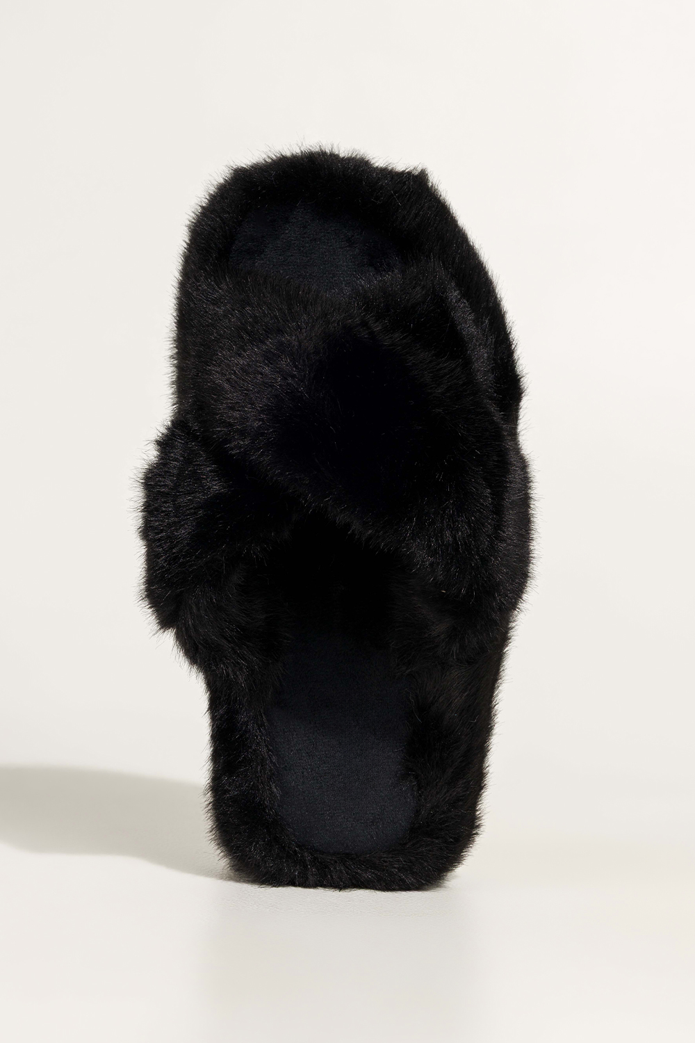 Czarne kapcie damskie obuwie domowe futrzane paski na krzyż Casu NG-42