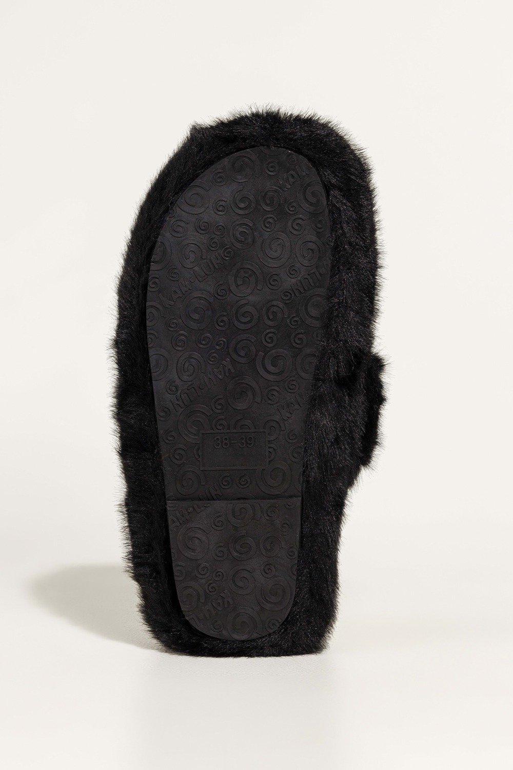 Czarne kapcie damskie obuwie domowe futrzane z misiem Casu B23-3