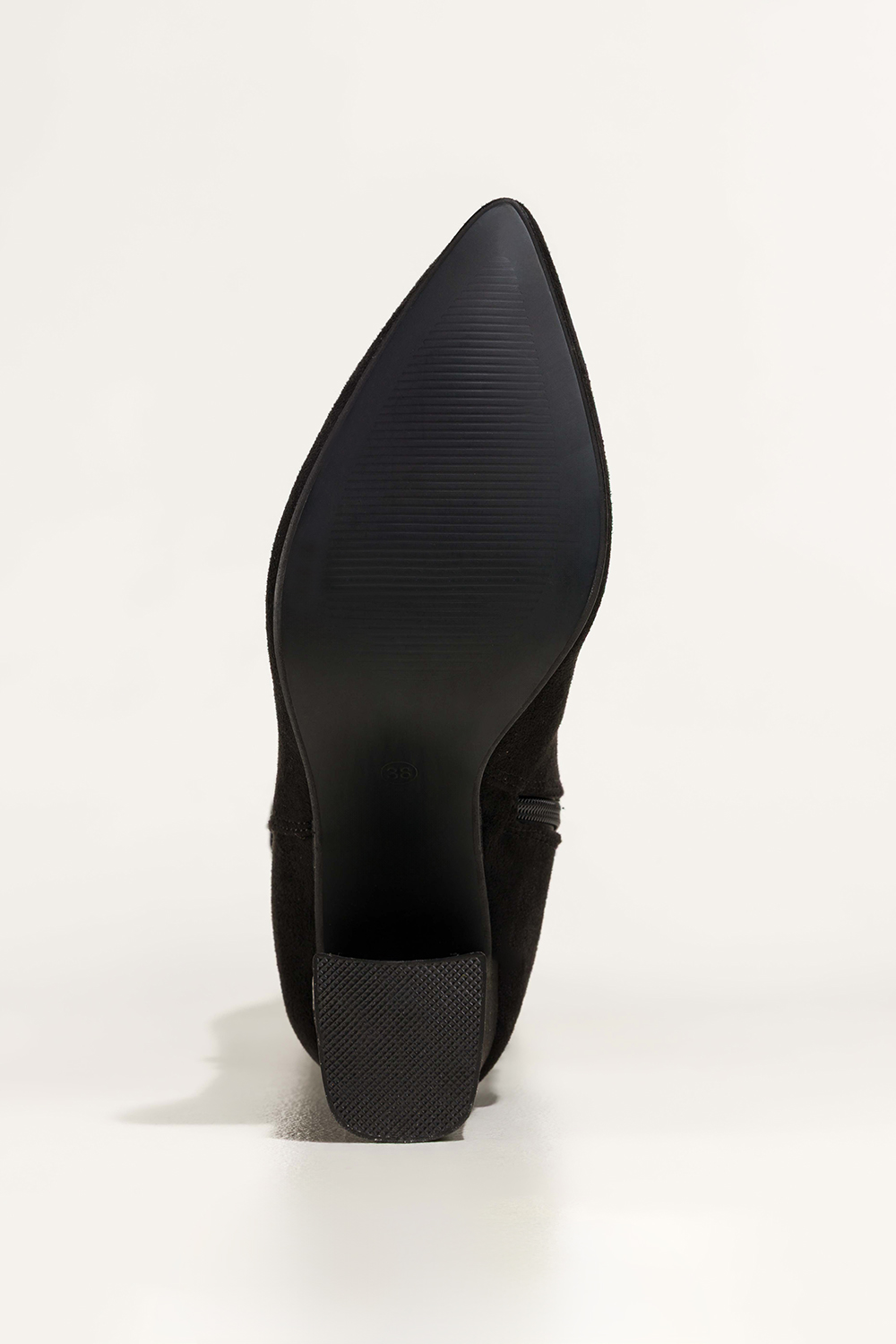 Czarne kozaki damskie na szerokim ozdobnym słupku guma w cholewce Casu model D25WX5-BM. Uszyte z wysokogatunkowego zamszu ekologicznego, zapewniają trwałość, miękkość oraz doskonałe dopasowanie do nogi. Wnętrze wykończone przyjemnym w dotyku materiałem, a wkładka z ekologicznej skóry gwarantuje komfort noszenia nawet przez cały dzień. Stabilny, szeroki obcas pokryty zamszem z metalową ozdobą dodaje szyku, zachowując funkcjonalność i bezpieczeństwo użytkowania. Ten model doskonale odnajdzie się w wielu stylizacjach, od casualowych jeansów po klasyczne sukienki. Kozaki sięgające przed kolano z elastyczną gumą po wewnętrznej stronie cholewki idealnie przylegają do łydki, podkreślając sylwetkę i zapewniając swobodę ruchów. Ich szpiczasty nosek wydłuża optycznie nogi, a klasyczna czerń czyni je ponadczasowym dodatkiem, który nigdy nie wychodzi z mody. Zapinane na zamek, kozaki to doskonały wybór na chłodniejsze dni. Idealnie sprawdzą się zarówno w pracy, podczas spaceru po mieście, jak i na wieczorne wyjścia. Dzięki przemyślanej konstrukcji oraz użytym materiałom, gwarantują komfort cieplny, stylowy wygląd i wygodę przez wiele godzin. To buty, które łączą modę z praktycznością i pozwalają czuć się wyjątkowo w każdej sytuacji. Cechy wyróżniające Wysokogatunkowy zamsz ekologiczny Szeroki słupek z metalową ozdobą pokryty zamszem Szpiczasty nosek optycznie wydłużający nogi Elastyczna guma w cholewce dla lepszego dopasowania Zamek błyskawiczny ułatwiający zakładanie Ekologiczna, komfortowa wkładka Klasyczna czerń pasująca do każdej stylizacji Czarne kozaki to wybór, który zachwyca od pierwszego kroku. Zamów już dziś na Casu. pl i odkryj, jak doskonałe obuwie może odmienić Twoją codzienność! Kozaki posiadają wąską cholewkę, dlatego najlepiej sprawdzą się na szczupłą łydkę.