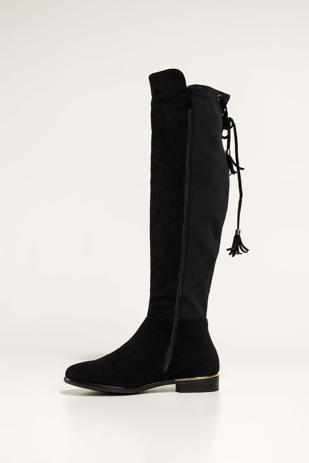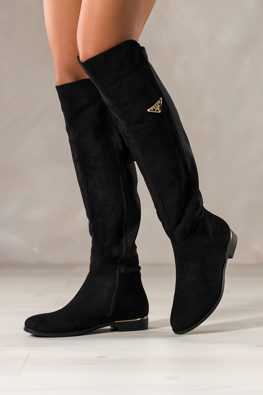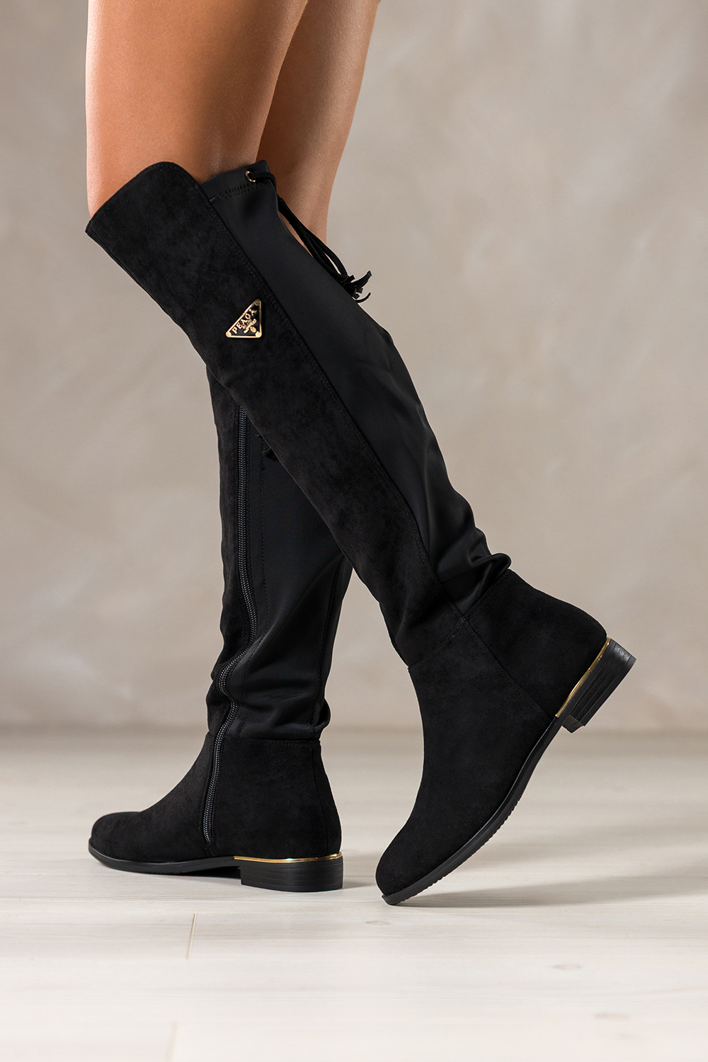 Czarne kozaki damskie płaski obcas ze złotą wstawką elastyczna cholewka z wiązaniem i chwostami złota ozdoba Casu model NW2409-8, to połączenie klasycznej elegancji i nowoczesnej wygody. Wykonane z miękkiej, zamszowej skóry ekologicznej, gwarantują trwałość oraz niezwykle przyjemne dopasowanie do nogi. Wnętrze i wkładka z materiału zapewniają ciepło i komfort nawet w chłodniejsze dni, a zapinanie na zamek ułatwia szybkie zakładanie. Elastyczna cholewka idealnie dopasowuje się do łydki, subtelnie ją podkreślając. Złota ozdoba oraz dekoracyjne wiązanie z chwostami w tylnej części dodają całości eleganckiego i modowego charakteru. To buty, które świetnie komponują się zarówno z codziennymi stylizacjami, jak i bardziej wyjściowym outfitem. Zaokrąglony nosek i płaski obcas ze złotą wstawką nadają im delikatności, ale również funkcjonalności, idealne do długiego noszenia bez uczucia zmęczenia. Te kozaki to doskonały wybór dla kobiet ceniących wygodę i styl. Świetnie sprawdzą się w pracy, na spacerze czy spotkaniu z przyjaciółmi. Pasują do sukienek, legginsów, a nawet klasycznych jeansów. Ich ponadczasowy design sprawia, że będą modnym dodatkiem przez wiele sezonów. Dzięki neutralnej czerni i złotym detalom, dopasowują się do wielu stylów, od minimalistycznych po bardziej ekstrawaganckie. Cechy wyróżniające Wysokiej jakości ekologiczna skóra zamszowa Elastyczna cholewka z ozdobnym wiązaniem i chwostami Złota ozdoba i wstawka na obcasie Zaokrąglony nosek i praktyczny zamek Uniwersalny, klasyczny kolor, głęboka czerń Zamów czarne kozaki już dziś i przekonaj się, jak łatwo połączyć modę, wygodę i klasę w jednej parze butów. Styl, który Cię wyróżni, dostępny teraz w sklepie Casu. pl! Model ten został zaprojektowany z myślą o wąskiej stopie, zapewniając idealne dopasowanie i komfort noszenia.