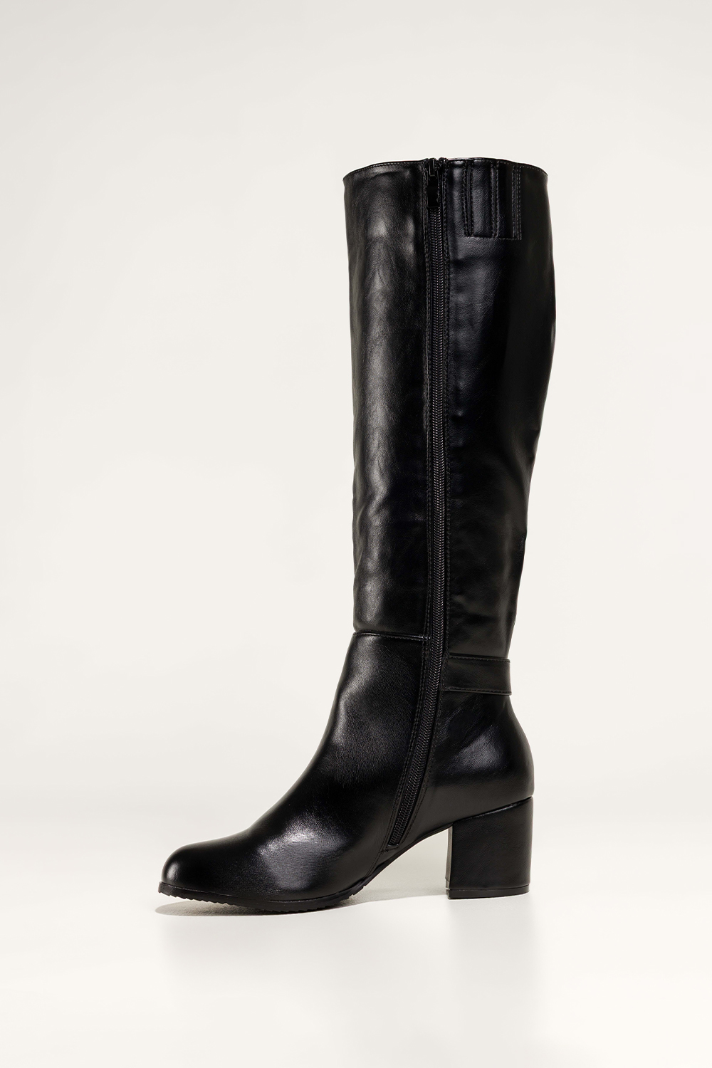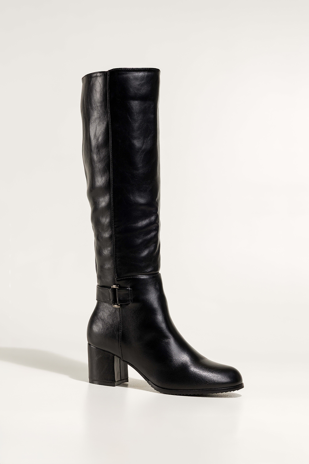 Czarne kozaki damskie Sergio Leone na szerokim słupku elastyczna cholewka KZ257-CA